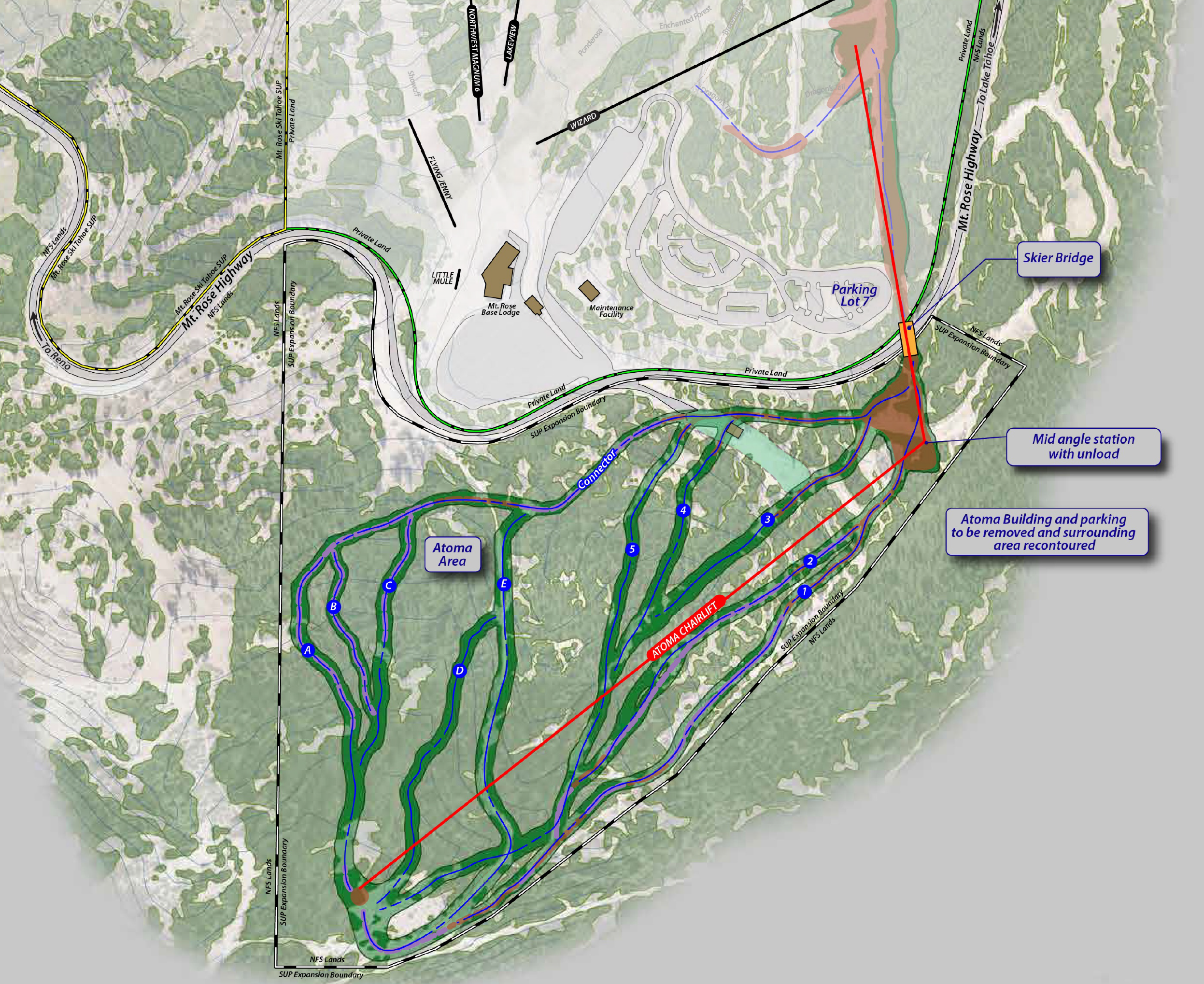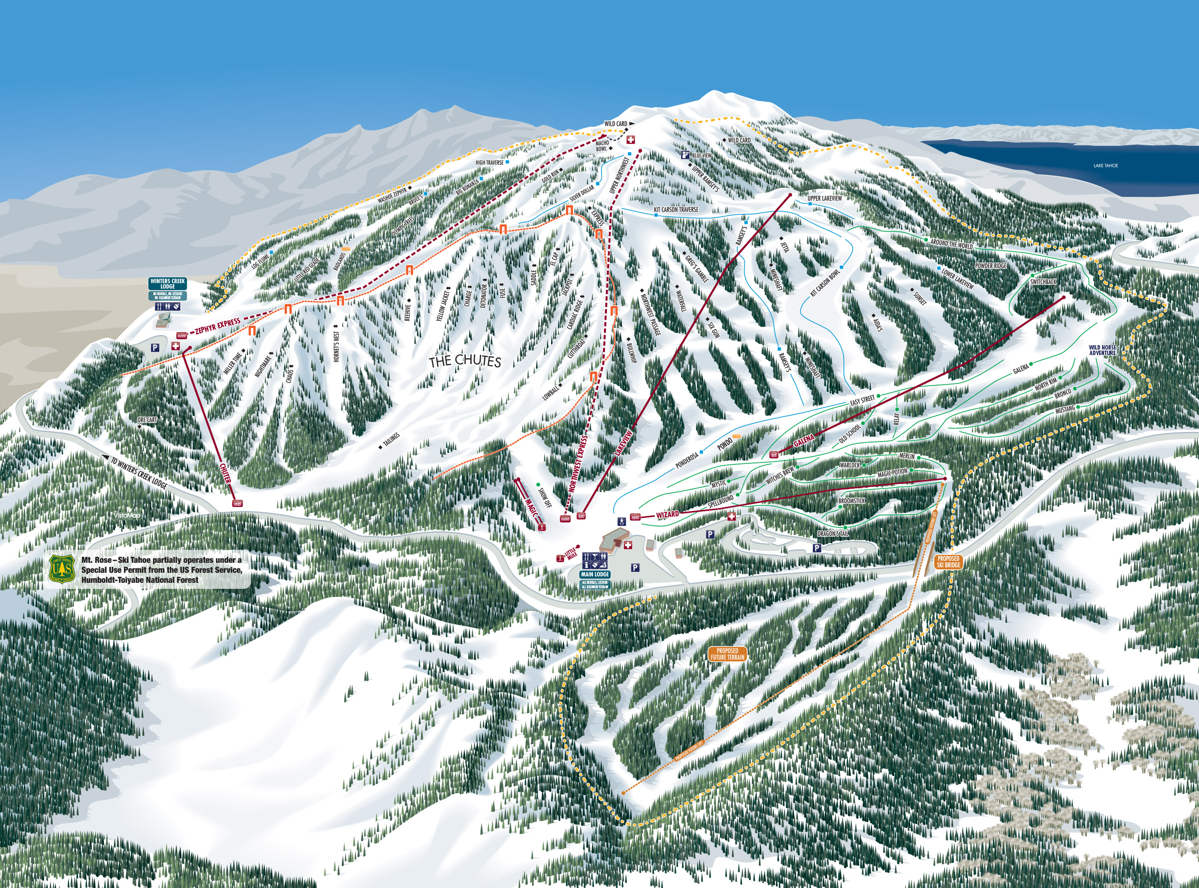 Further north near Lake Tahoe, the 5,600 acre Davis Fire reached near Mt. Rose and could also impact nearby community ski hill Sky Tavern. Sprinklers could be seen spraying Mt. Rose base areas before webcams were turned off.