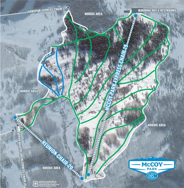 The lone expansion this year featuring two new chairlifts is Beaver Creek’s McCoy Park, encompassing 250 acres of new high alpine terrain. This beginner zone follows in the footsteps of Haymeadow Park and Red Buffalo Park, which both offer dedicated terrain for new skiers and snowboarders with detachable lifts. The new McCoy Park Express will service 17 trails and the Reunion Quad will provide easy exit from McCoy Park to the Upper Beaver Creek Mountain and Strawberry Park Express lifts.