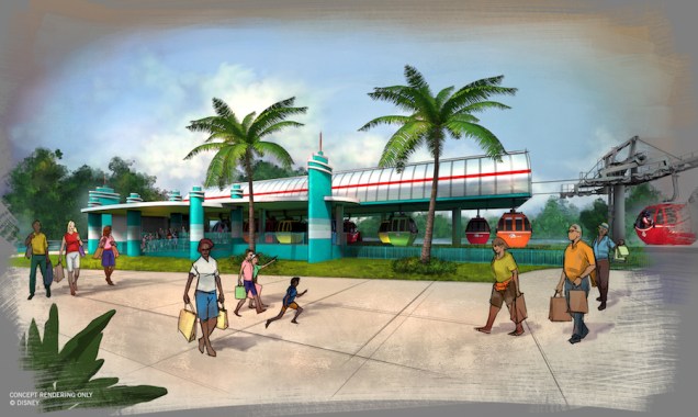 Doppelmayr’s next-generation detachable lift technology appears headed for North America. Walt Disney World Resort released new details about the upcoming Disney Skyliner gondola system this morning and renderings appear to show D-Line Station-D enclosures. Each of the six gondola stations will be themed differently, reflecting unique character of the destinations they serve.