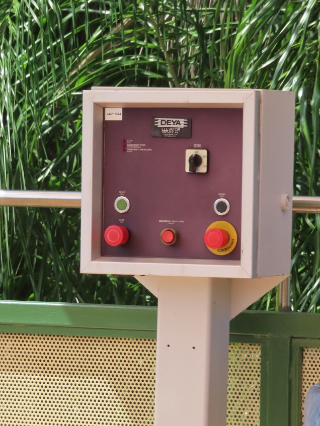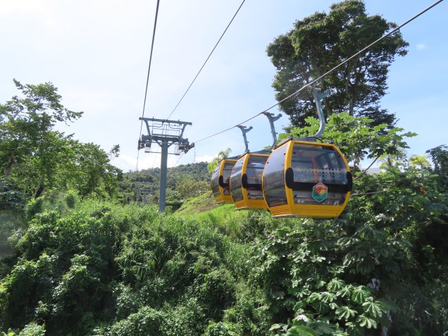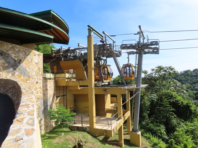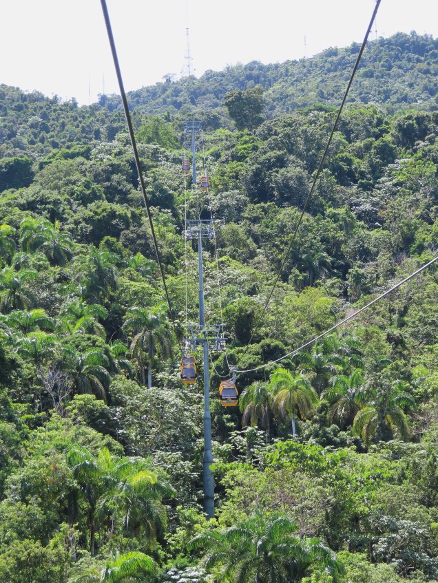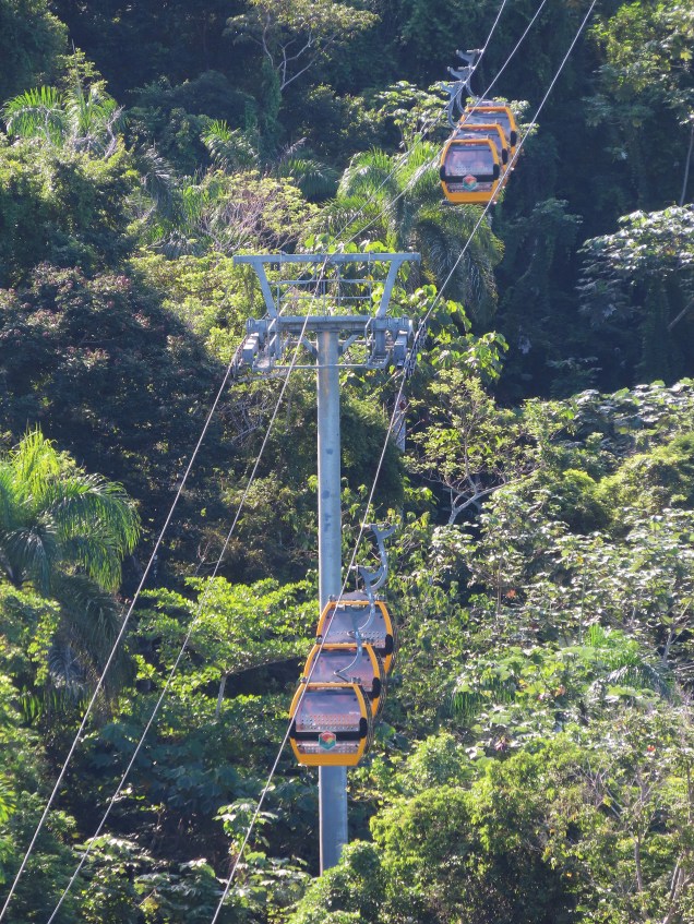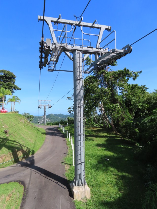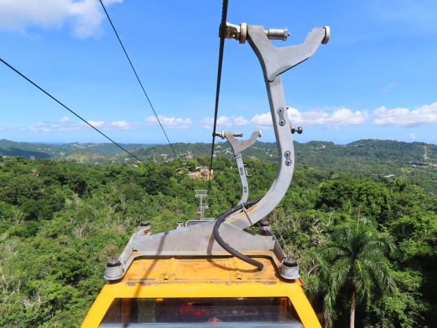 This lift opened in 2012, closed in 2017 due to Hurricane Maria and reopened in 2025.Built by Doppelmayr CTEC, it features six pulses of three cabins each.Along the ride, the lift slows several times for other pulses to load and unload.The bottom terminal with drive and tensioning systems.View departing the parking lot station.The first section of the line crosses over a canyon.Hold down tower 2.Cabins descending toward tower 3.Tower 4 is very tall with large assemblies for pulse loads.CWA eight passenger cabins. The park chooses to only load six.Short tower 5.The final tower on the line.Side view of the top station.The upper terminal services an aviary, butterfly garden, observation deck and restaurant.Omega cabins with much more ventilation than usual.A pulse passing tower 4.View from the top with the city of San Juan and Atlantic Ocean in the distance.Upper turnaround area.Six cabins seen from above.Side view of a tower.Pulses over the canyon.Middle section of the line.Six cabins at tower 2.Lower station overview.Upper station overview.Omega IV carrier.Controls branded with the local elevator company.Fixed top terminal.Looking up at tower 5.Tall tower 4.Side view of a cabin.Hanger and H frame.Tower 3.Cabins passing at tower 2.View up from the lower line.Lift line overview.View from the bottom station platform.Drive station moving on a carriage.Side view of the drive.View from the maze area.Lift overview.
