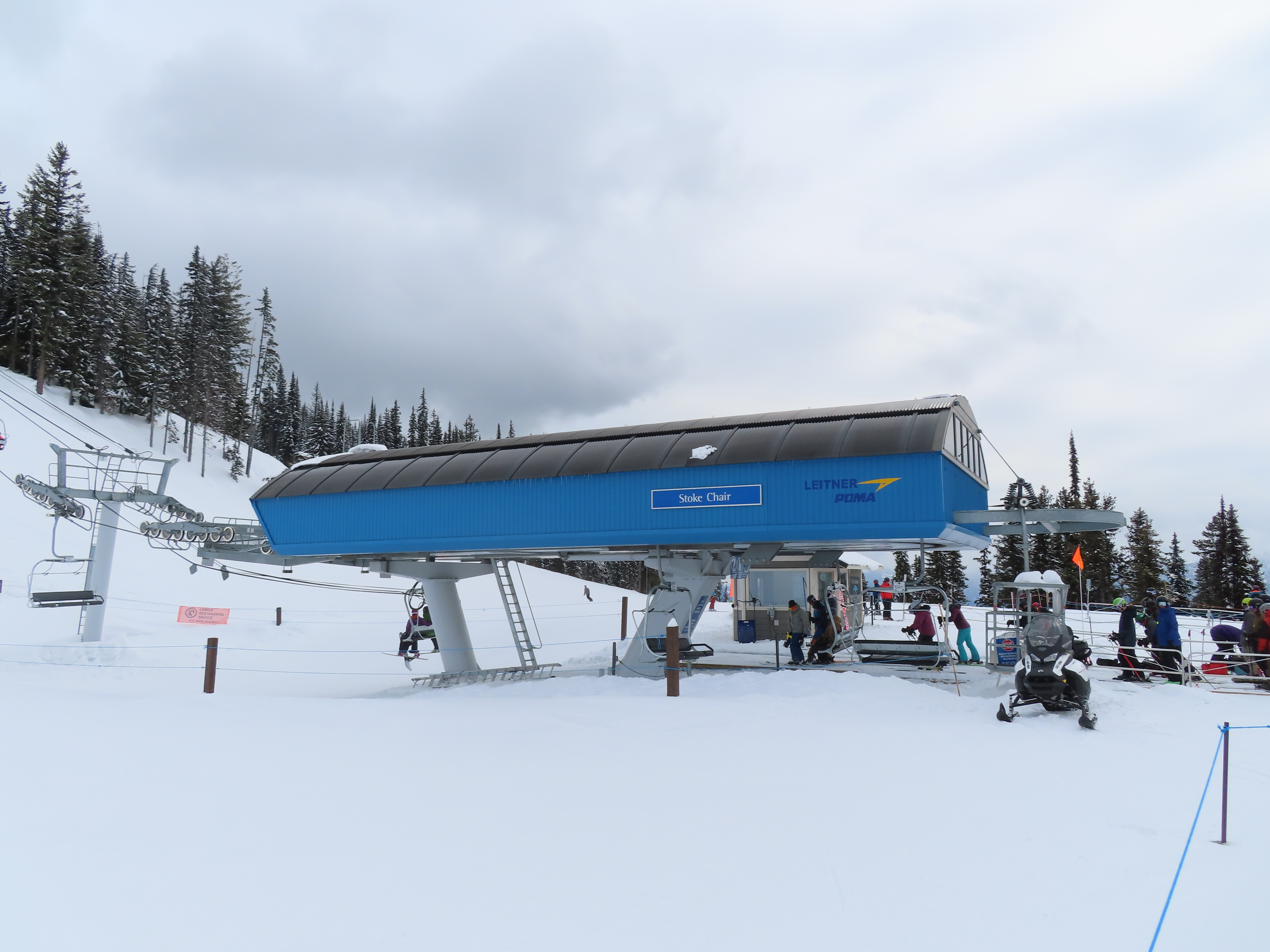 Before the capacity upgrade, Stoke had 99 chairs. Now it has 141. The new chairs can be identified because they use the newer Leitner-Poma logo, not the gold swoosh.