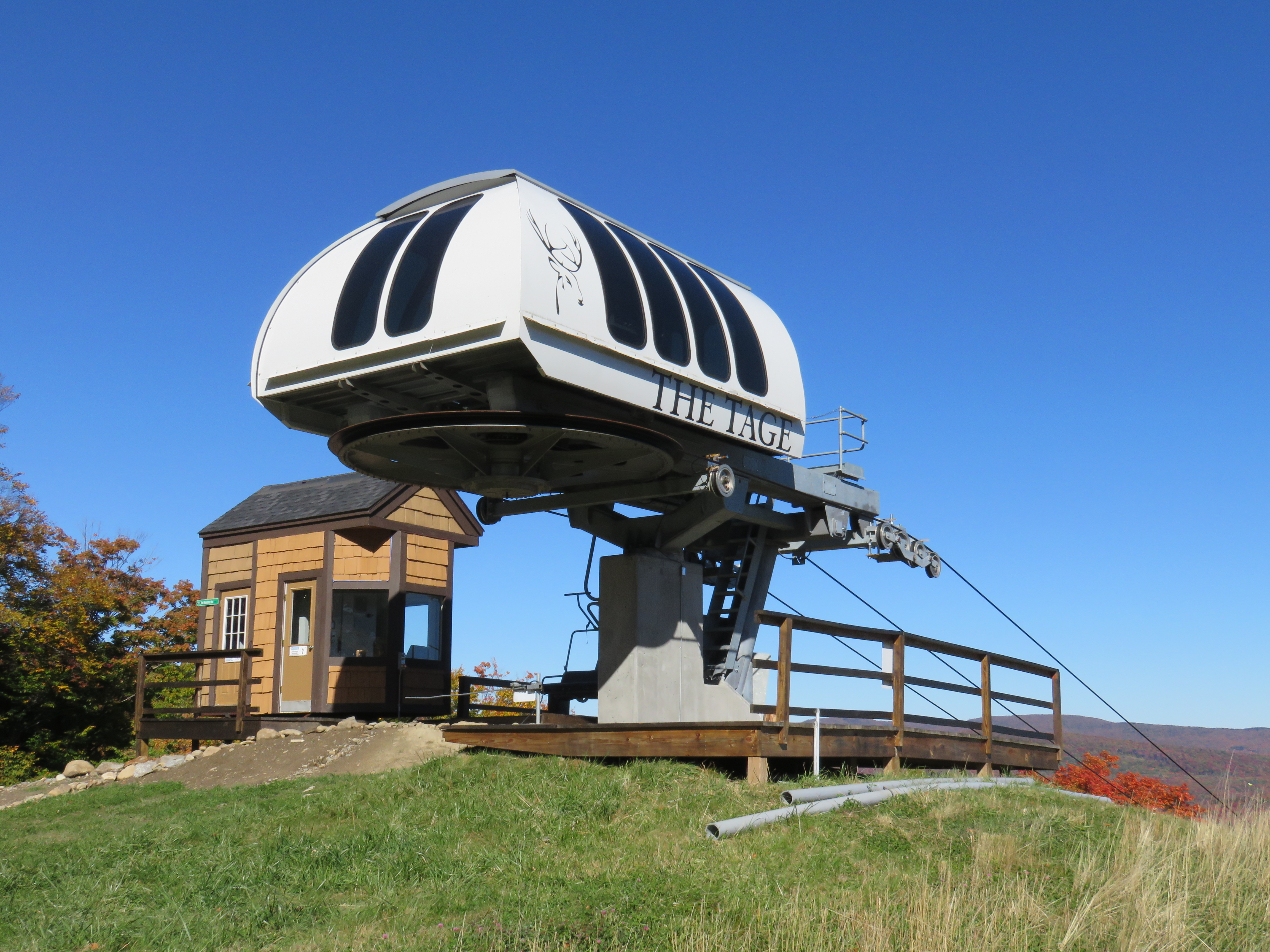 The Tage – Hermitage Club, VT Bottom station at the Hermitage Inn. Lower bullwheel with integrated depression tower. Bottom bullwheel from above. Upper lift line. View down line. SkyTrac drive at the top station. Motor room. Unload area and lift shack. Share this: Click to email a link to a friend (Opens in new window) Email Click to share on X (Opens in new window) X Click to share on Facebook (Opens in new window) Facebook Like Loading...