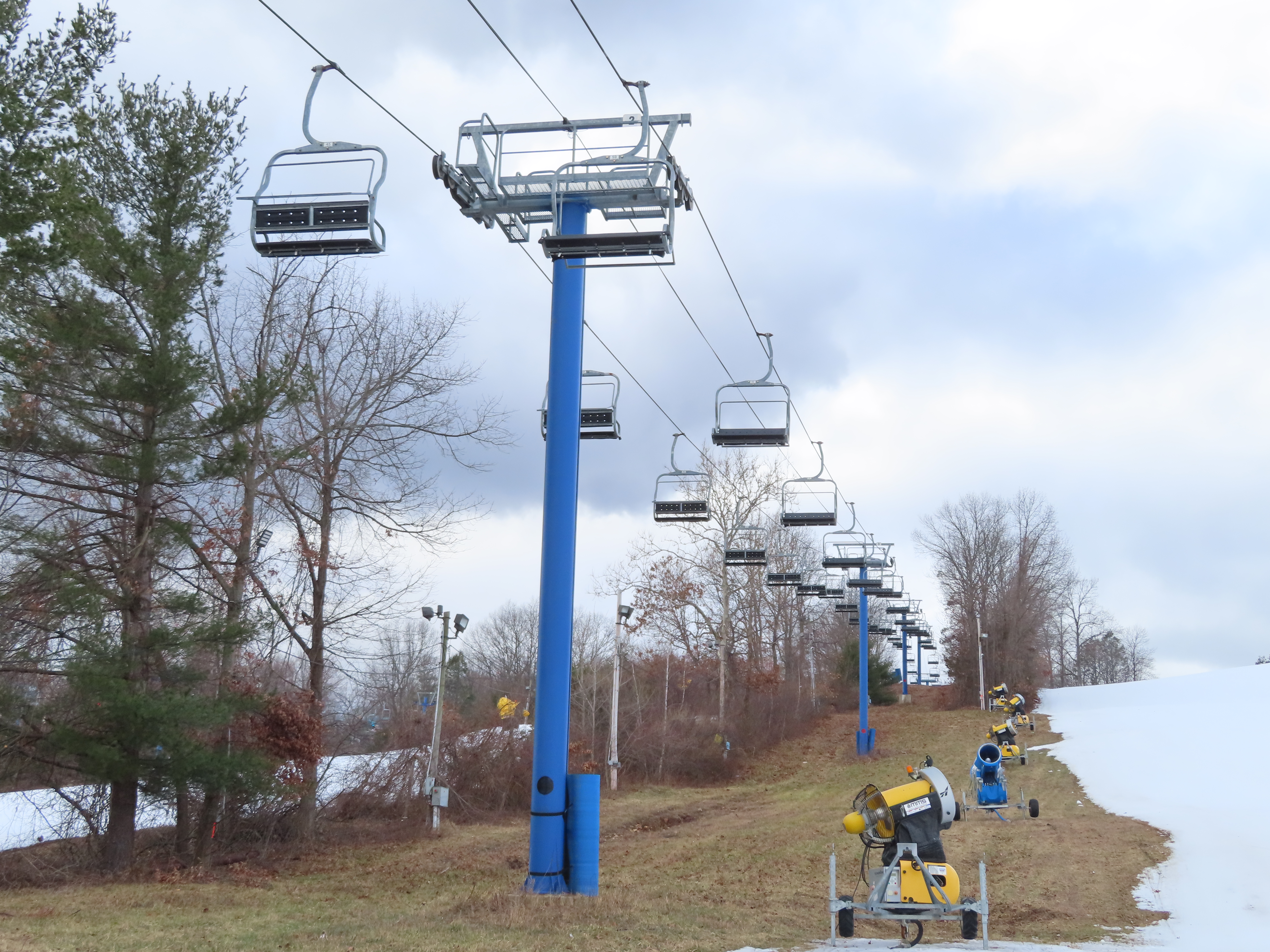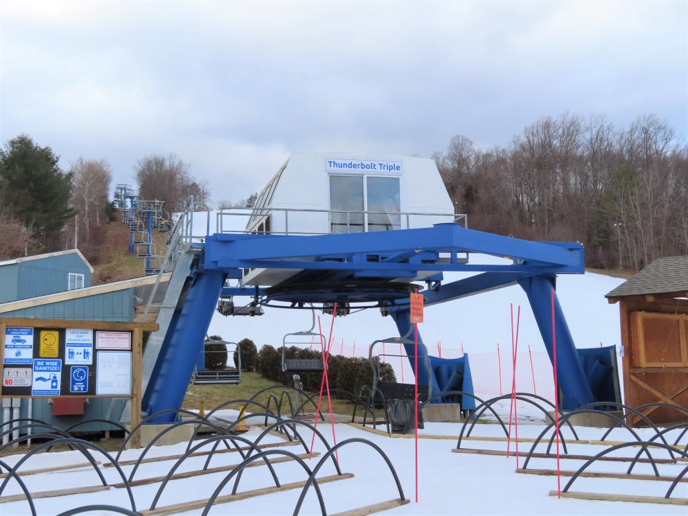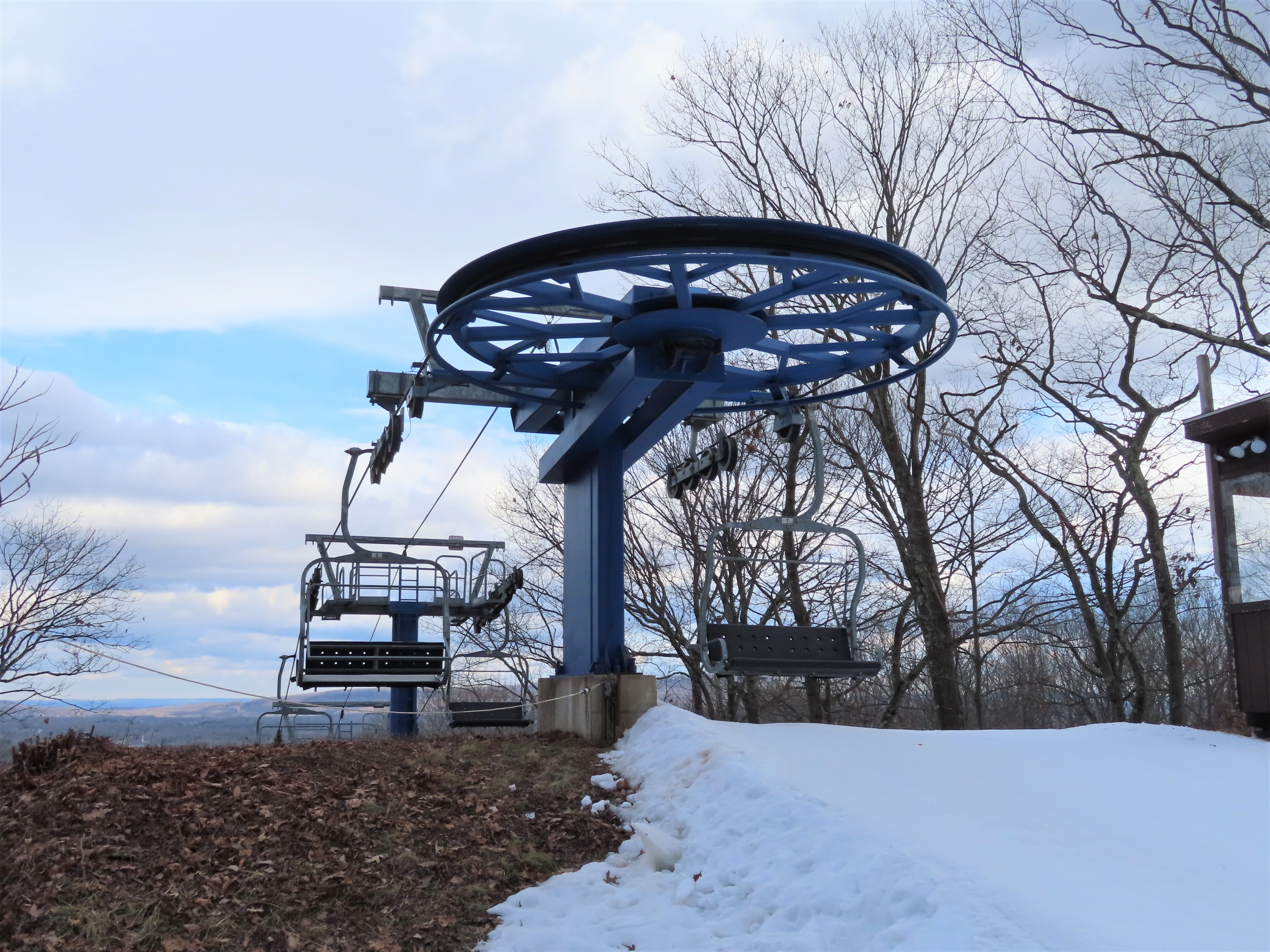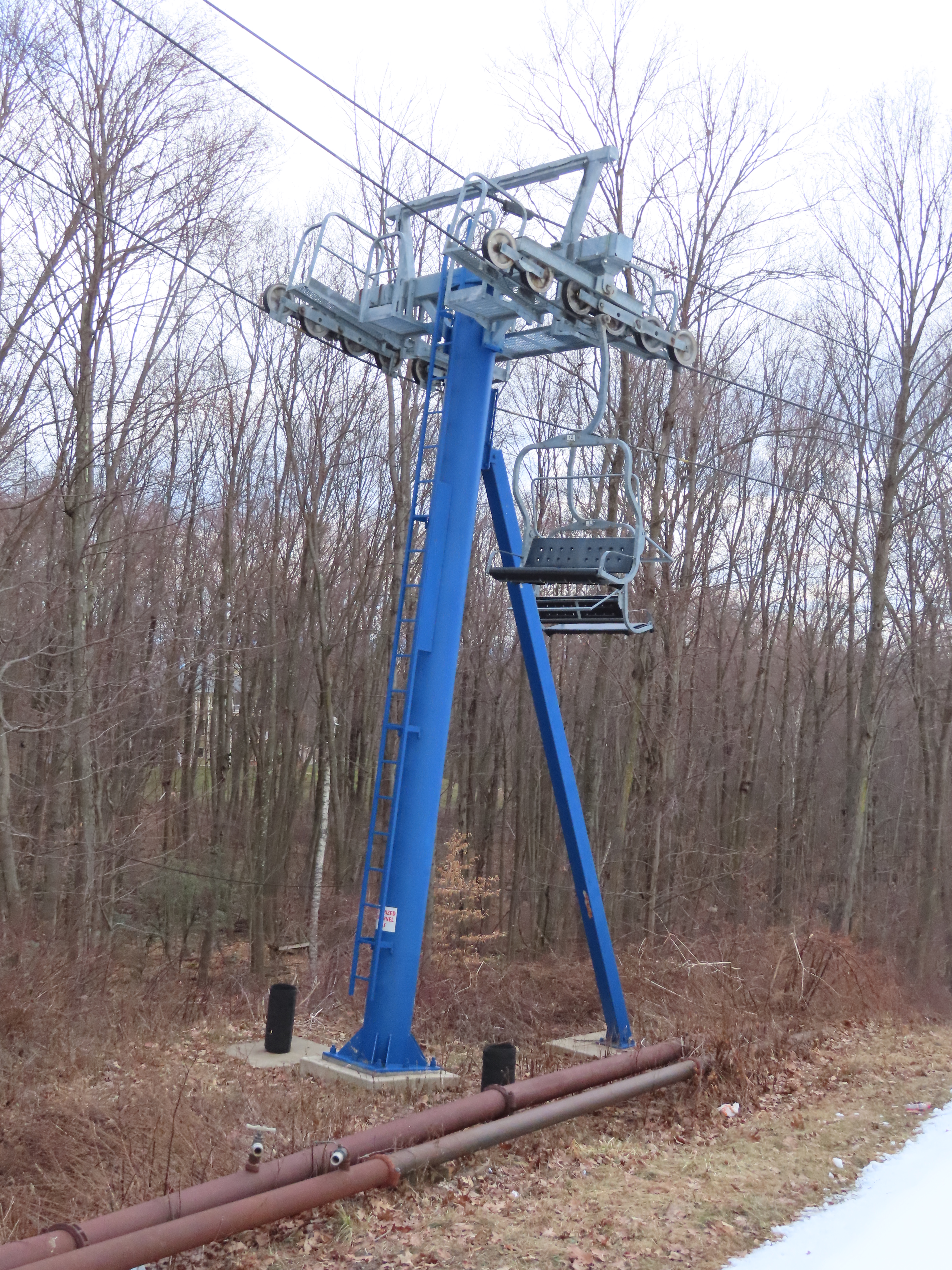 This lift services the northern part of the mountain.Top snowflake bullwheel.View from the summit.Hold down tower.Breakover towers.View down the line.Upper part of the lift line.Lower part of the line.View up from the bottom terminal.Partek drive station.Loading area.