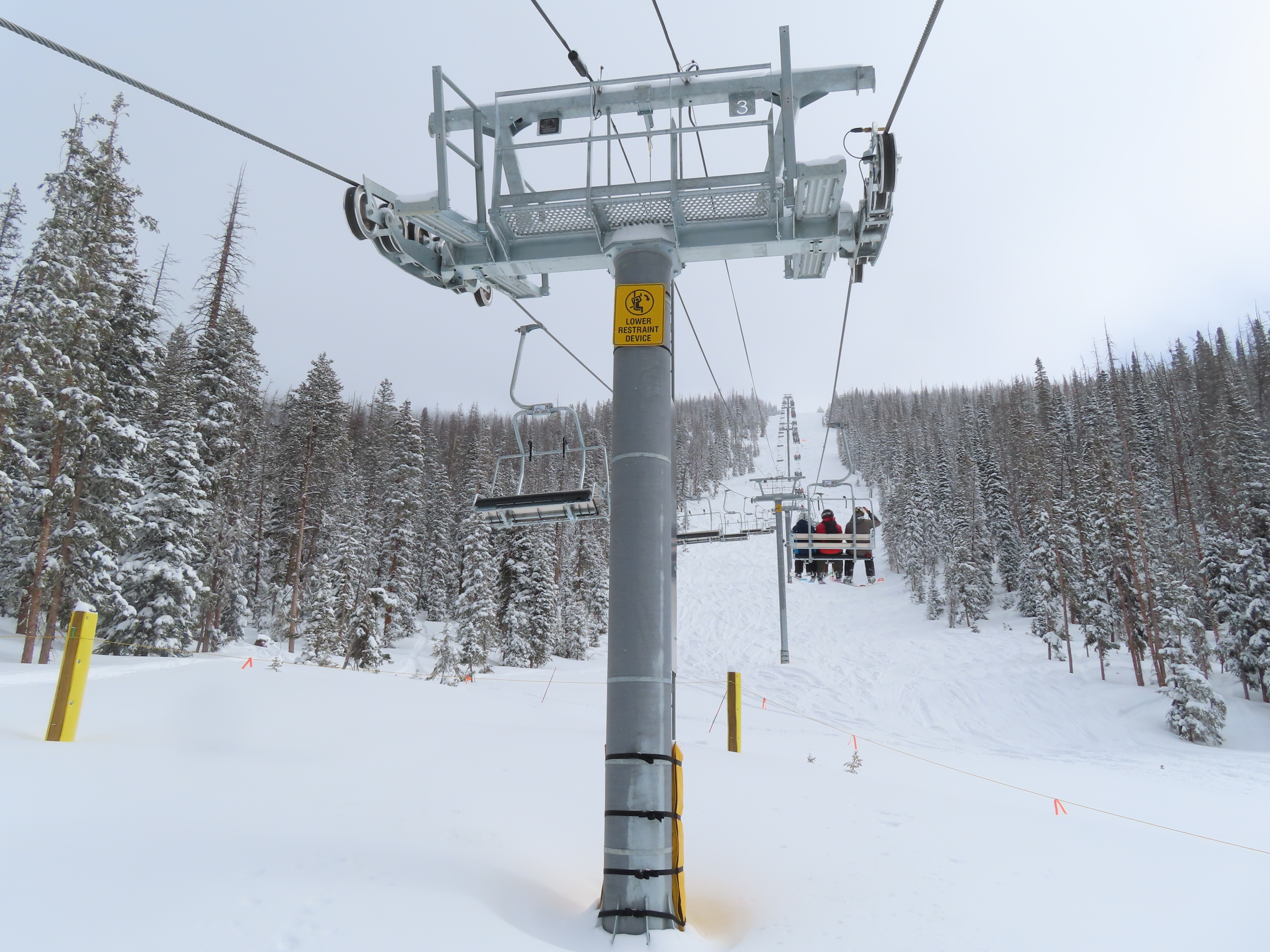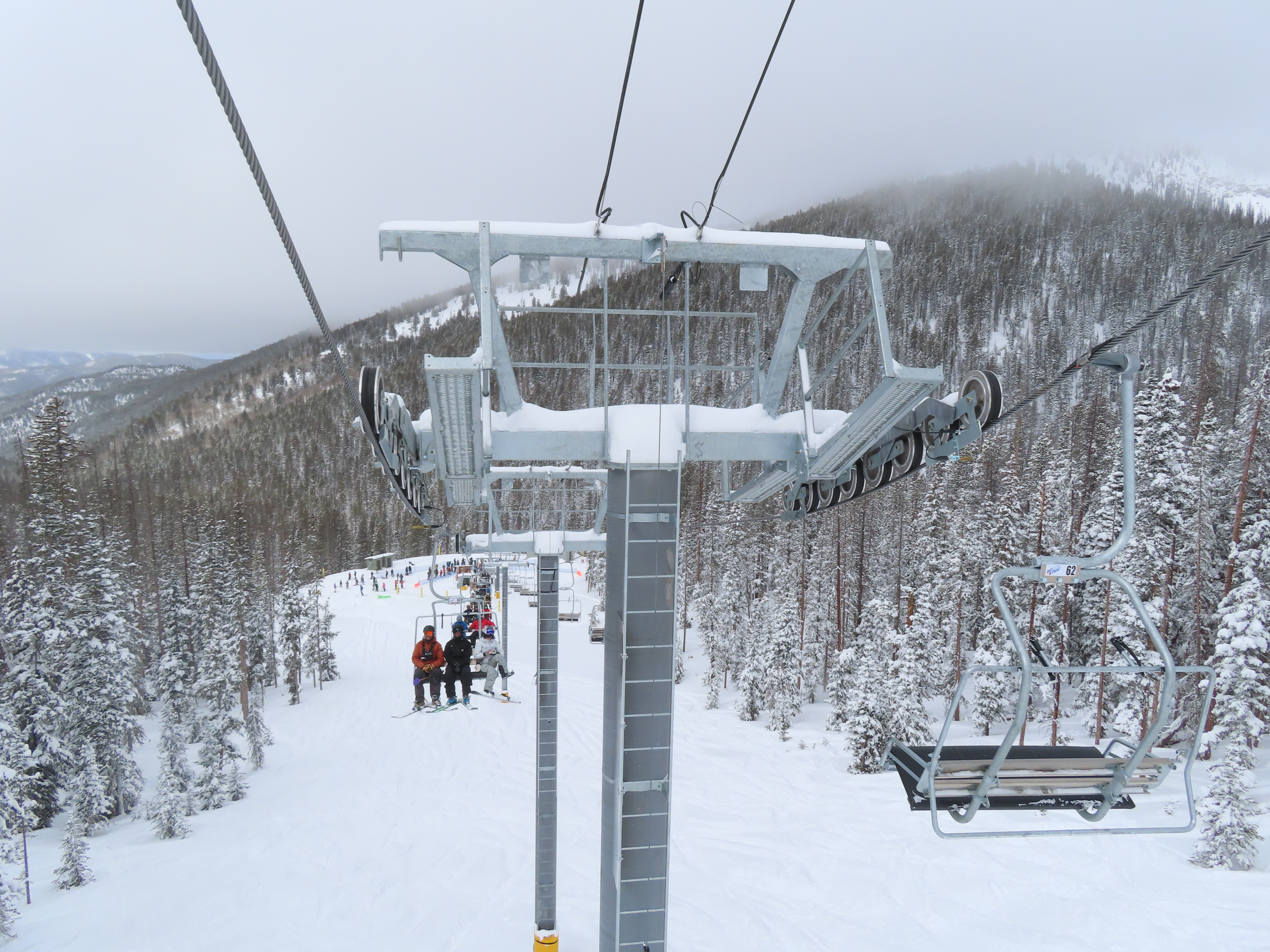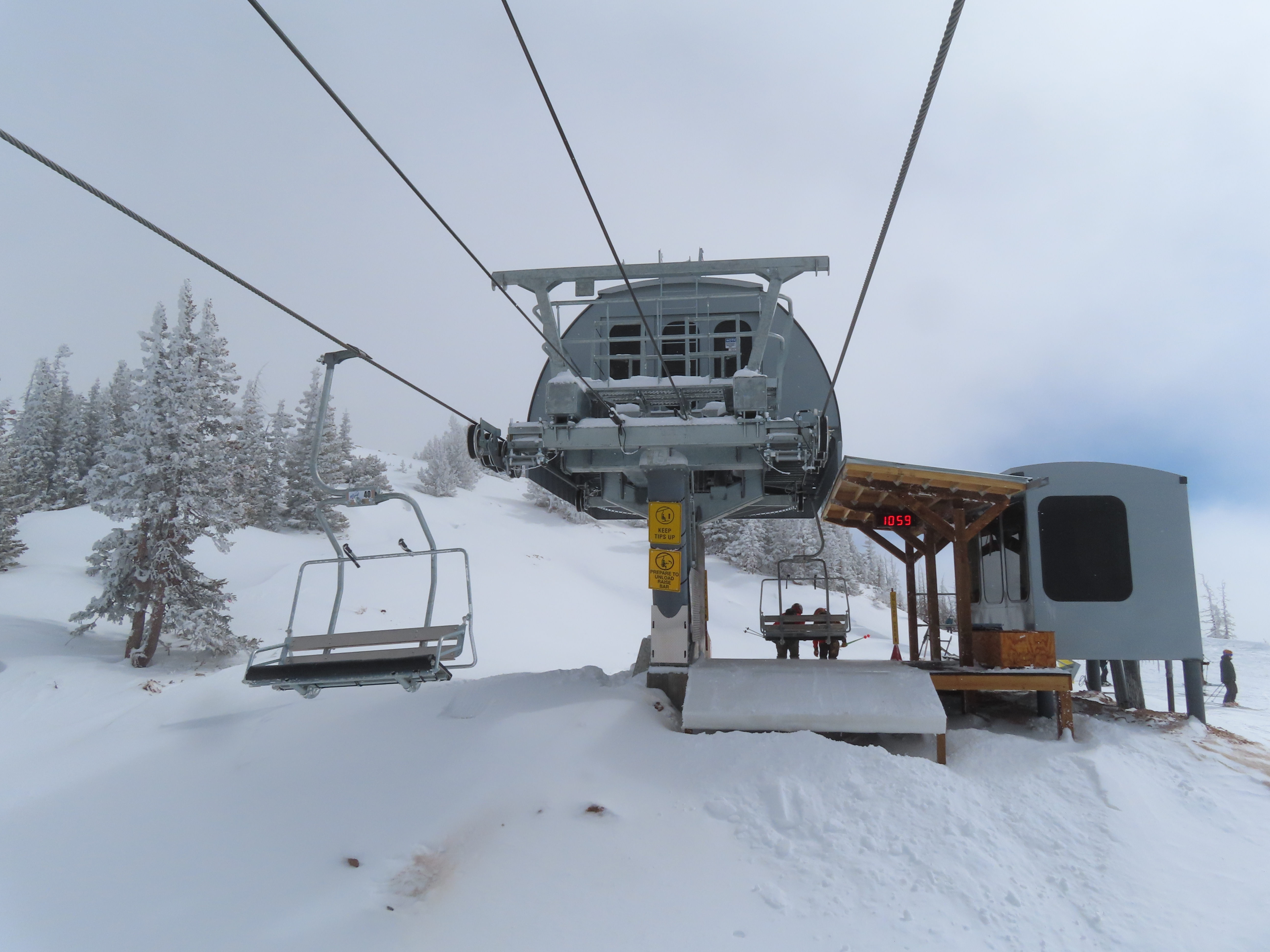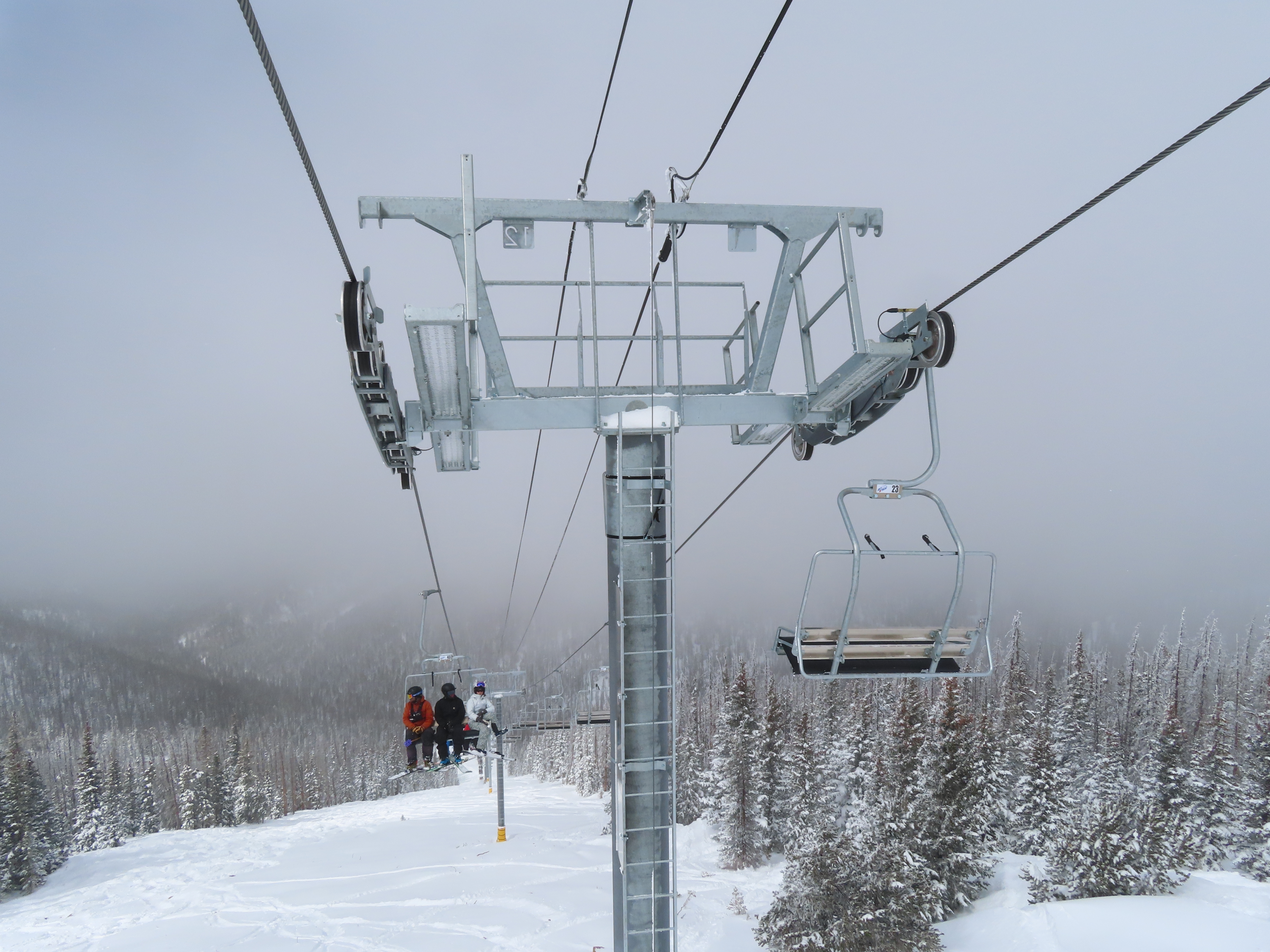 This lift anchors the No Name Basin expansion that opened in 2026.The lift line starts out low angle before ascending more steeply.Tower 2 right next to the bottom station.Skytrac triple chair.View down the line at tower 7.Hold down tower 6.View down the lower line.Tower 12.Breakover towers at the summit.Arriving at the mountaintop drive station.Unloading area at the summit.Side view of the top terminal.View down the line at tower 11.Side view of a support tower.Return station overview.This is the only top drive lift at Monarch as of 2026.View down from the summit.Tower 9.Lift overview.Return bullwheel on the backside of the mountain.Tower 3.Riding up at tower 7.Skytrac controls in the drive operator hut.Small evacuation engine.AC electric motor.Skytrac touchscreen.Controls inside the machine room.