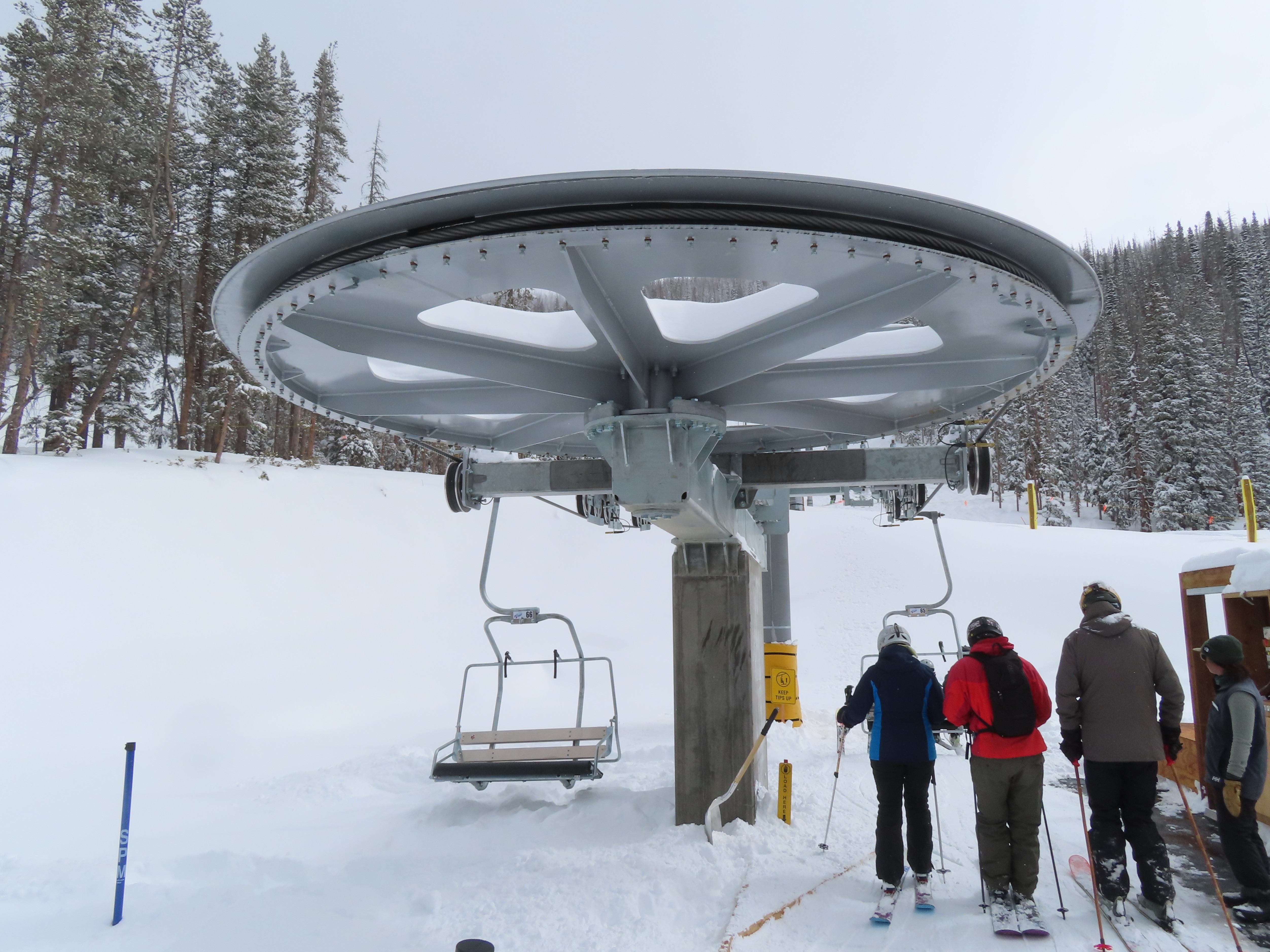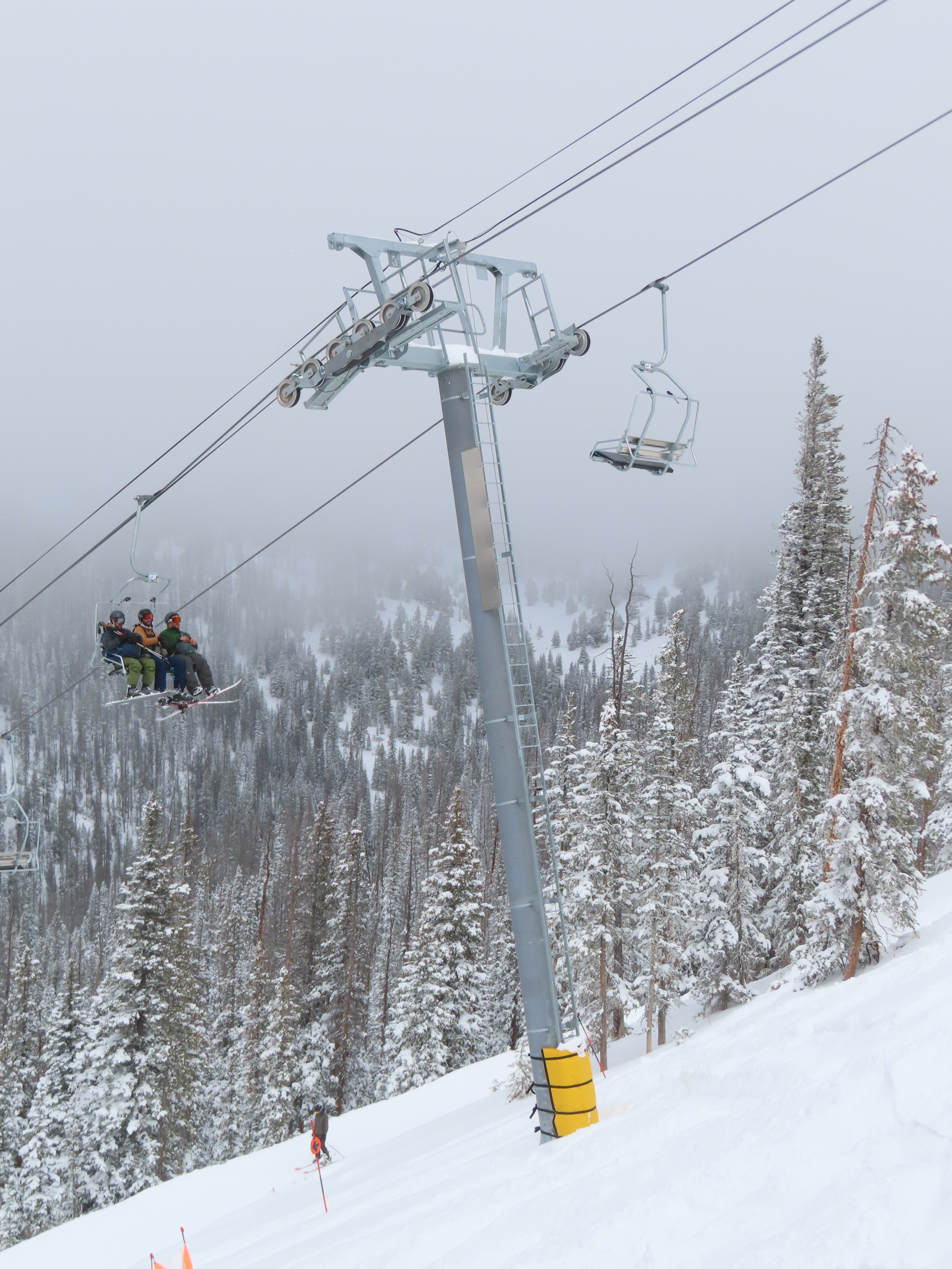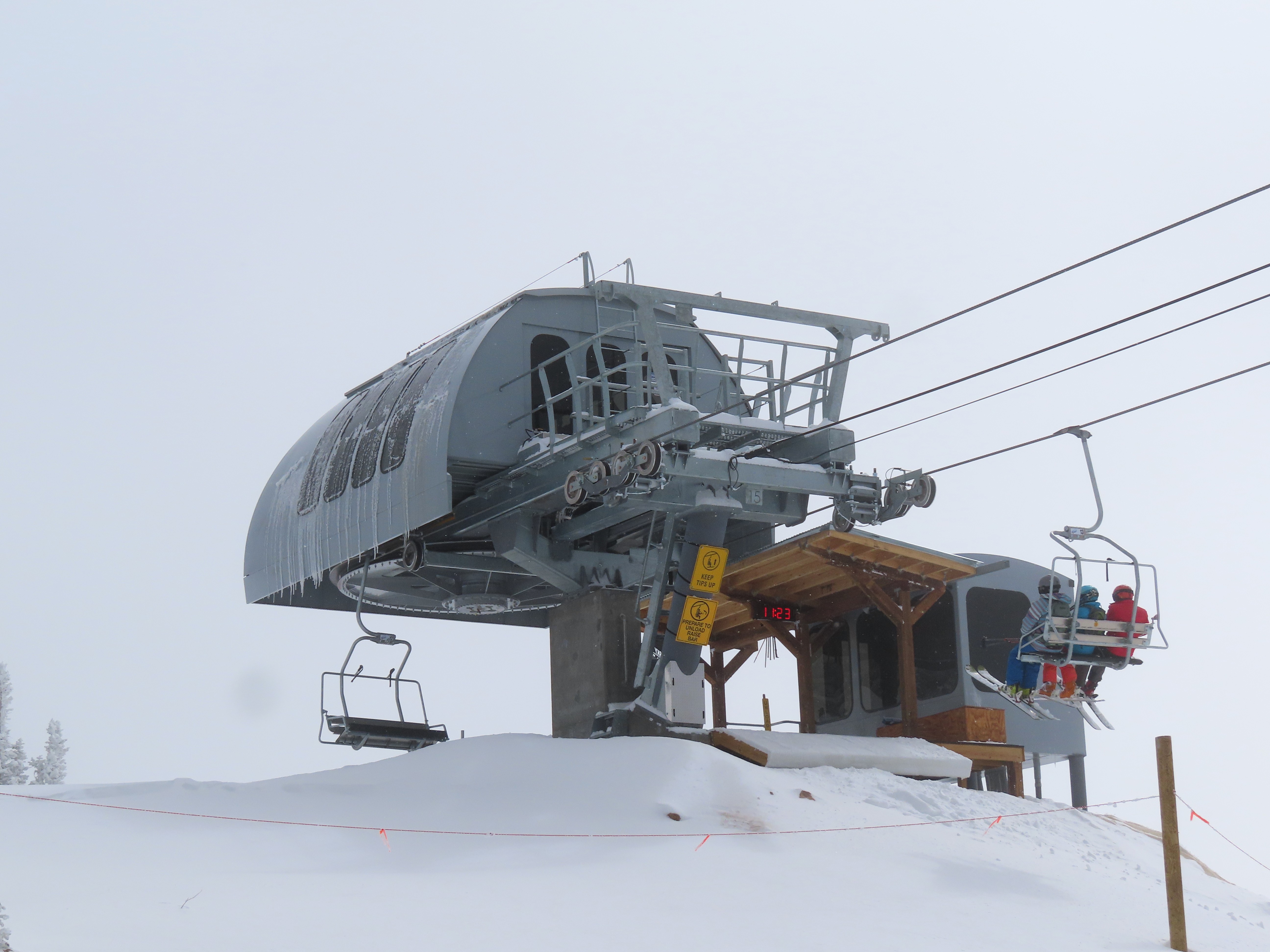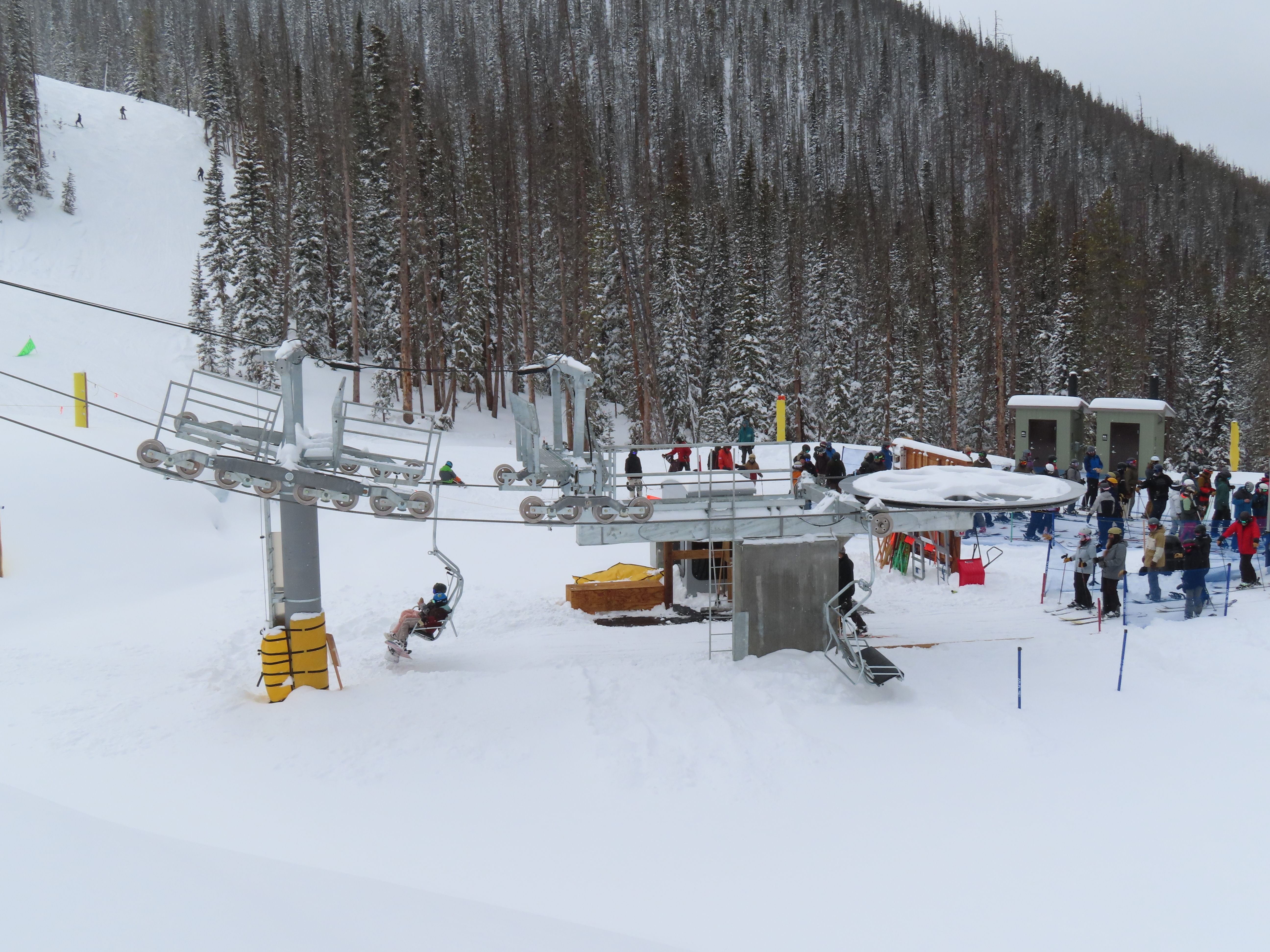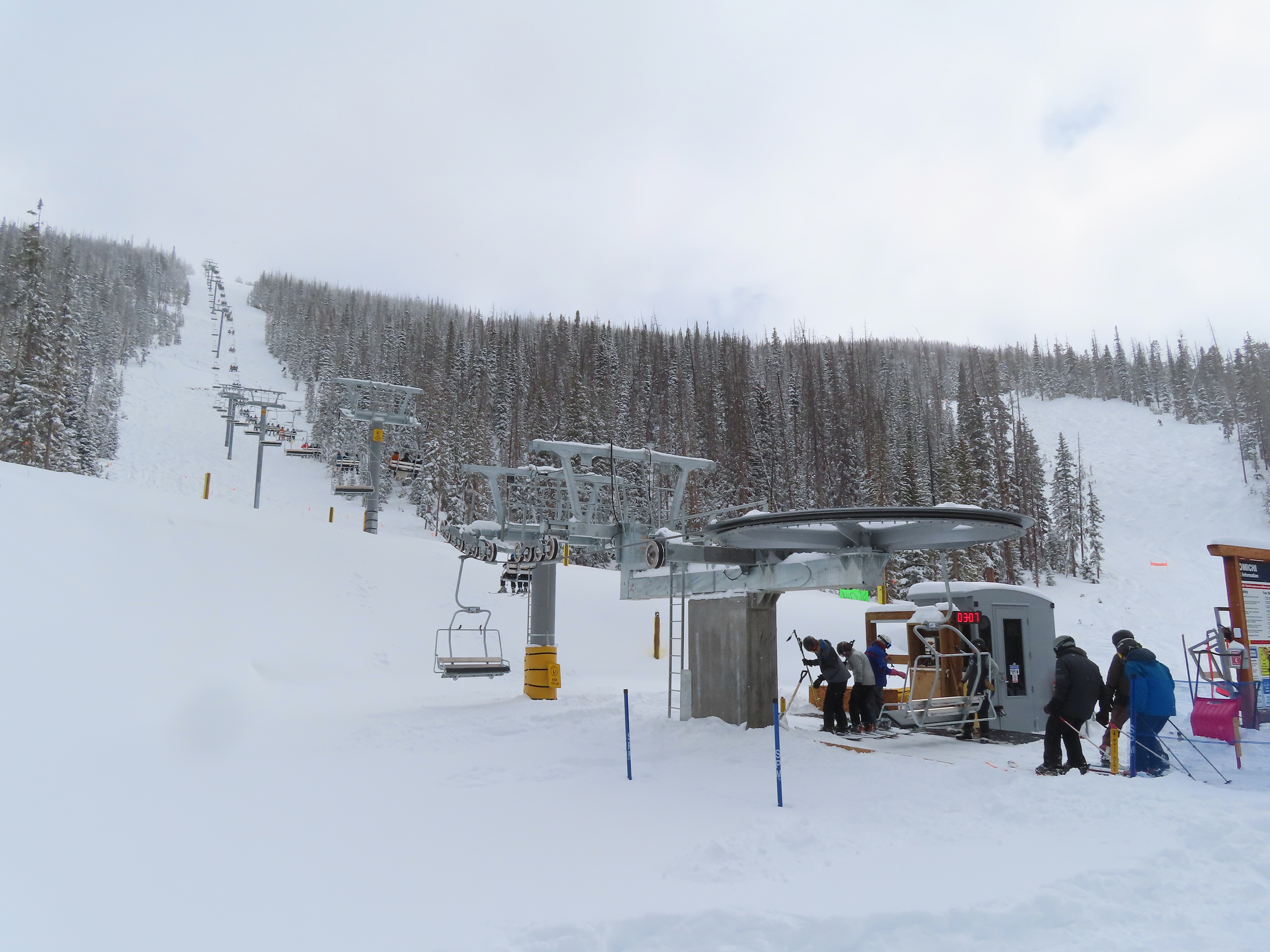 This lift anchors the No Name Basin expansion that opened in 2026.The lift line starts out low angle before ascending more steeply.Tower 2 right next to the bottom station.Skytrac triple chair.View down the line at tower 7.Hold down tower 6.View down the lower line.Tower 12.Breakover towers at the summit.Arriving at the mountaintop drive station.Unloading area at the summit.Side view of the top terminal.View down the line at tower 11.Side view of a support tower.Return station overview.This is the only top drive lift at Monarch as of 2026.View down from the summit.Tower 9.Lift overview.Return bullwheel on the backside of the mountain.Tower 3.Riding up at tower 7.Skytrac controls in the drive operator hut.Small evacuation engine.AC electric motor.Skytrac touchscreen.Controls inside the machine room.