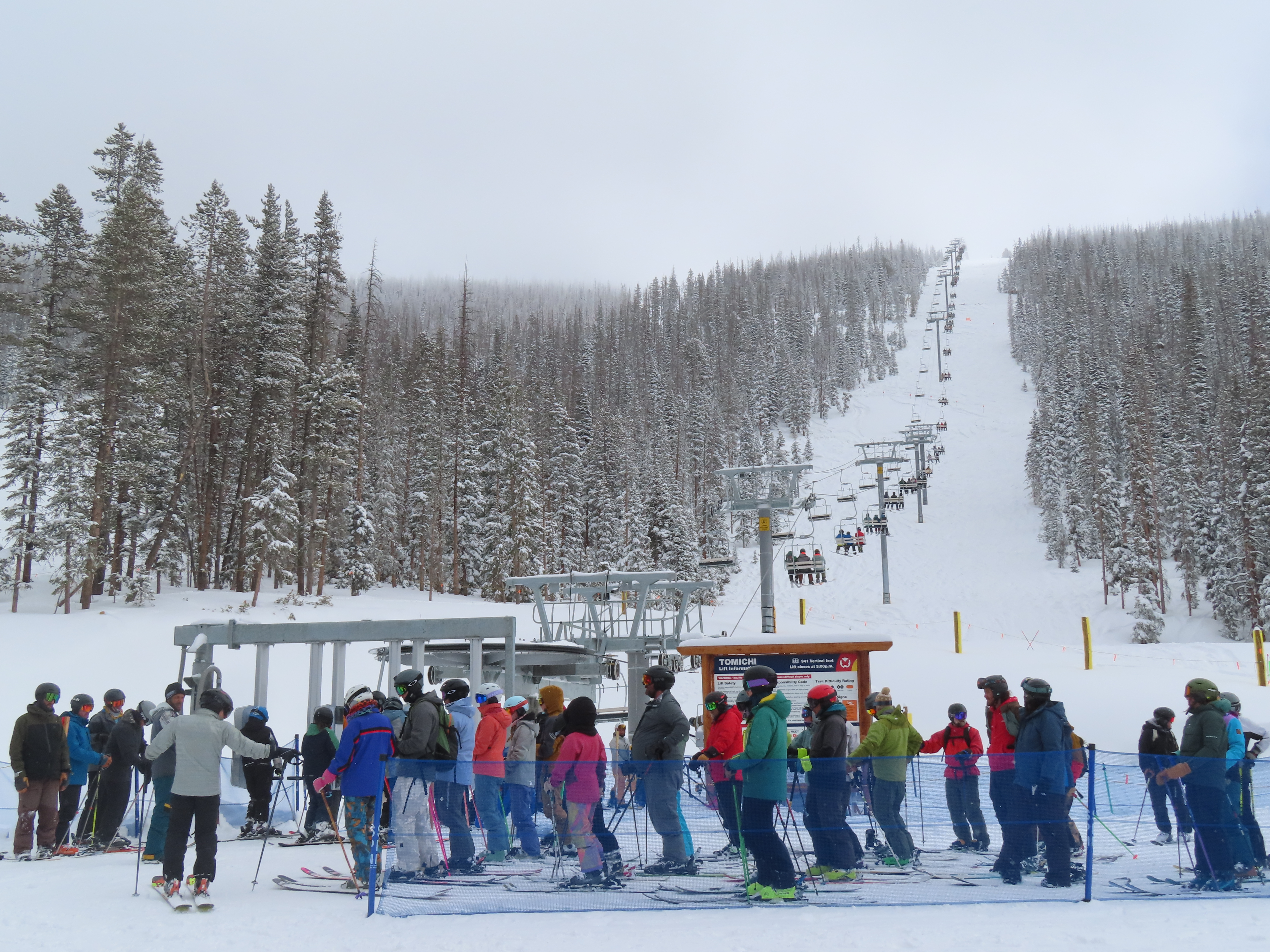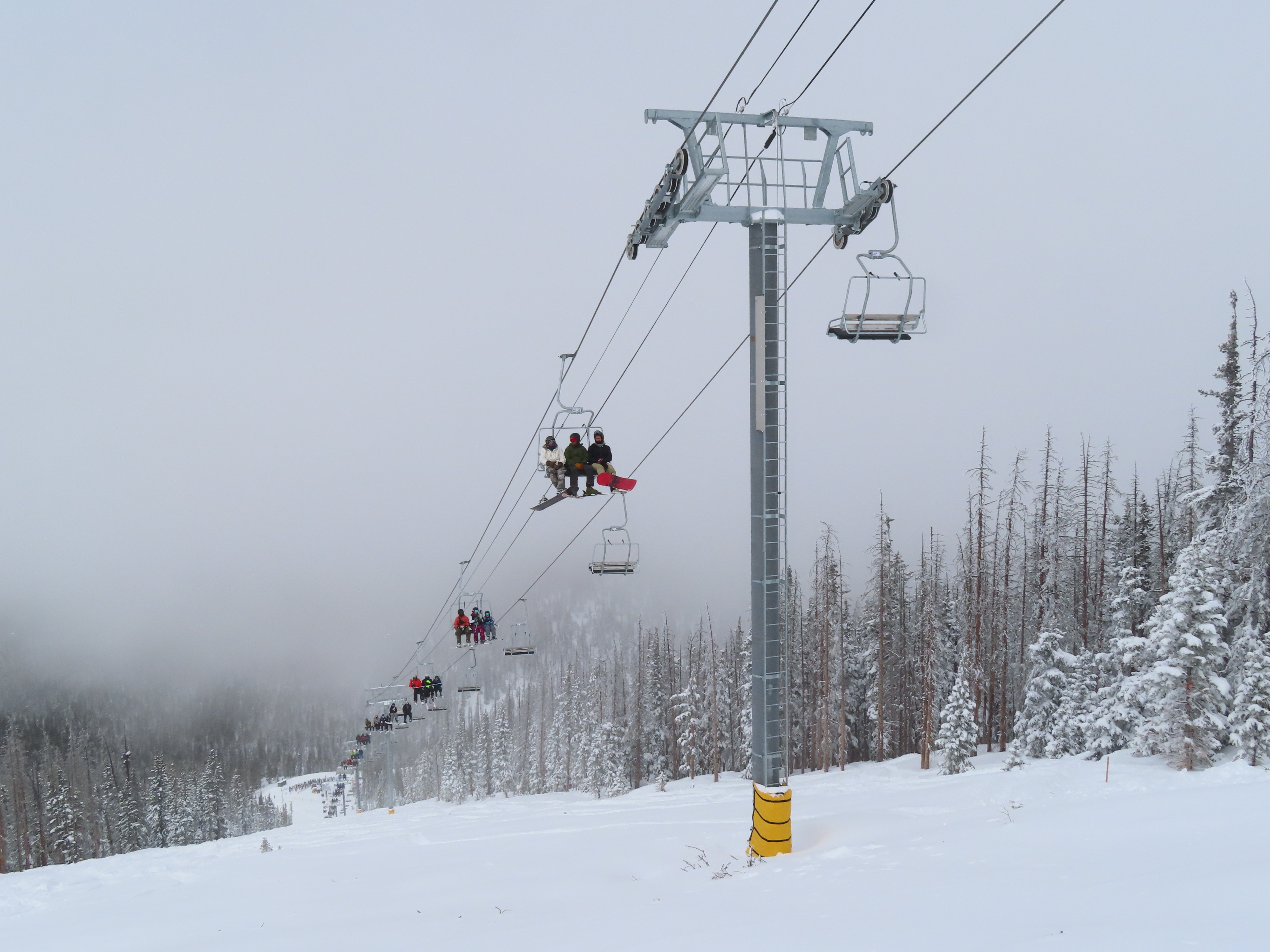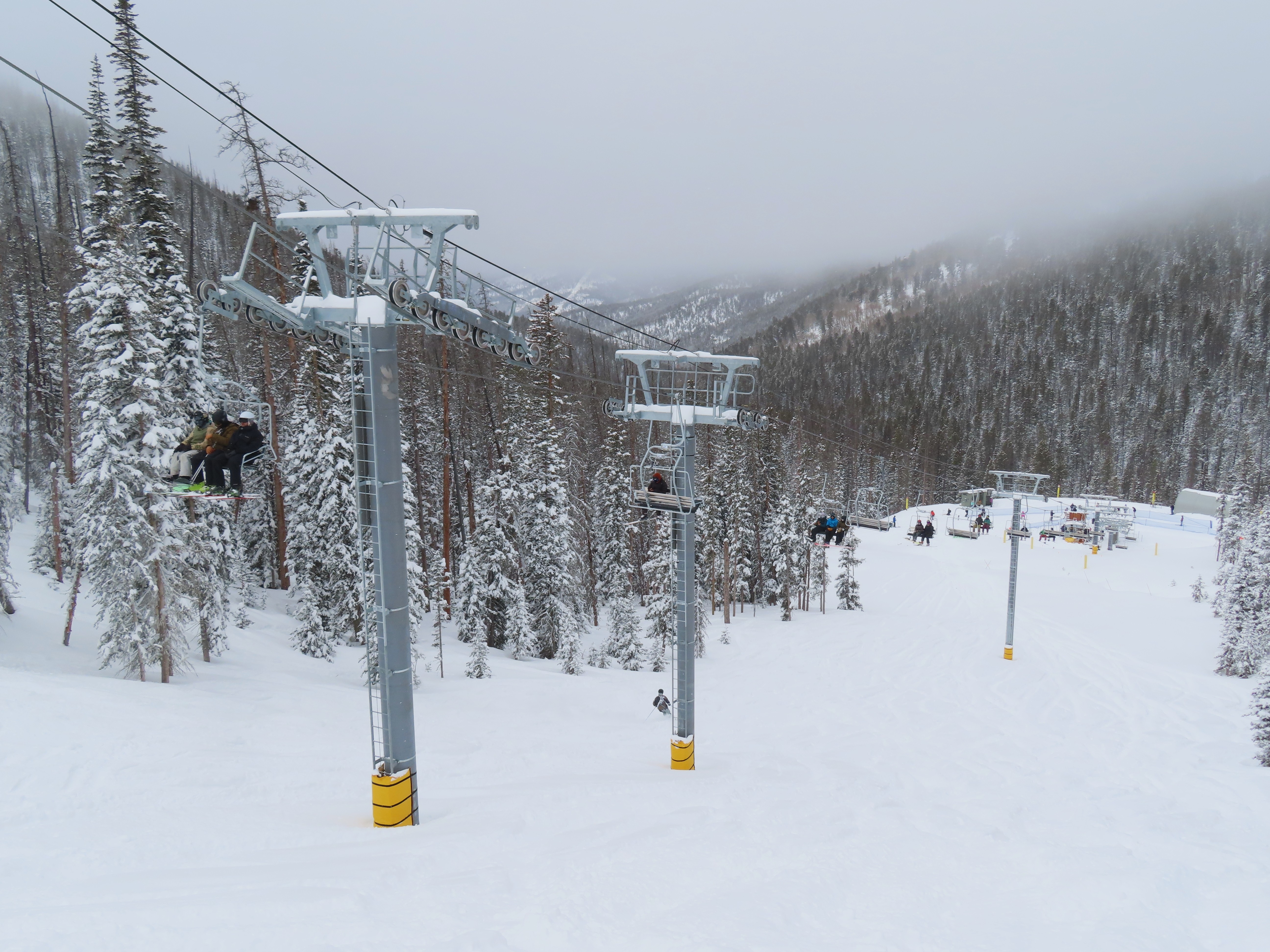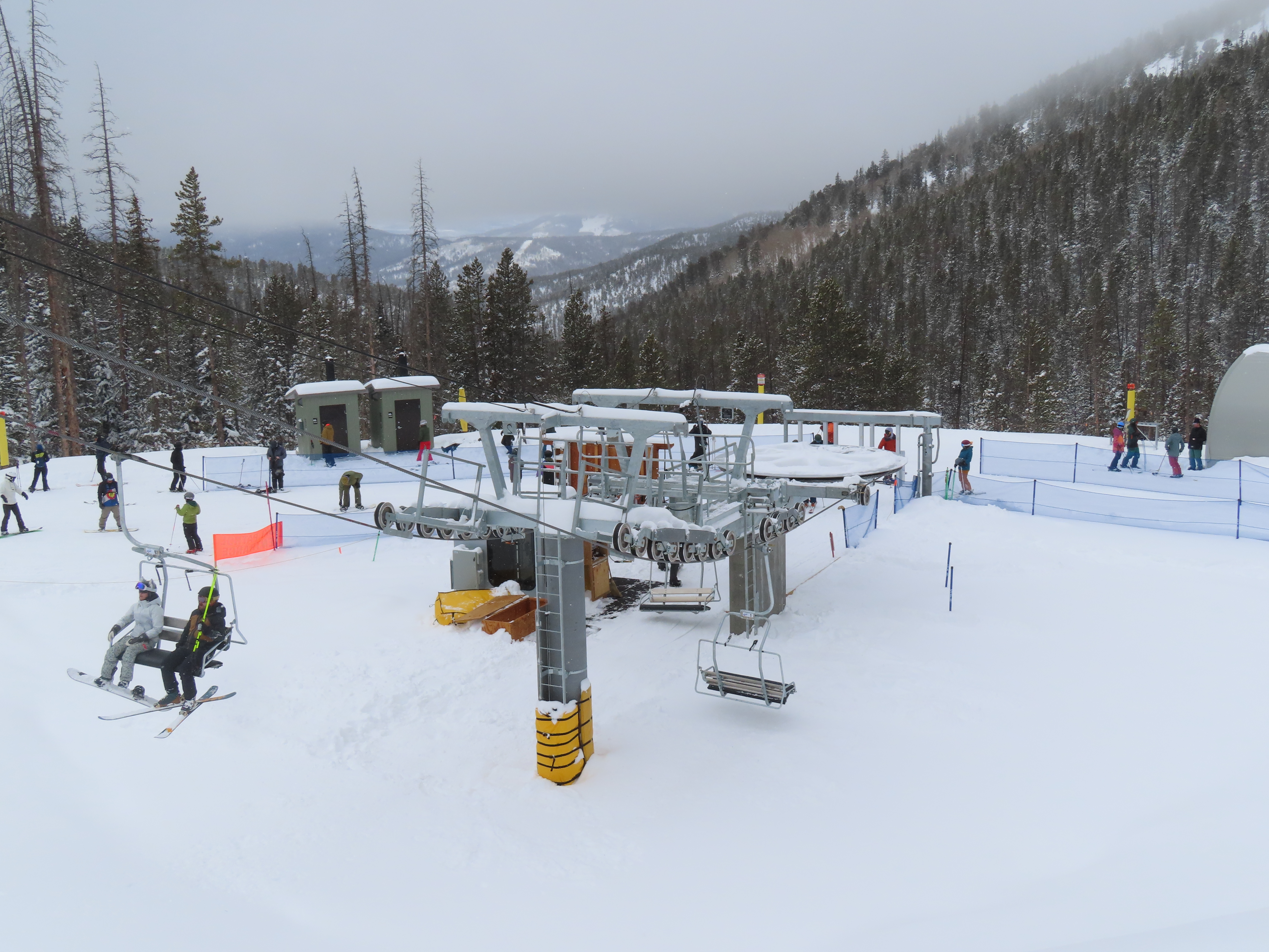 This lift anchors the No Name Basin expansion that opened in 2026.The lift line starts out low angle before ascending more steeply.Tower 2 right next to the bottom station.Skytrac triple chair.View down the line at tower 7.Hold down tower 6.View down the lower line.Tower 12.Breakover towers at the summit.Arriving at the mountaintop drive station.Unloading area at the summit.Side view of the top terminal.View down the line at tower 11.Side view of a support tower.Return station overview.This is the only top drive lift at Monarch as of 2026.View down from the summit.Tower 9.Lift overview.Return bullwheel on the backside of the mountain.Tower 3.Riding up at tower 7.Skytrac controls in the drive operator hut.Small evacuation engine.AC electric motor.Skytrac touchscreen.Controls inside the machine room.