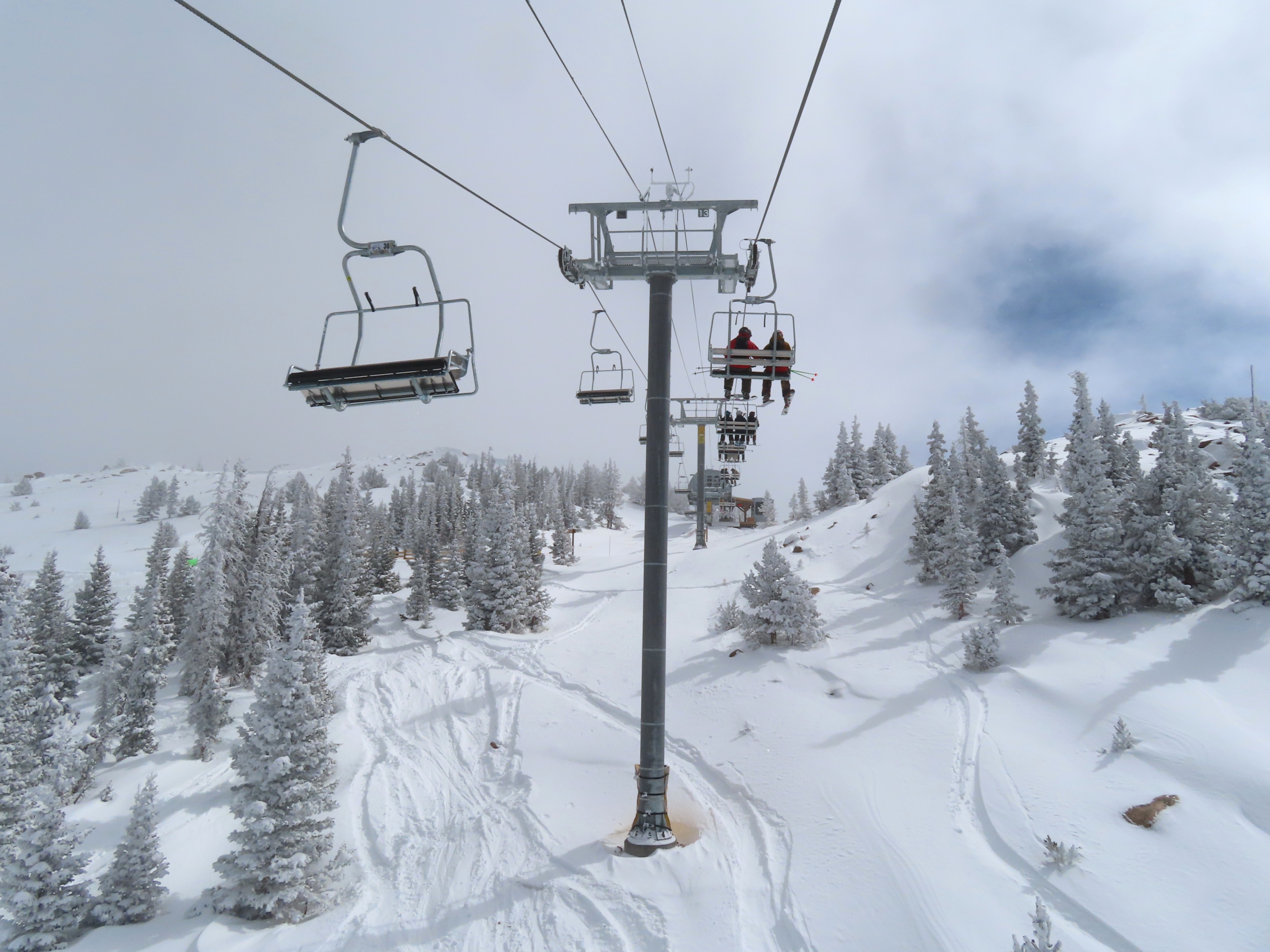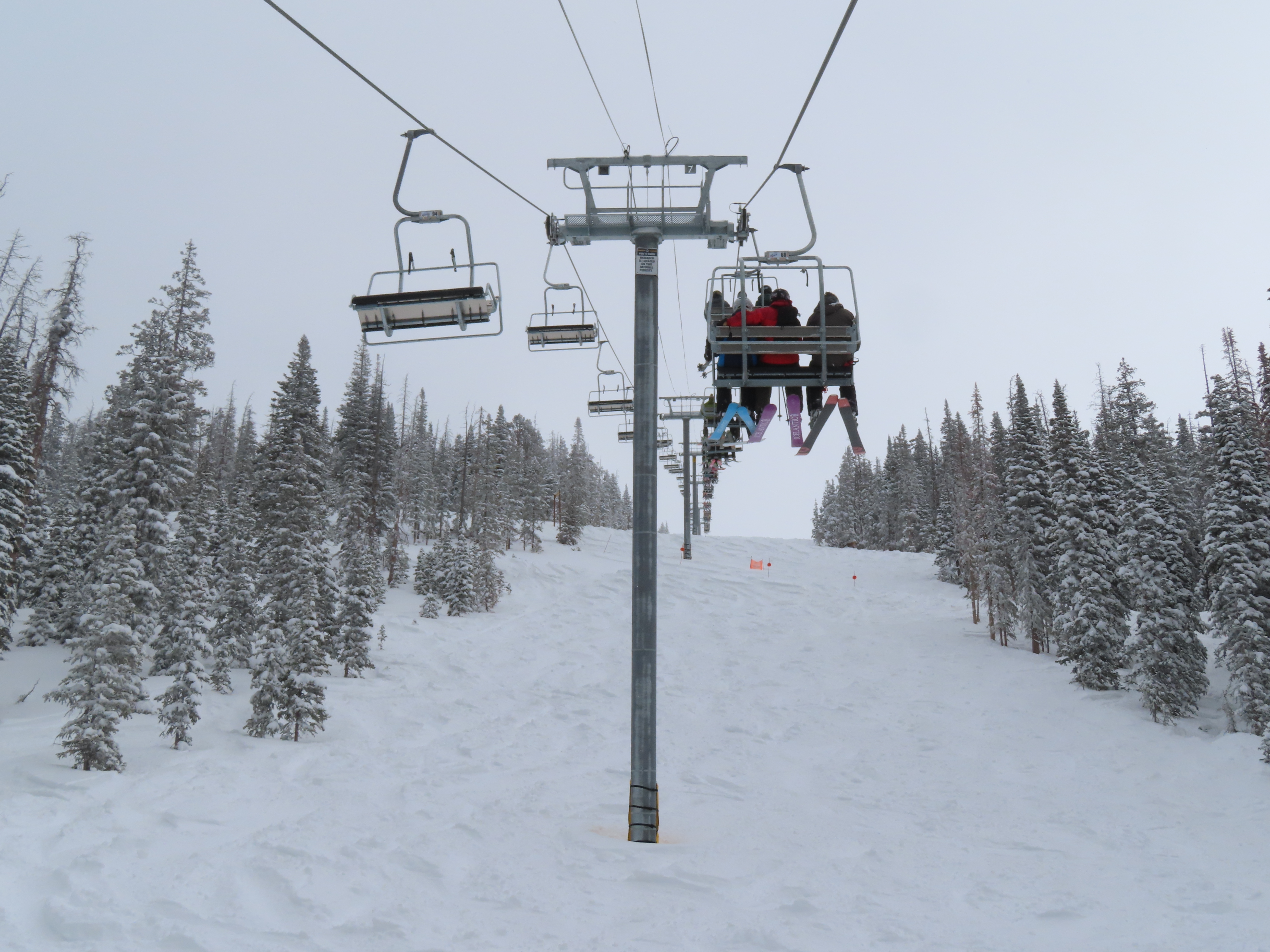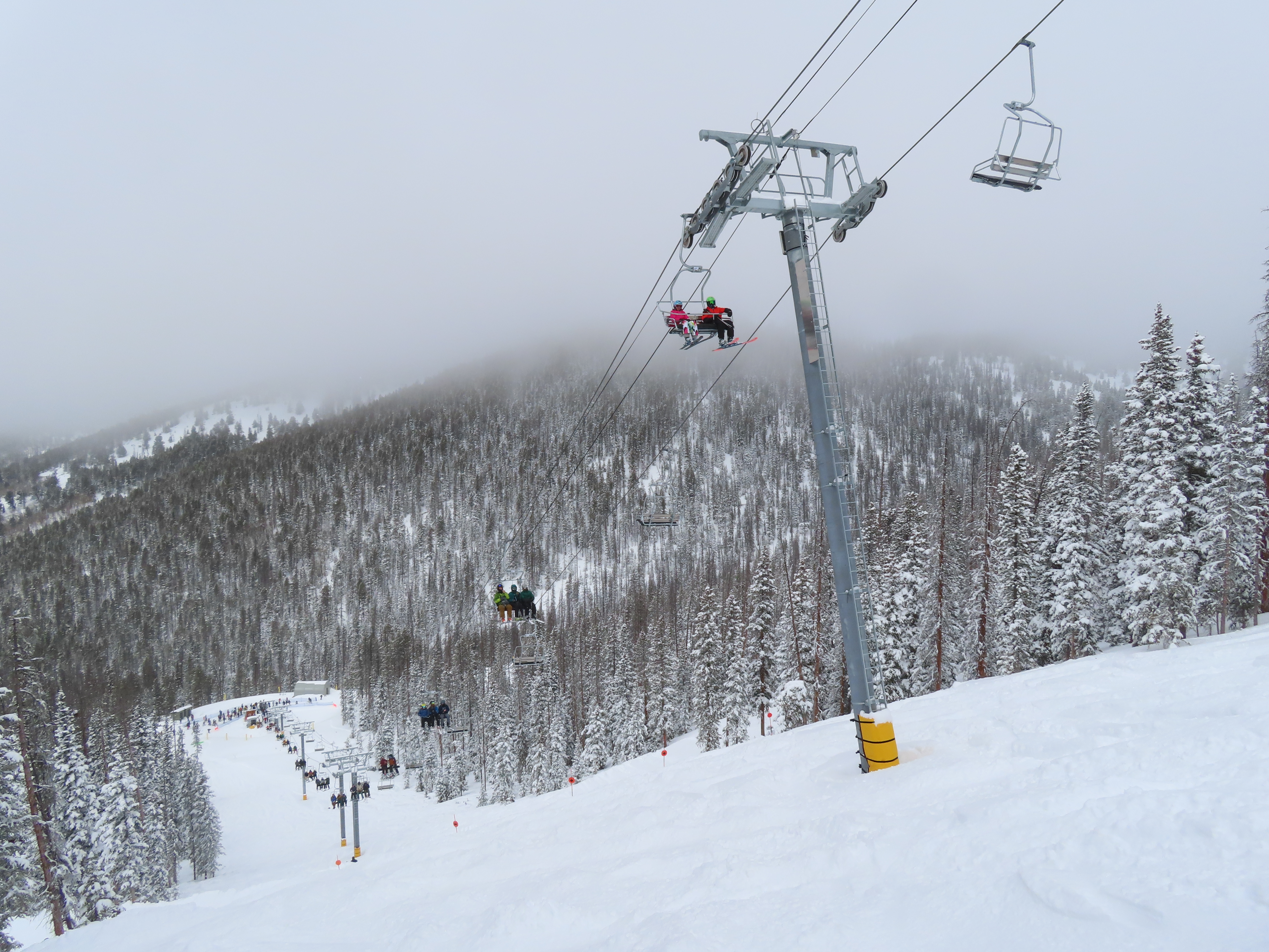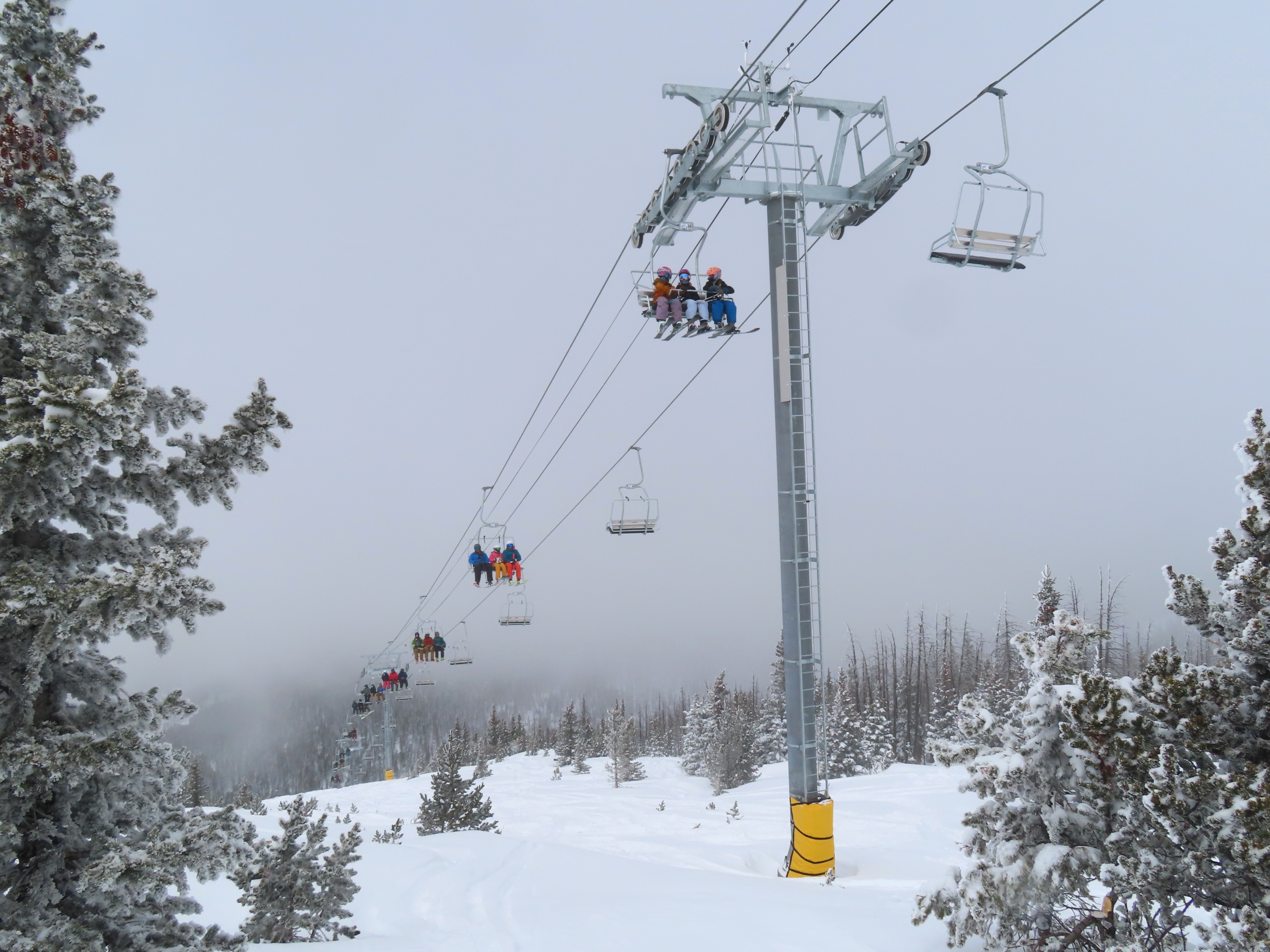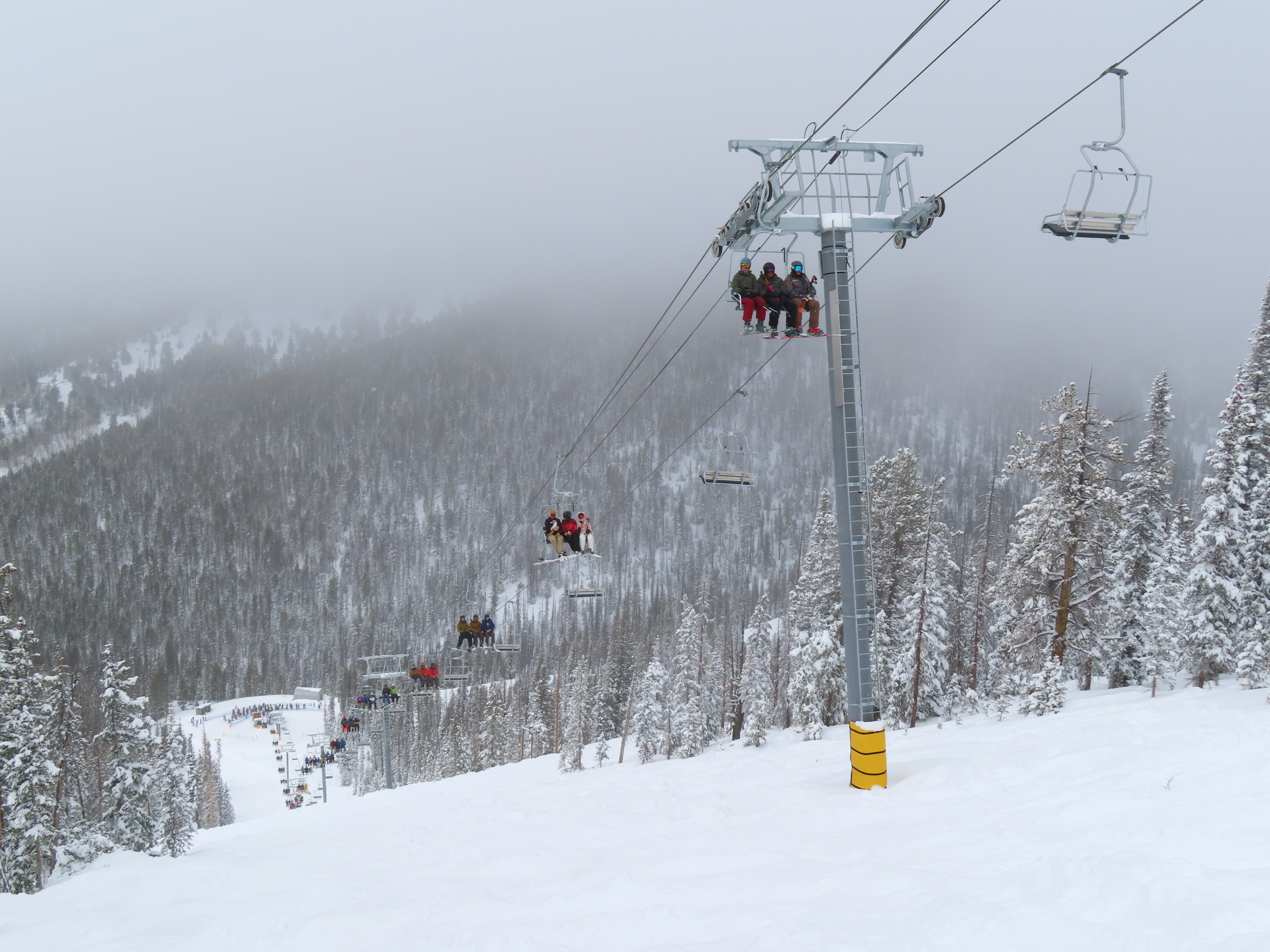This lift anchors the No Name Basin expansion that opened in 2026.The lift line starts out low angle before ascending more steeply.Tower 2 right next to the bottom station.Skytrac triple chair.View down the line at tower 7.Hold down tower 6.View down the lower line.Tower 12.Breakover towers at the summit.Arriving at the mountaintop drive station.Unloading area at the summit.Side view of the top terminal.View down the line at tower 11.Side view of a support tower.Return station overview.This is the only top drive lift at Monarch as of 2026.View down from the summit.Tower 9.Lift overview.Return bullwheel on the backside of the mountain.Tower 3.Riding up at tower 7.Skytrac controls in the drive operator hut.Small evacuation engine.AC electric motor.Skytrac touchscreen.Controls inside the machine room.