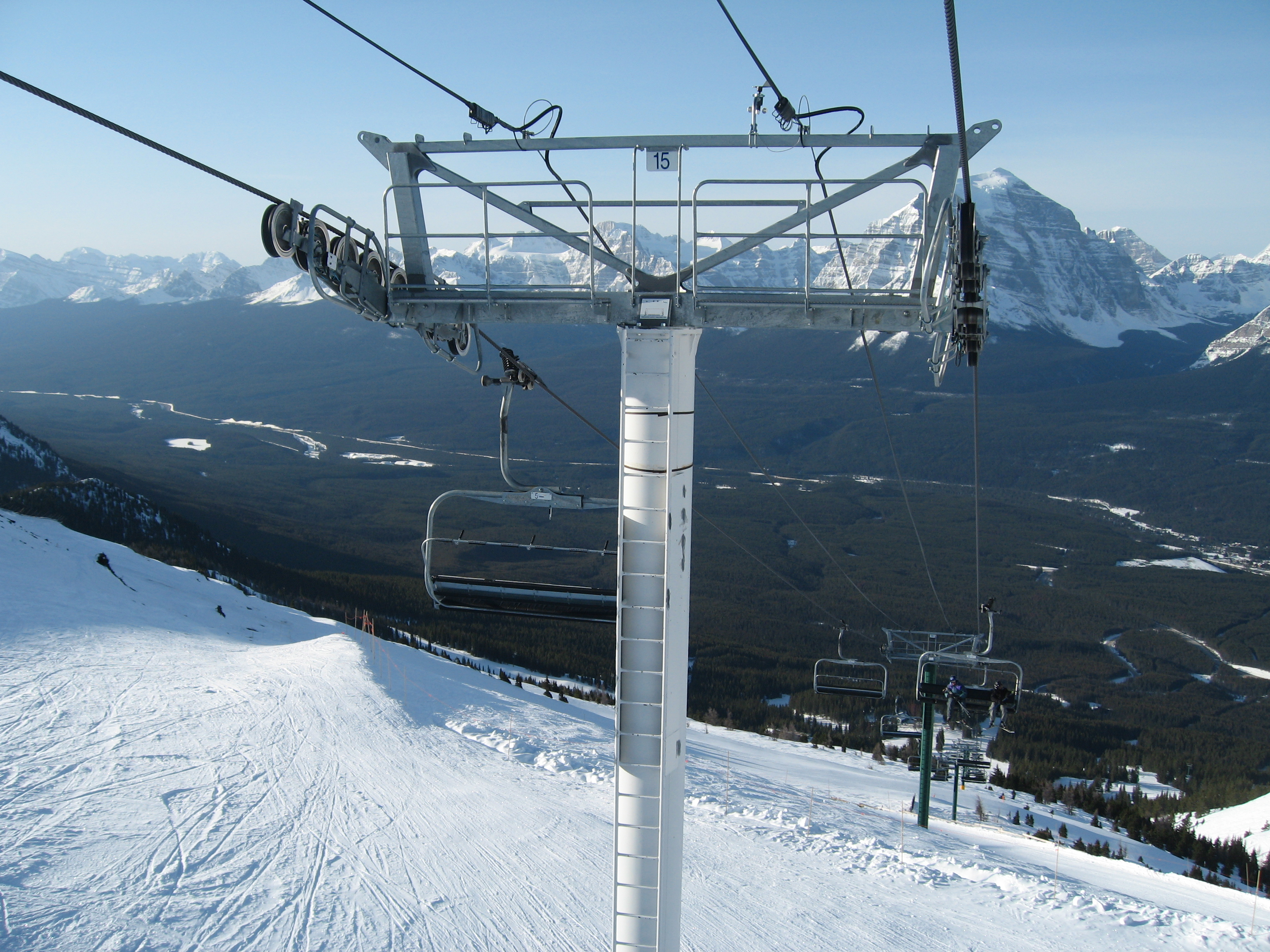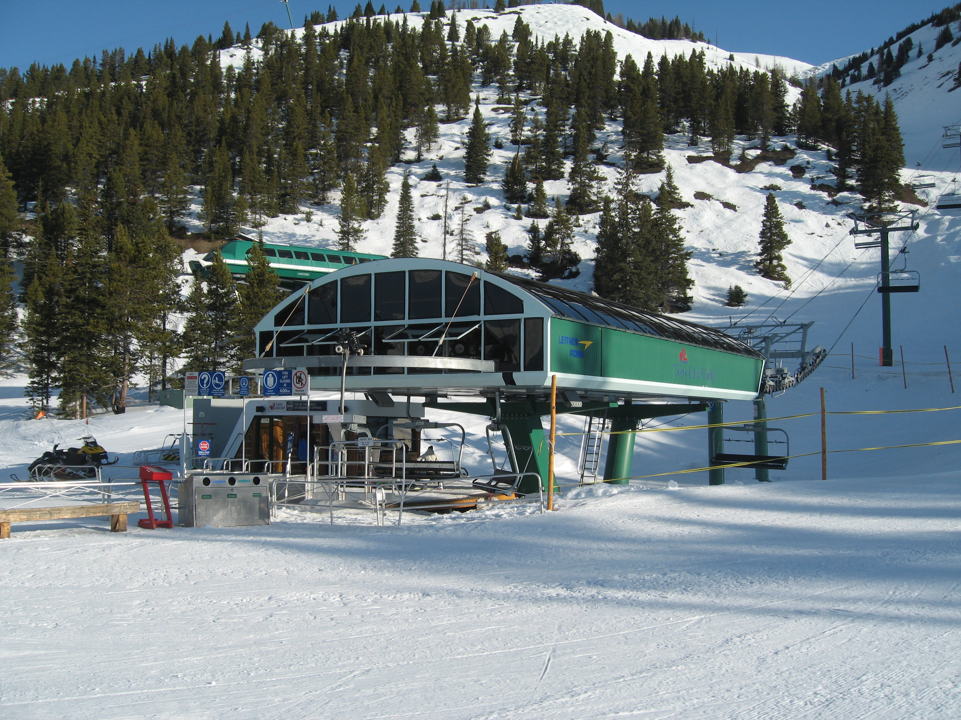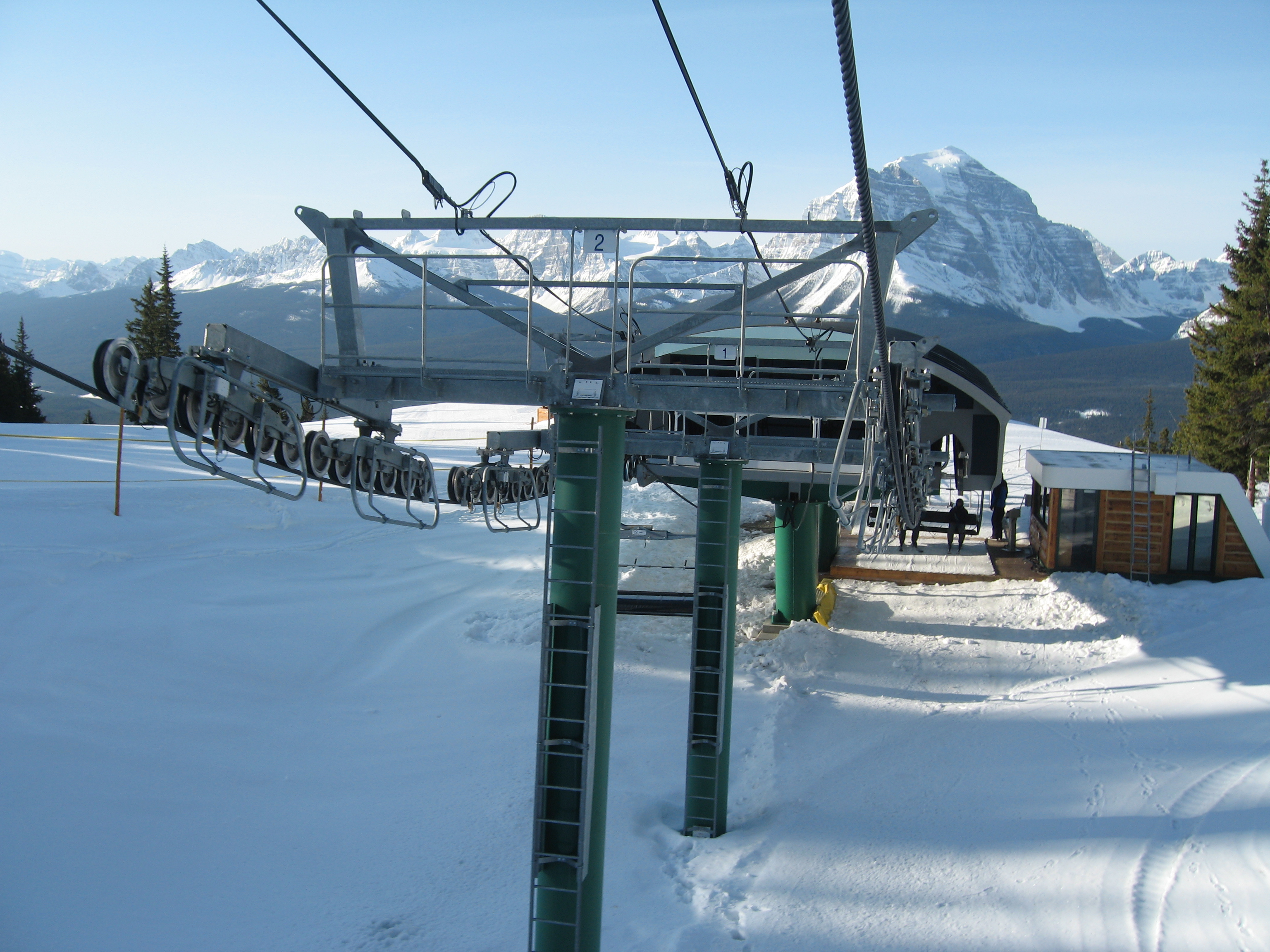 Depression towers 1-2 right out of the base.Bottom station with maintenance railTower 2.View down the line.Tower 11.Tower 15.Unload area with a Yan lift shack leftover from the previous high speed quad. This terminal also re-used the Yan tower masts.Top terminal side view.Appropriate name for this lift.Lower terminal with Yan operator house.Riding up.Tower 15 and the top.Tension rams below the top station.Top departure side.
