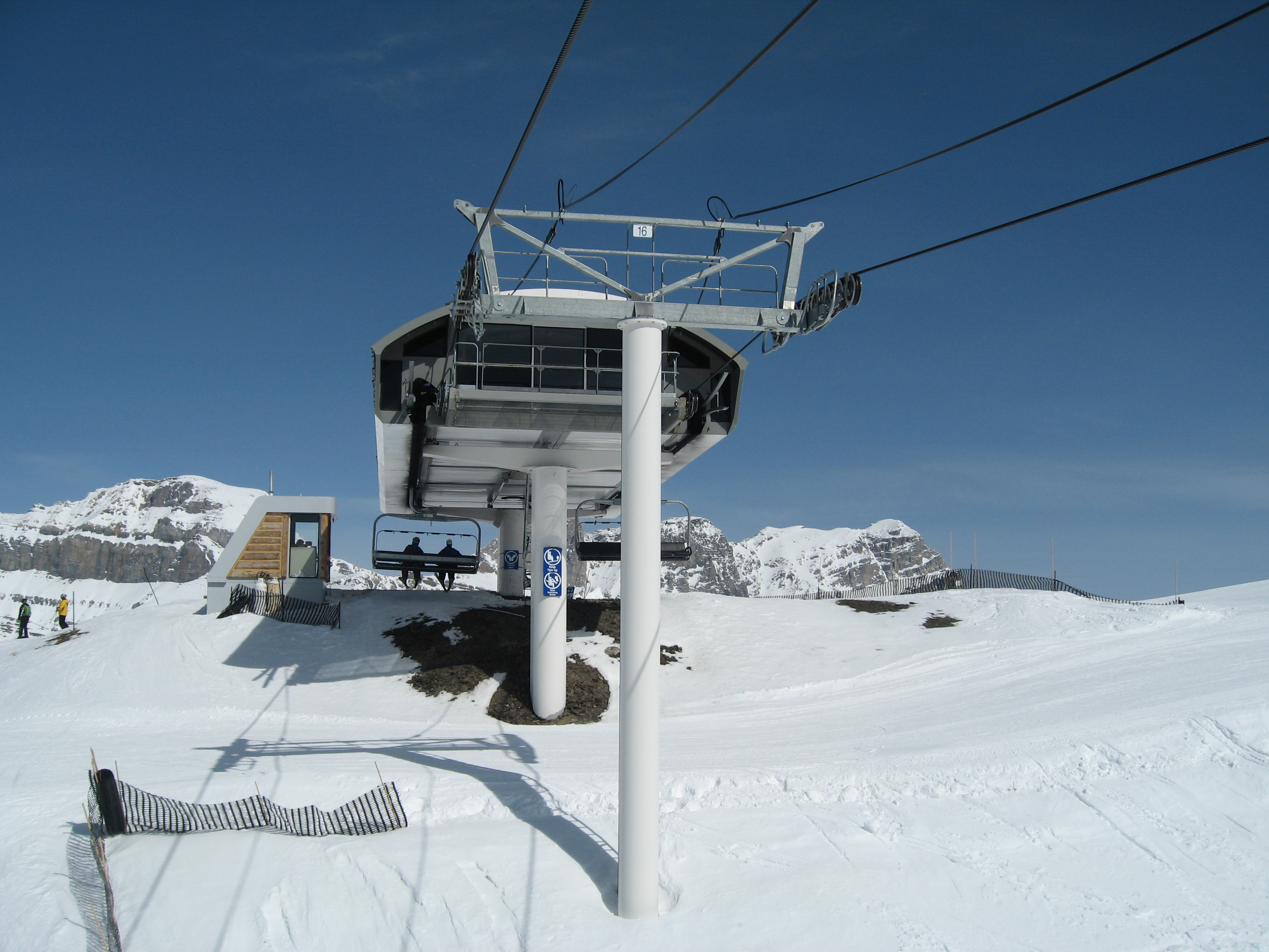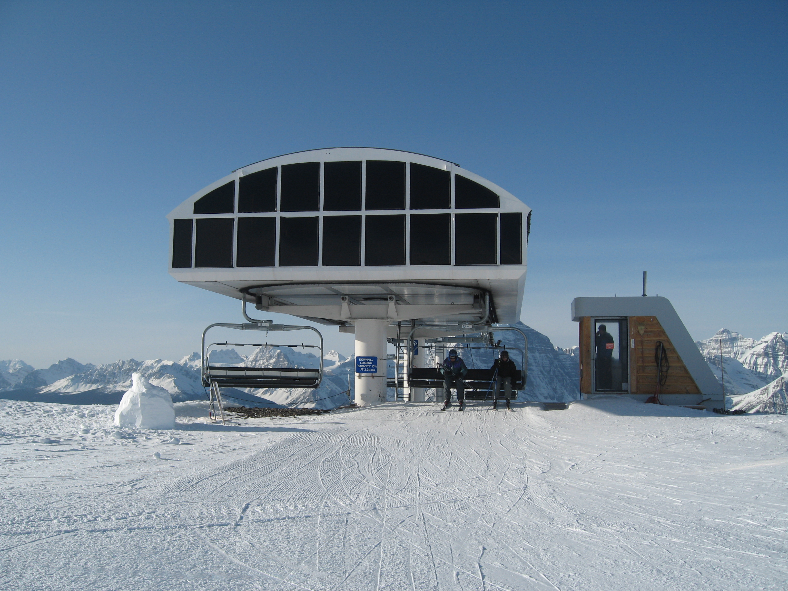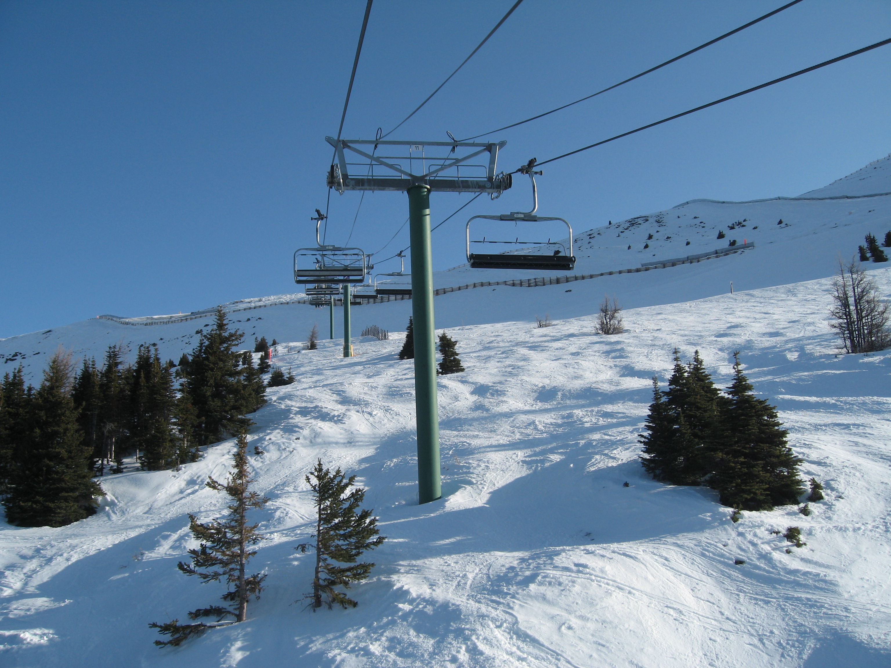 Depression towers 1-2 right out of the base.Bottom station with maintenance railTower 2.View down the line.Tower 11.Tower 15.Unload area with a Yan lift shack leftover from the previous high speed quad. This terminal also re-used the Yan tower masts.Top terminal side view.Appropriate name for this lift.Lower terminal with Yan operator house.Riding up.Tower 15 and the top.Tension rams below the top station.Top departure side.