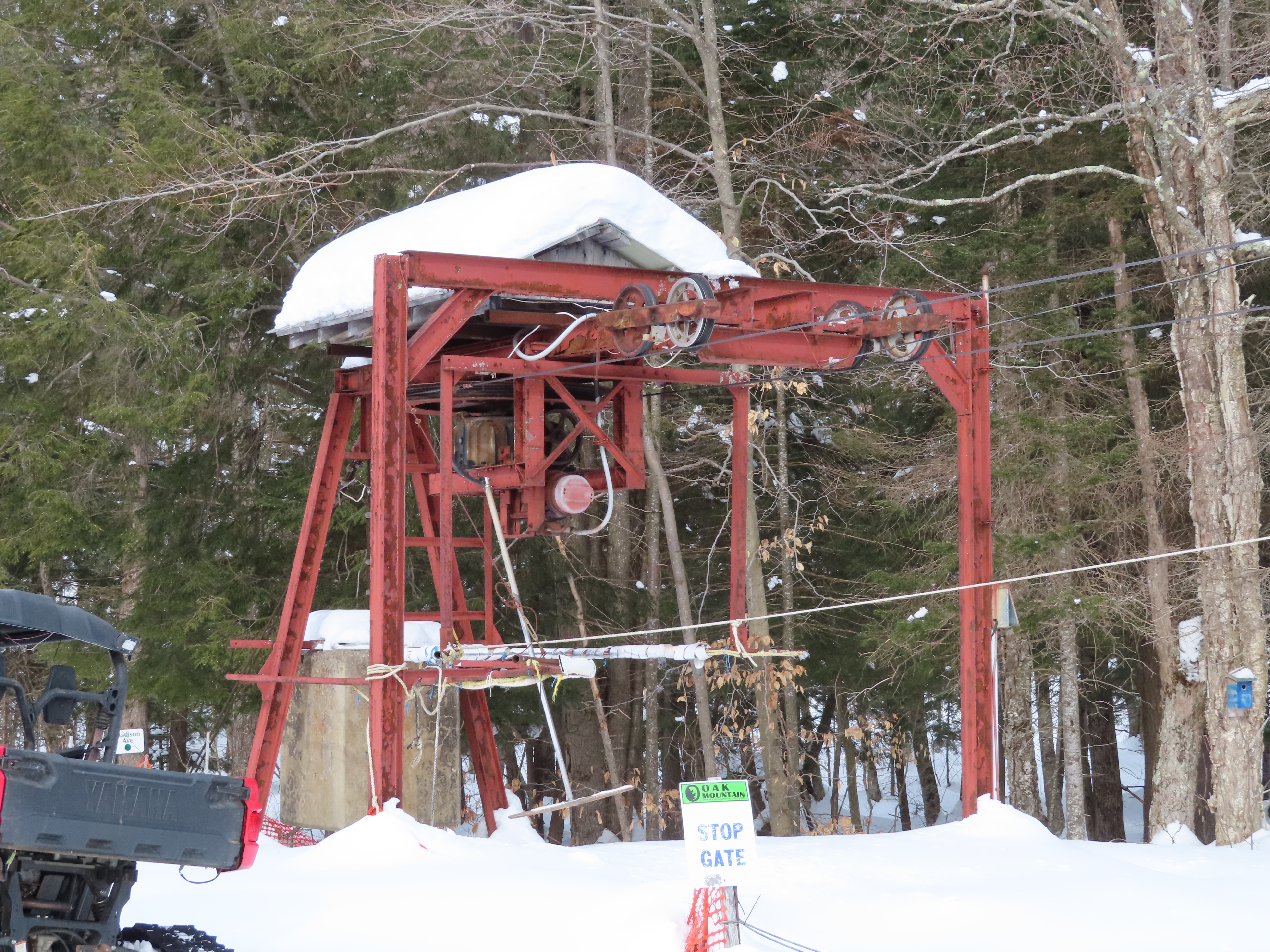 Tree Bar – Oak Mountain, NY Finally a T-Bar with a unique name! Fixed return bullwheel at the bottom. Tower 2. Lower part of the track. Top terminal with both drive motor and tensioning by counterweight. Unloading point. Another view of the top terminal structure. View down the lift. Share this: Click to email a link to a friend (Opens in new window) Email Click to share on X (Opens in new window) X Click to share on Facebook (Opens in new window) Facebook Like Loading...