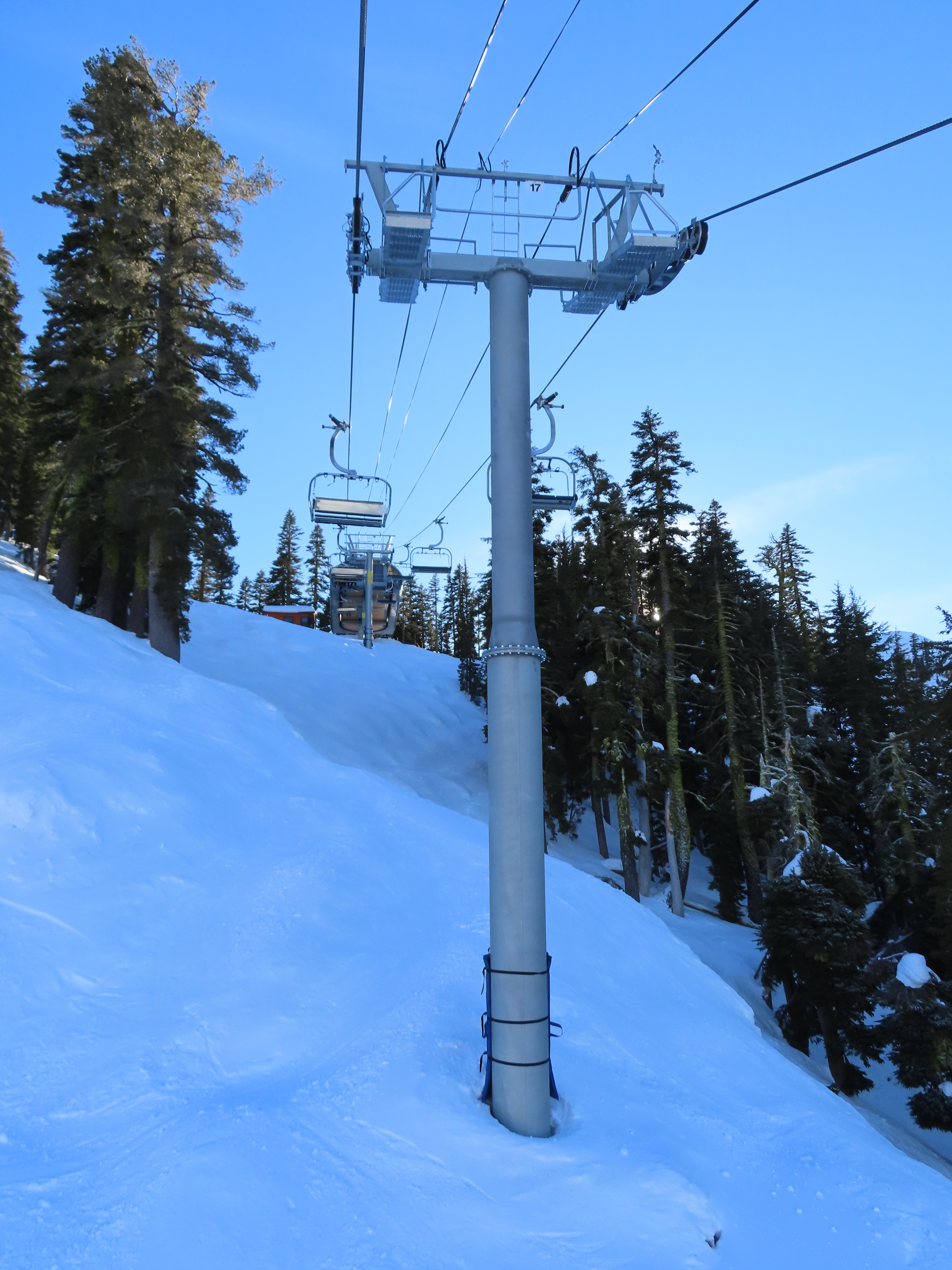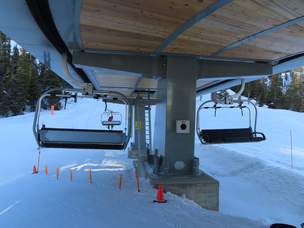 The lift passes by The Chalet and the drive stations for Scott and Yellow.