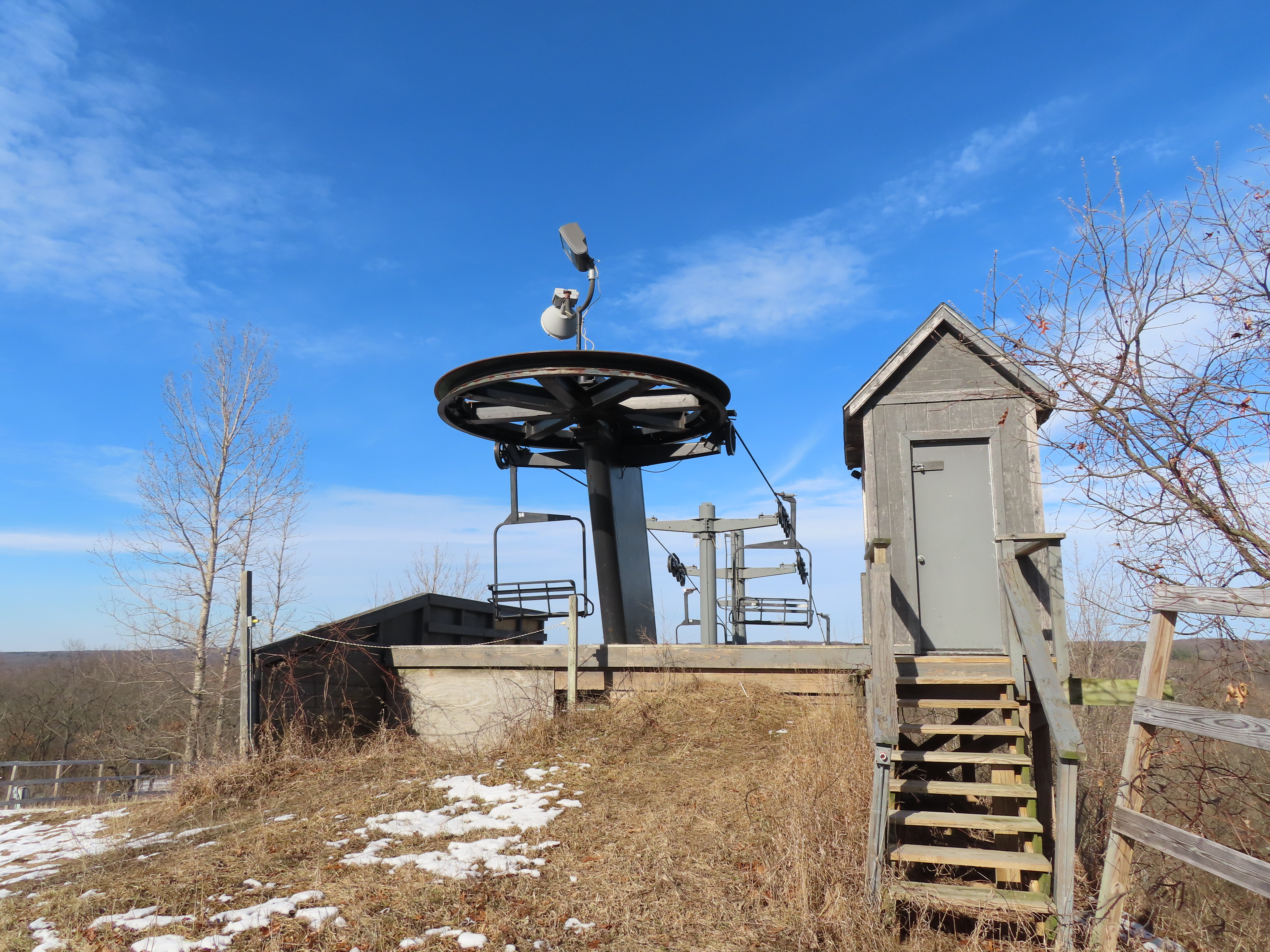 In the photos, there is not enough snow cover for it to be running. Yes, it does look like an old Hall chairlift.