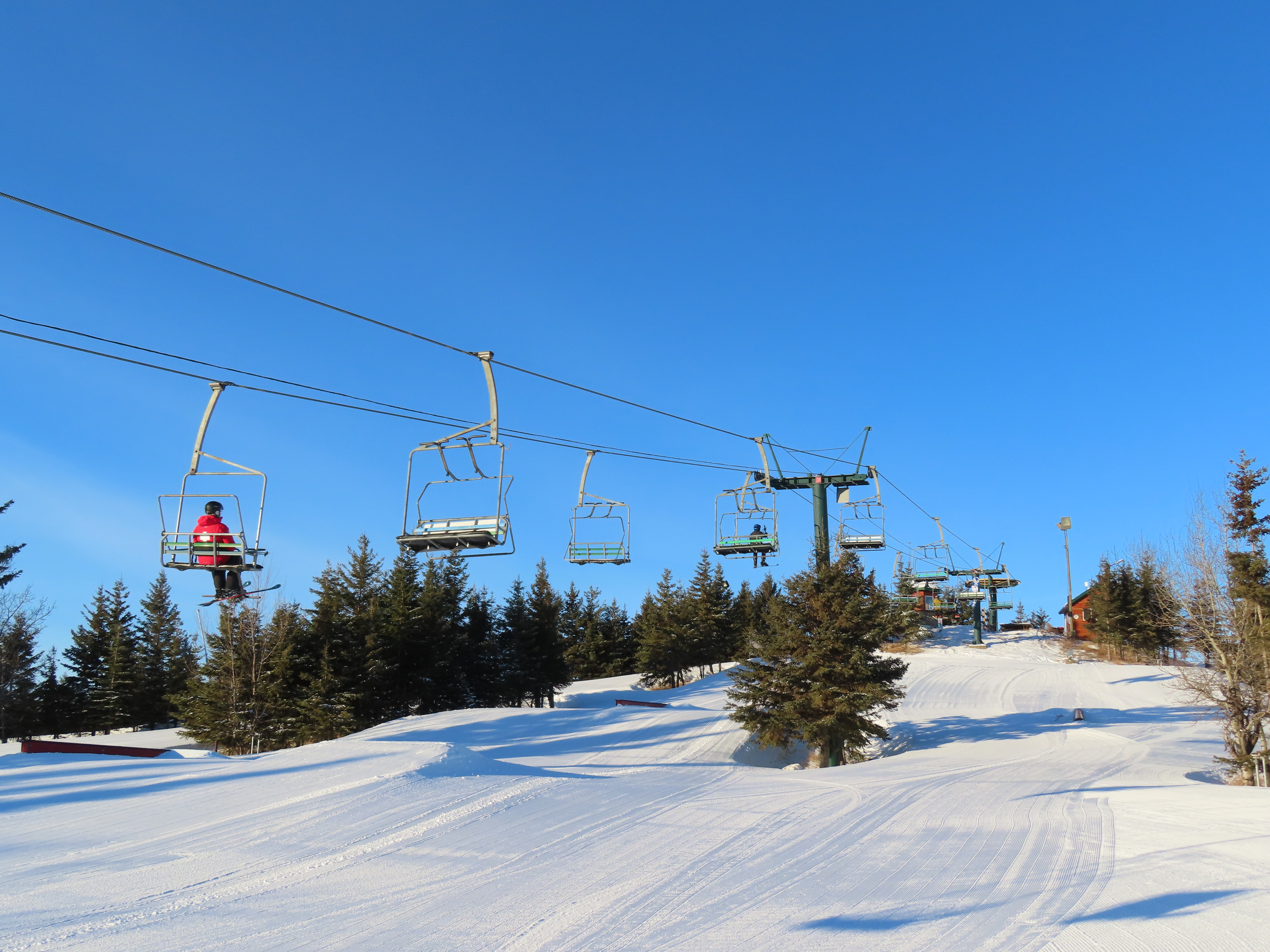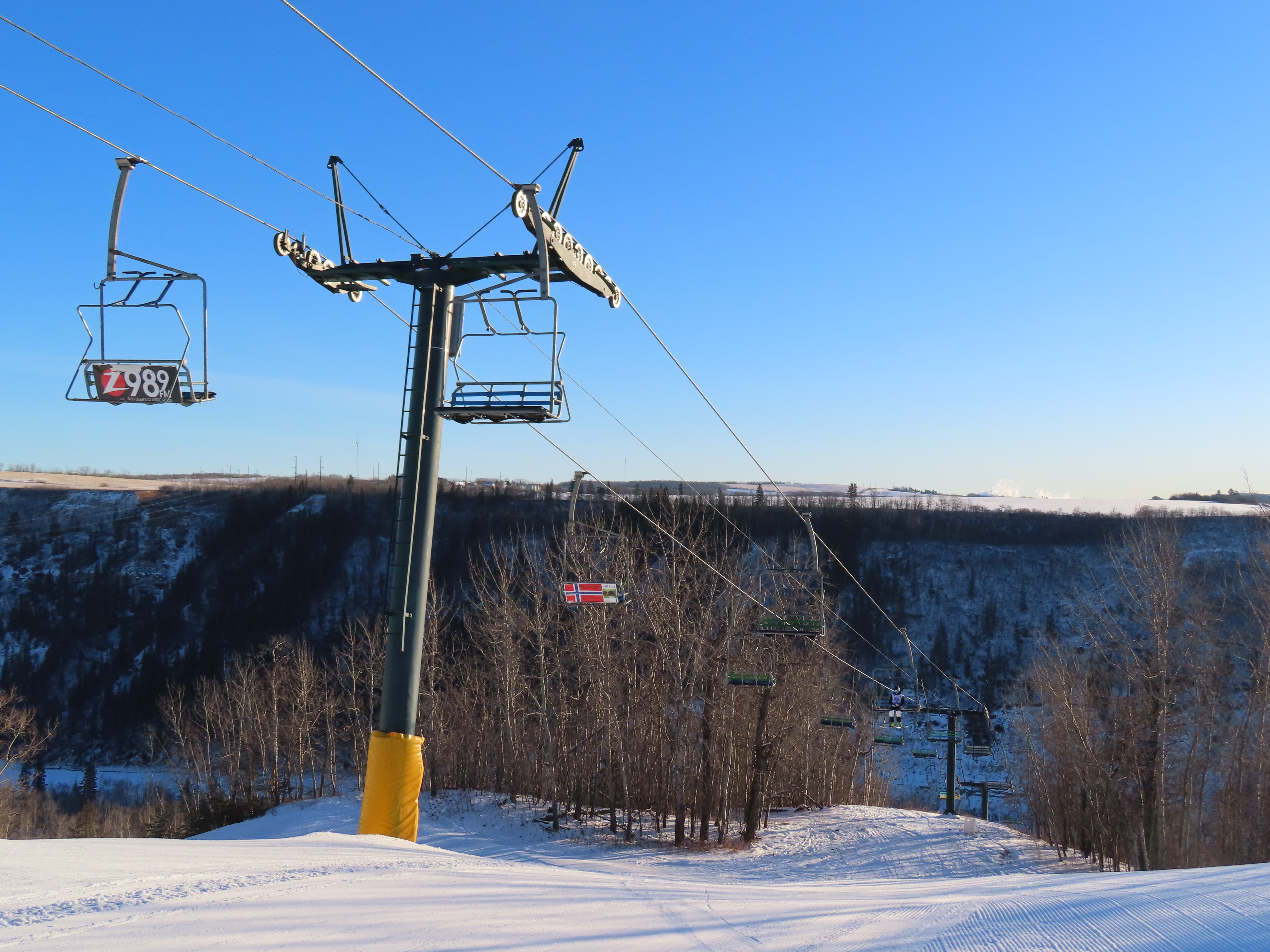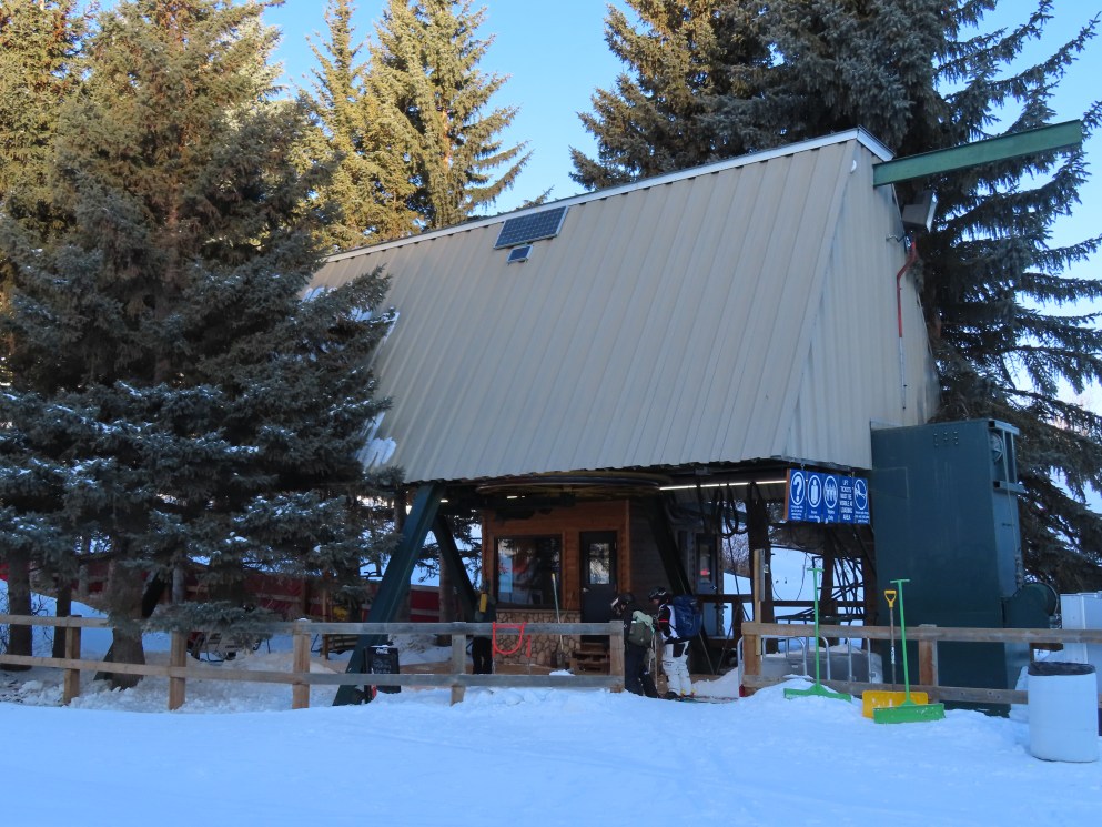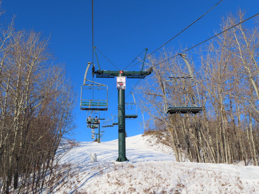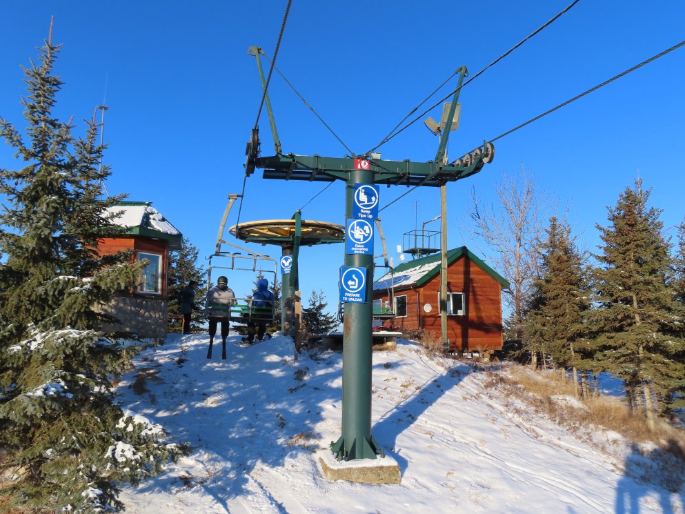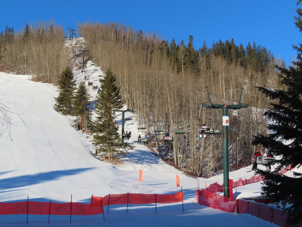 This is the main out-front-of-lodge lift at Canyon.Late model Mueller tower.Upper part of the lift line.View from the summit.Looking down the steep lift line.View up the line.Heavily forested bottom station.Steep lift line.Loading area.Tower 2.View riding up.Tower with hold down on the light side and combination on the heavy side.Tower 7.The top station.Unique combination assemby.Lift overview.
