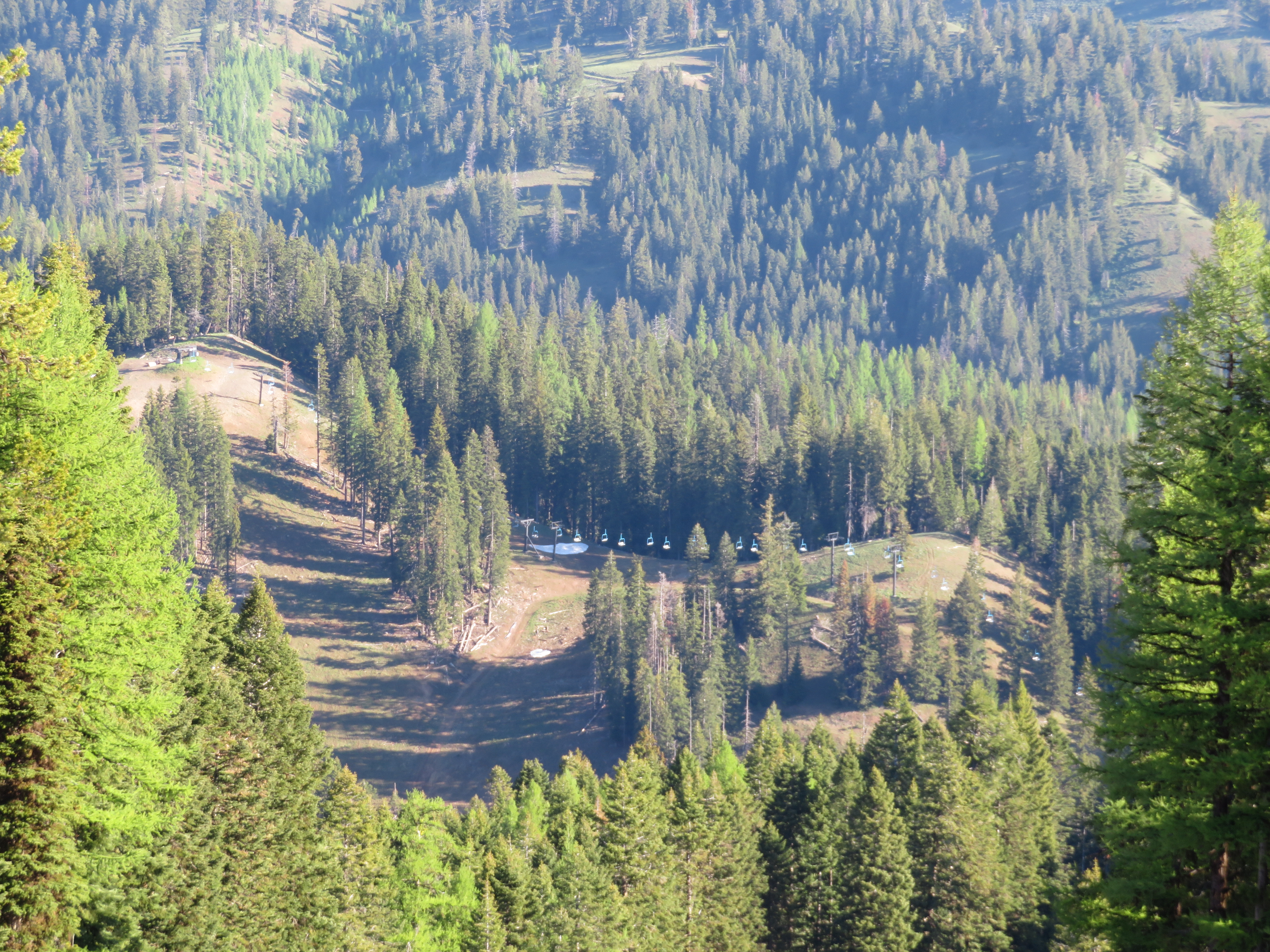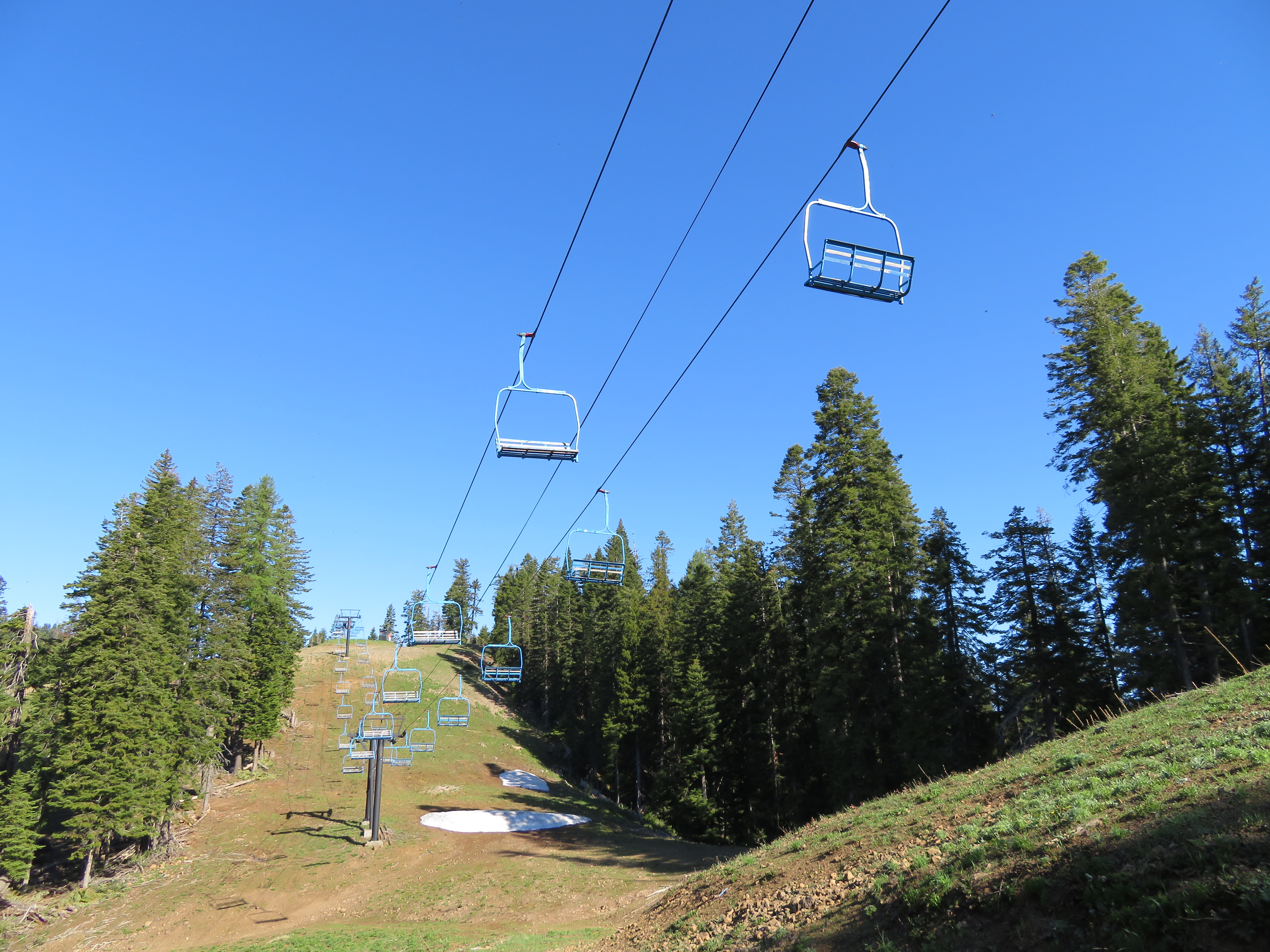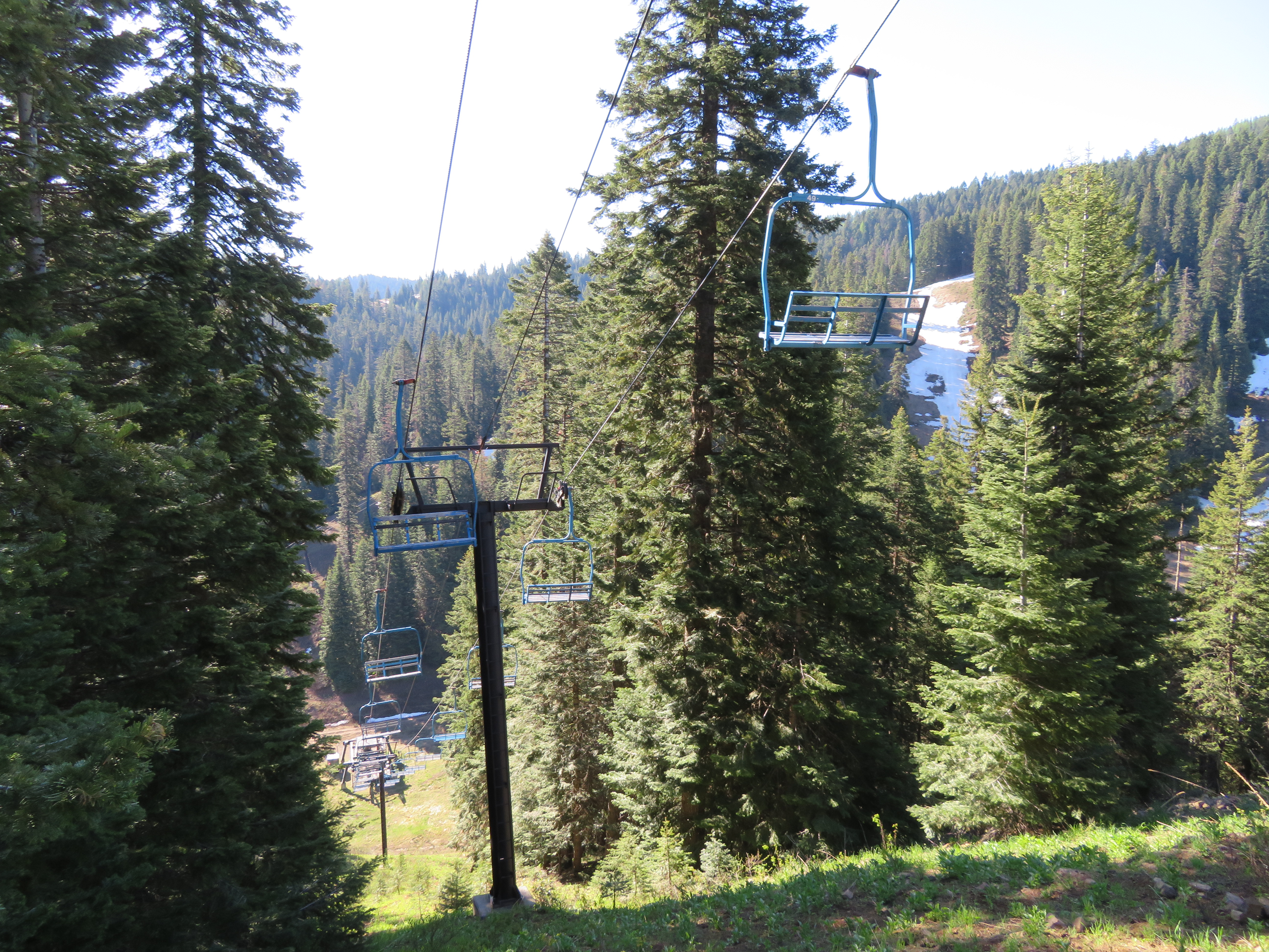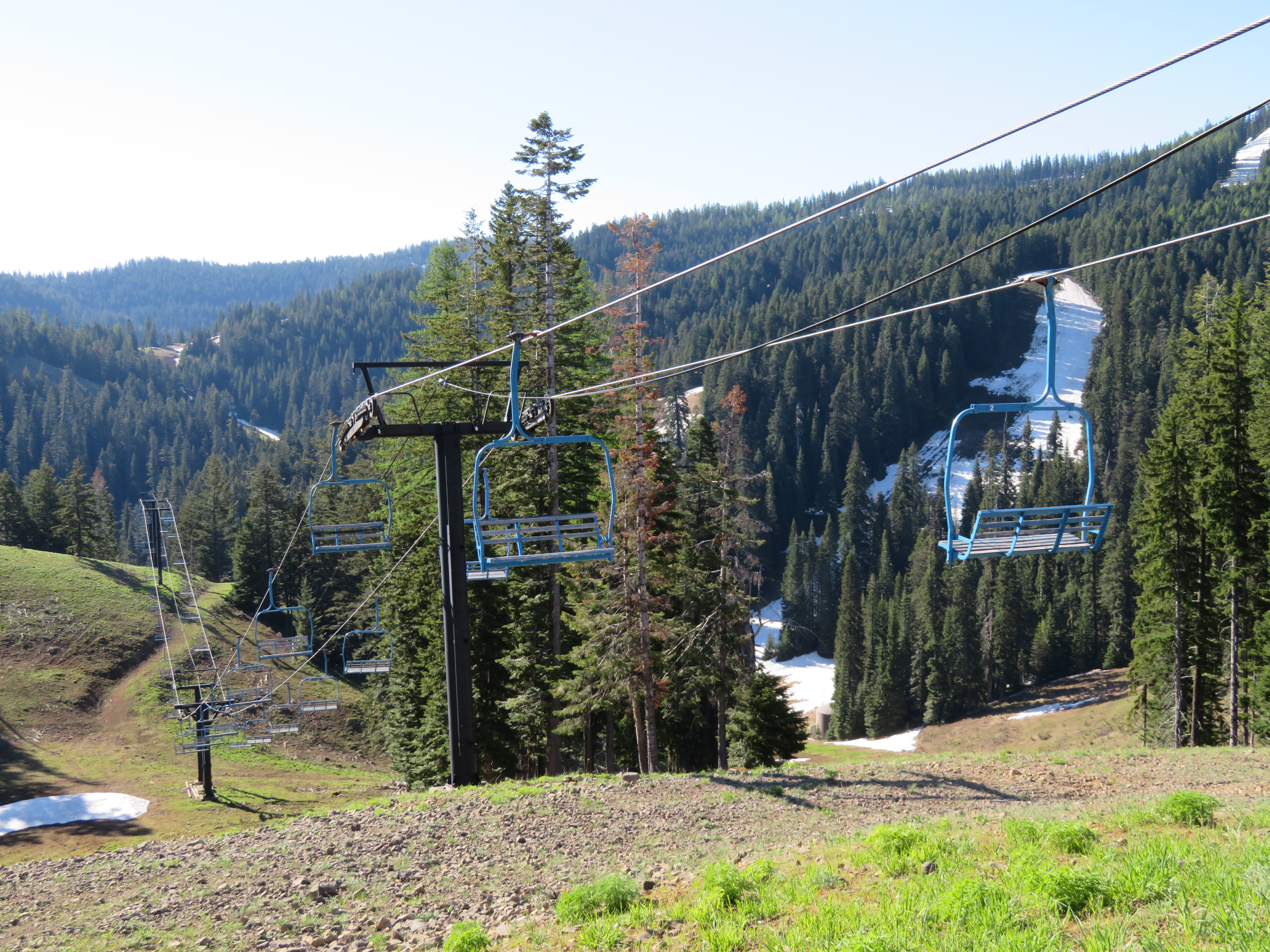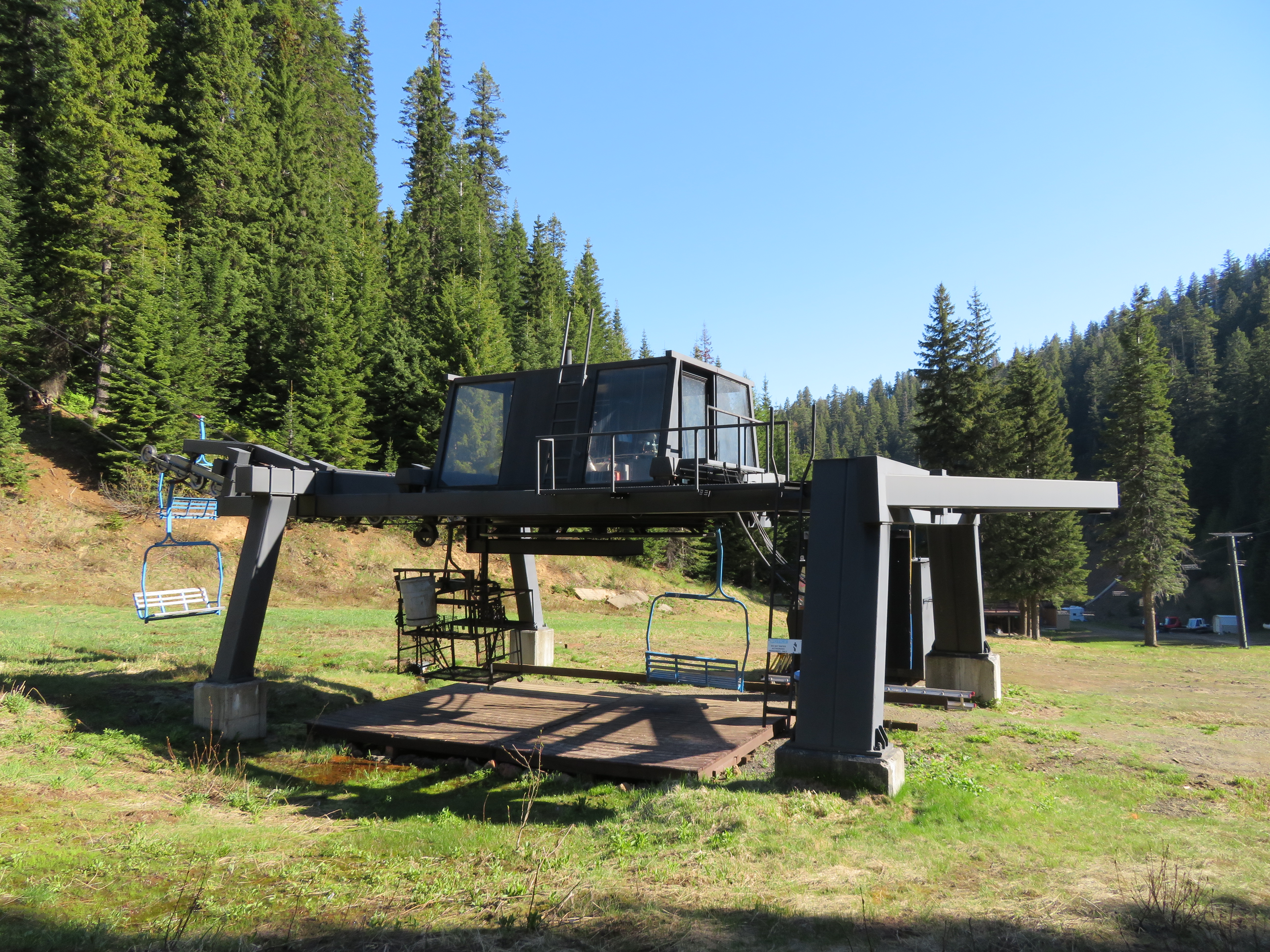 Triple nickel has a unique profile with a downhill section.Borvig top bullwheel.Top operator house.View down from the summit.Side view of the return.Middle part of the line.Upper lift line.Steep first part of the line.Standard Borvig drive-tension station.Loading area and work chair.Lift overview.Another view up the line from the base area.
