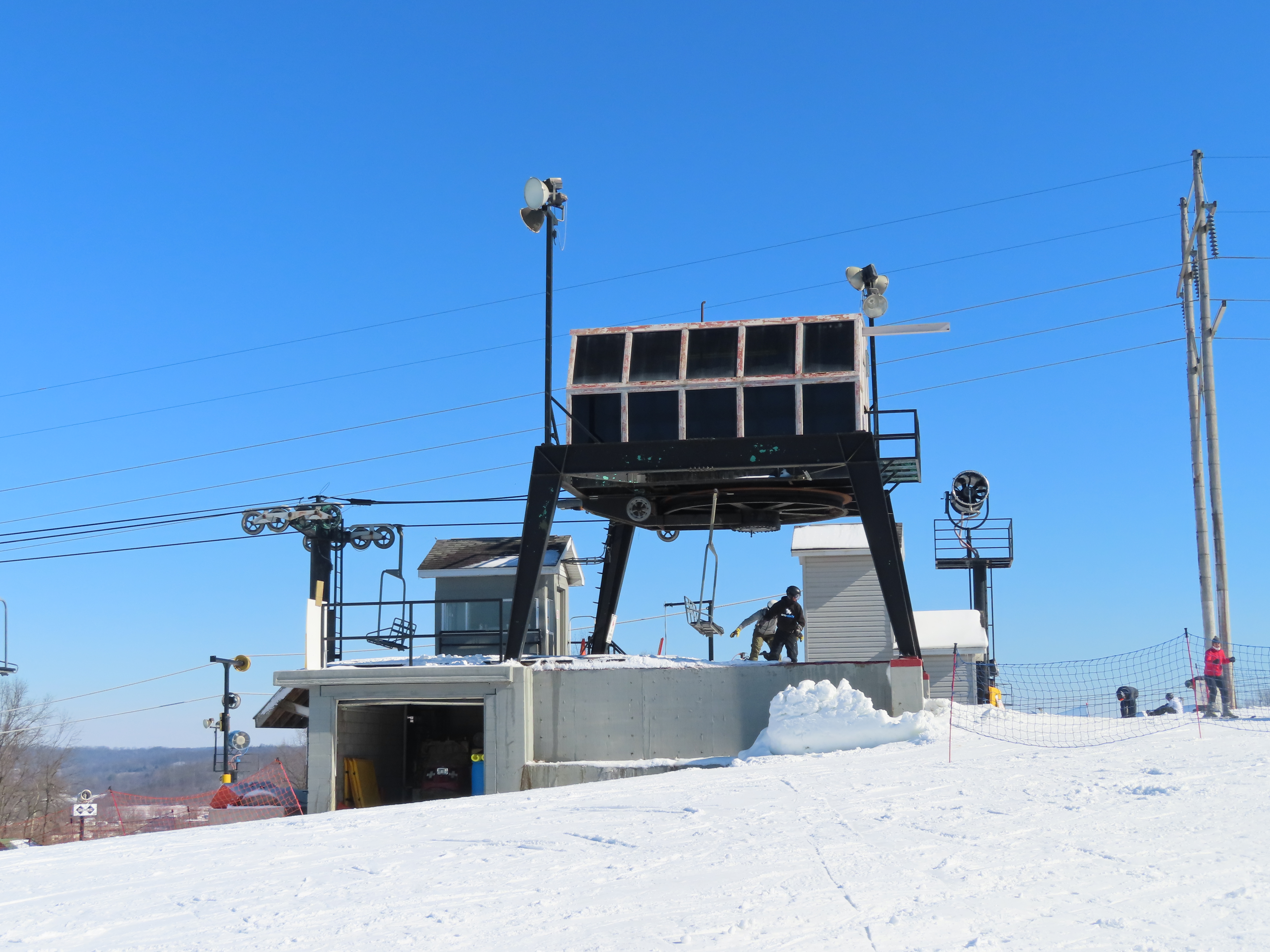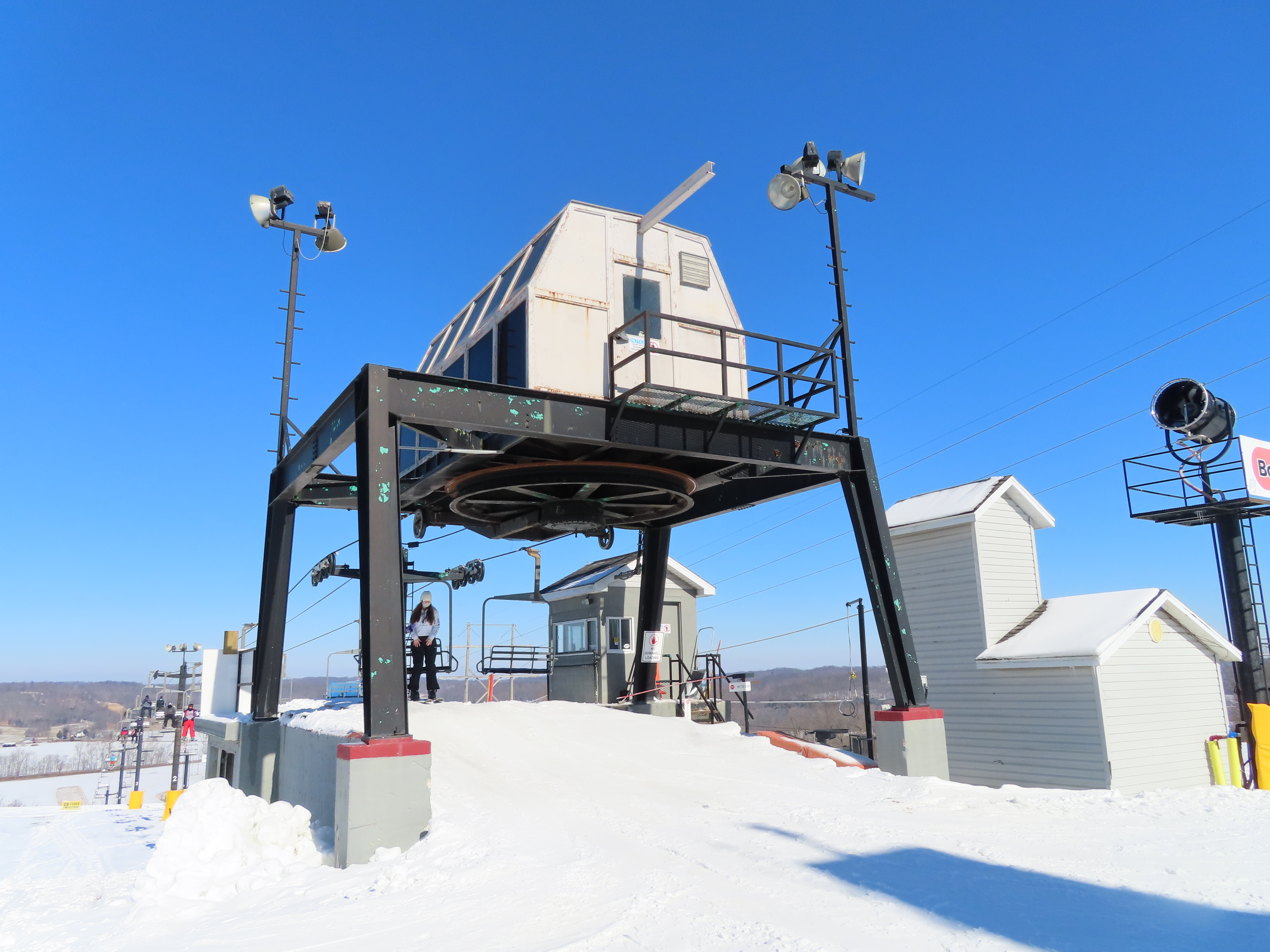 Counterweight behind the bottom terminal.Portal tower 1.Upper terminal.View down the line.Lower lift line.Note the towers count down rather than up!Side view of the top terminal.Return terminal.Loading area.