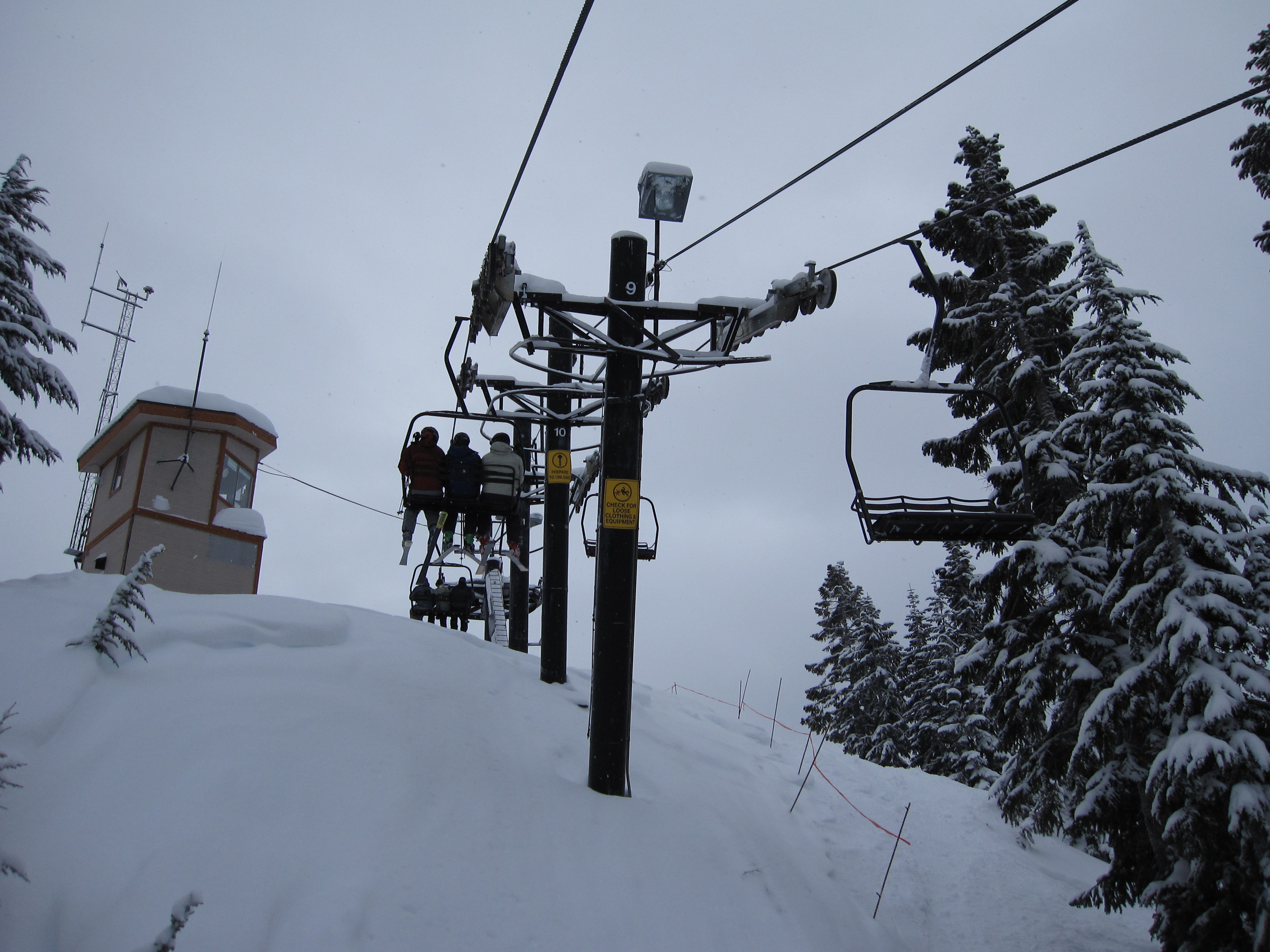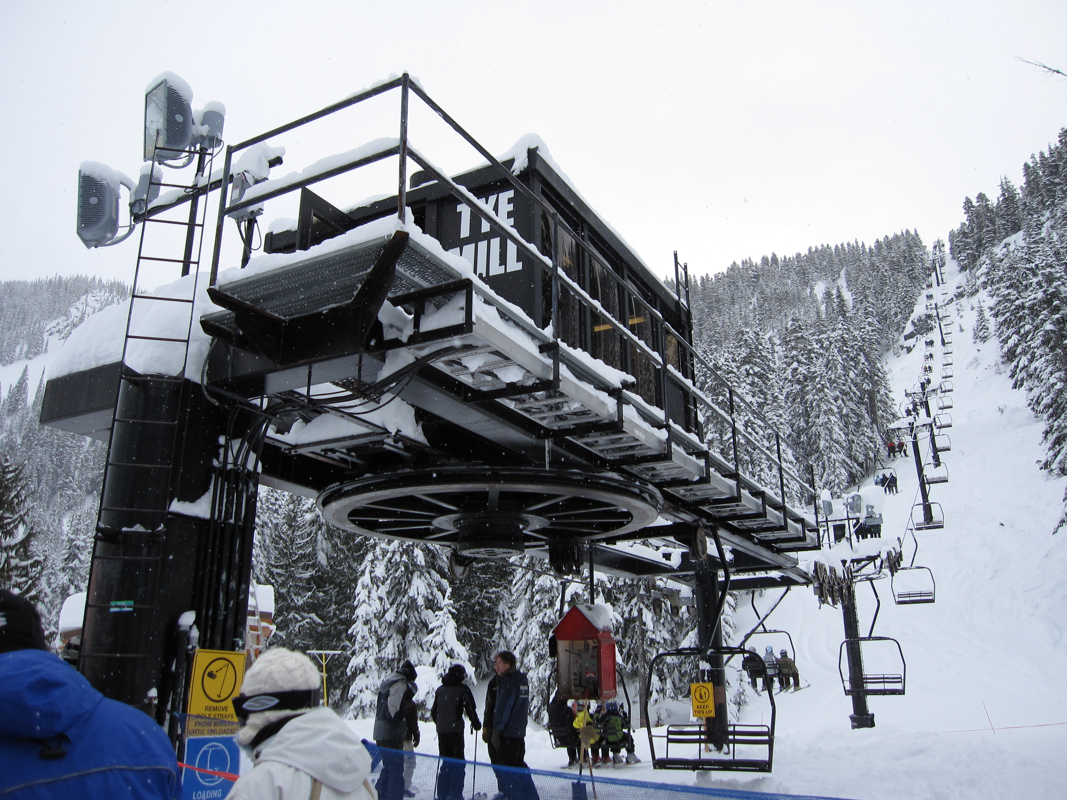The Tye Mill Double was originally Yodelin’s lower chairlift out of its base area. When Yodelin closed, the lower chair was moved from Yodelin up the road to Steven’s and installed as Tye Mill. The upper lift at Yodelin was purchased by Crystal Mt. and became the original Chair 6 at Crystal, though the Hall drive terminal is still on the hill at Yodelin.