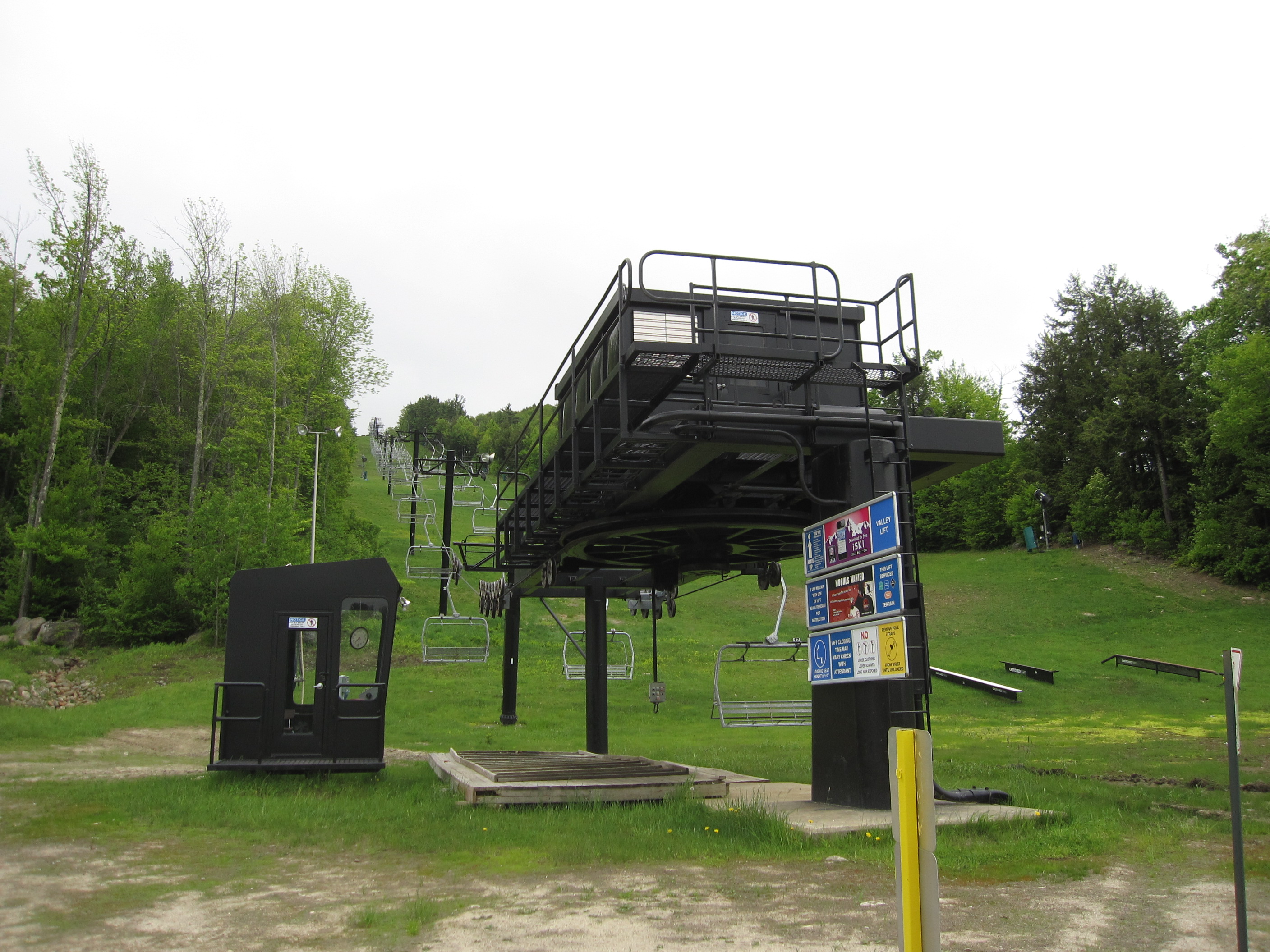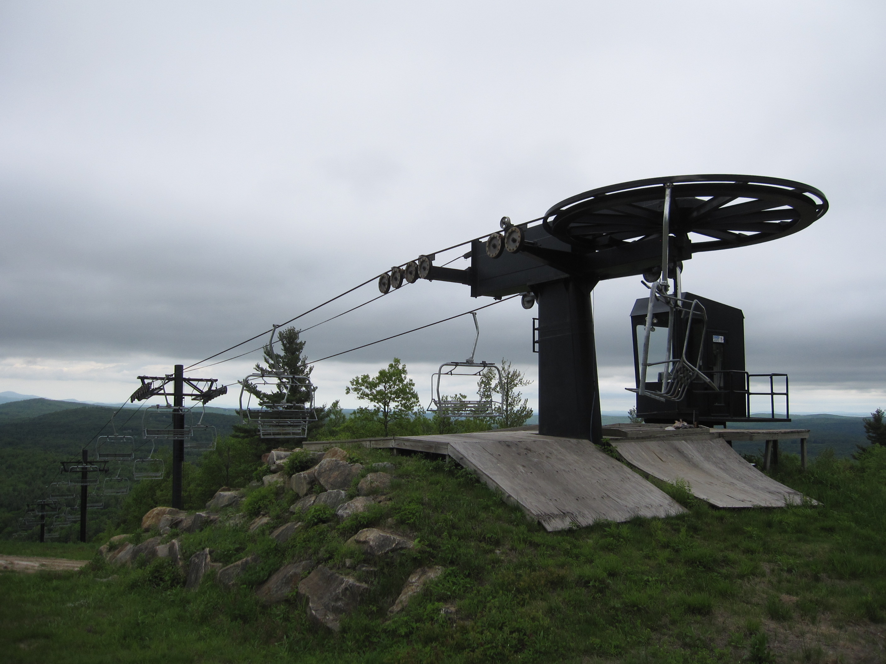 Valley – Crotched Mountain, NH Bottom drive-tension terminal and view up the line. Lift line in the summer. Bottom station and tower 1. Another view up the line. Lower lift line. Top bullwheel. Lift overview. Share this: Email a link to a friend (Opens in new window) Email Share on X (Opens in new window) X Share on Facebook (Opens in new window) Facebook Like Loading...