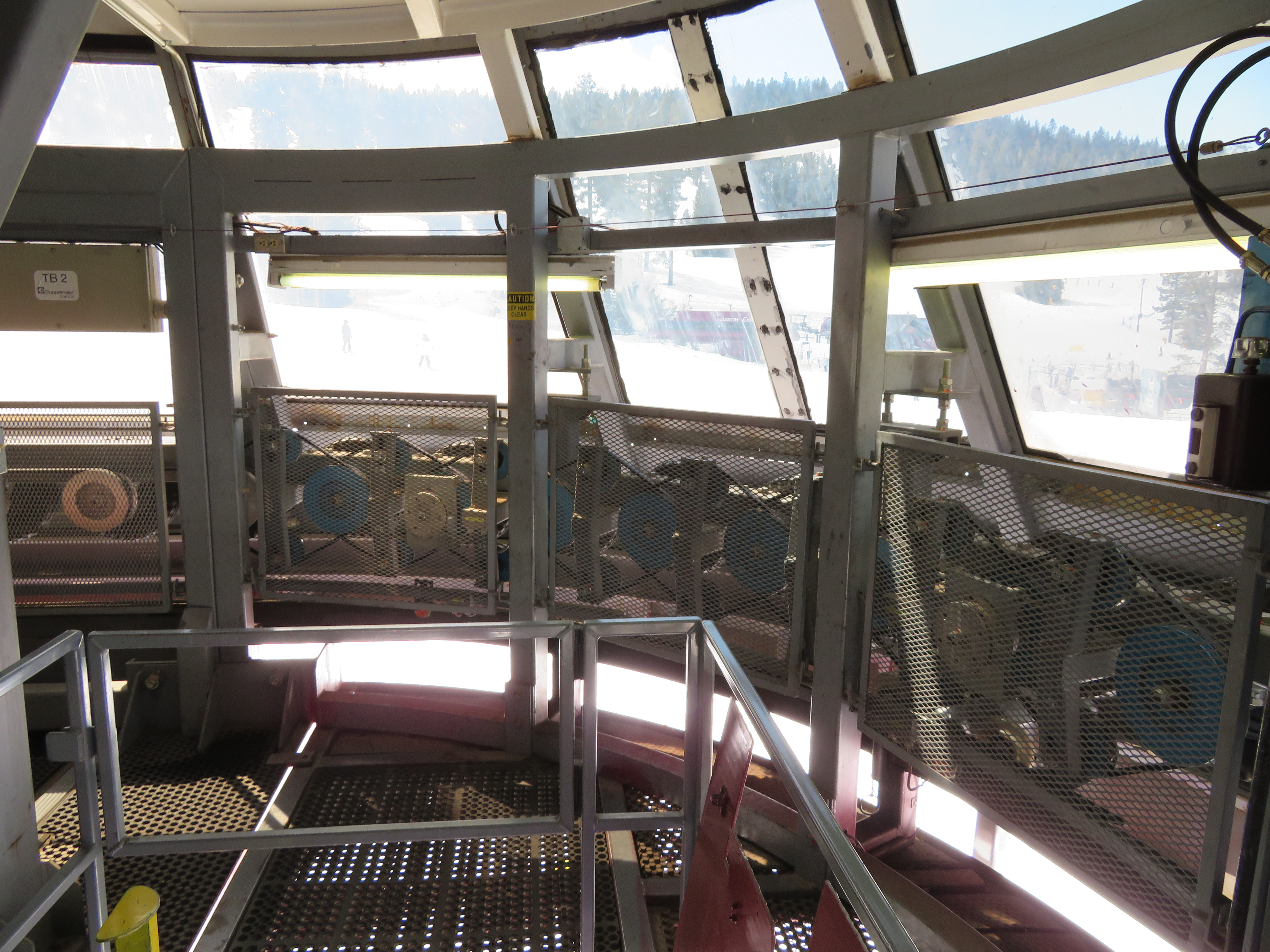 A bad day at Vista in 2006.Bottom drive.Loading area and turnaround.Leaving the base area.Riding up the line.Unload ramp up top.View down the lift line.Upper part of the line.Return terminal side view.Drive side view.Another look at the top station.Electric motor.Height-adjustable tower 1.Doppelmayr-Lohmann gearbox.Turnaround tires.Ram for lowering and raising the terminal.Doppelmayr Worldbook entry.