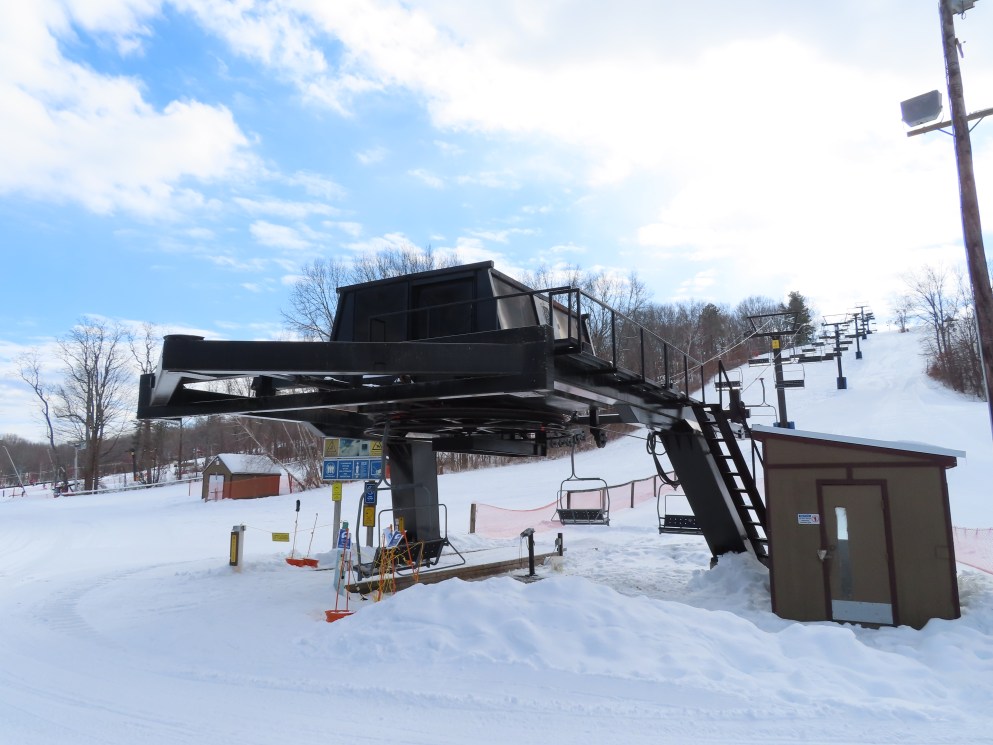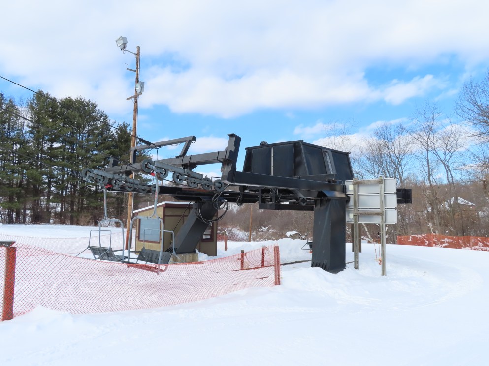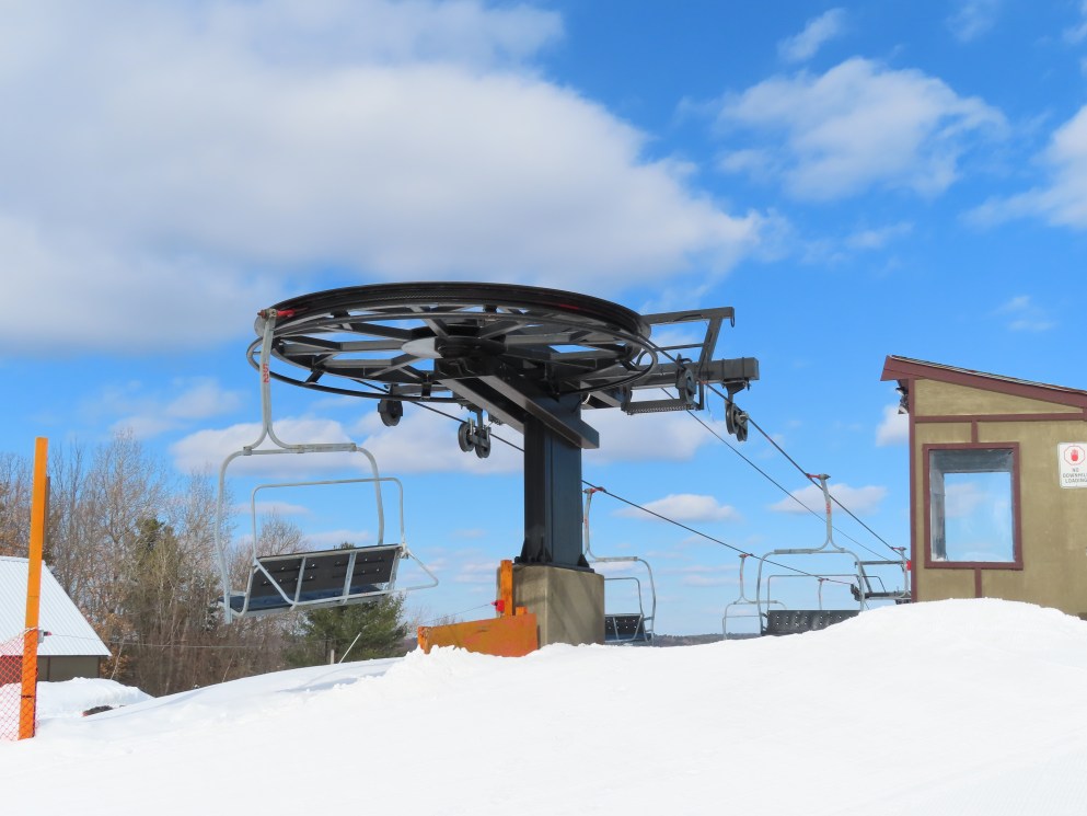 Wasp – Ski Bradford, MA This lift services the west side of the mountain. Side view of the top terminal. View down the lift line. The first two towers. The drive terminal. Loading area. Borvig drive station. Share this: Email a link to a friend (Opens in new window) Email Share on X (Opens in new window) X Share on Facebook (Opens in new window) Facebook Like Loading...