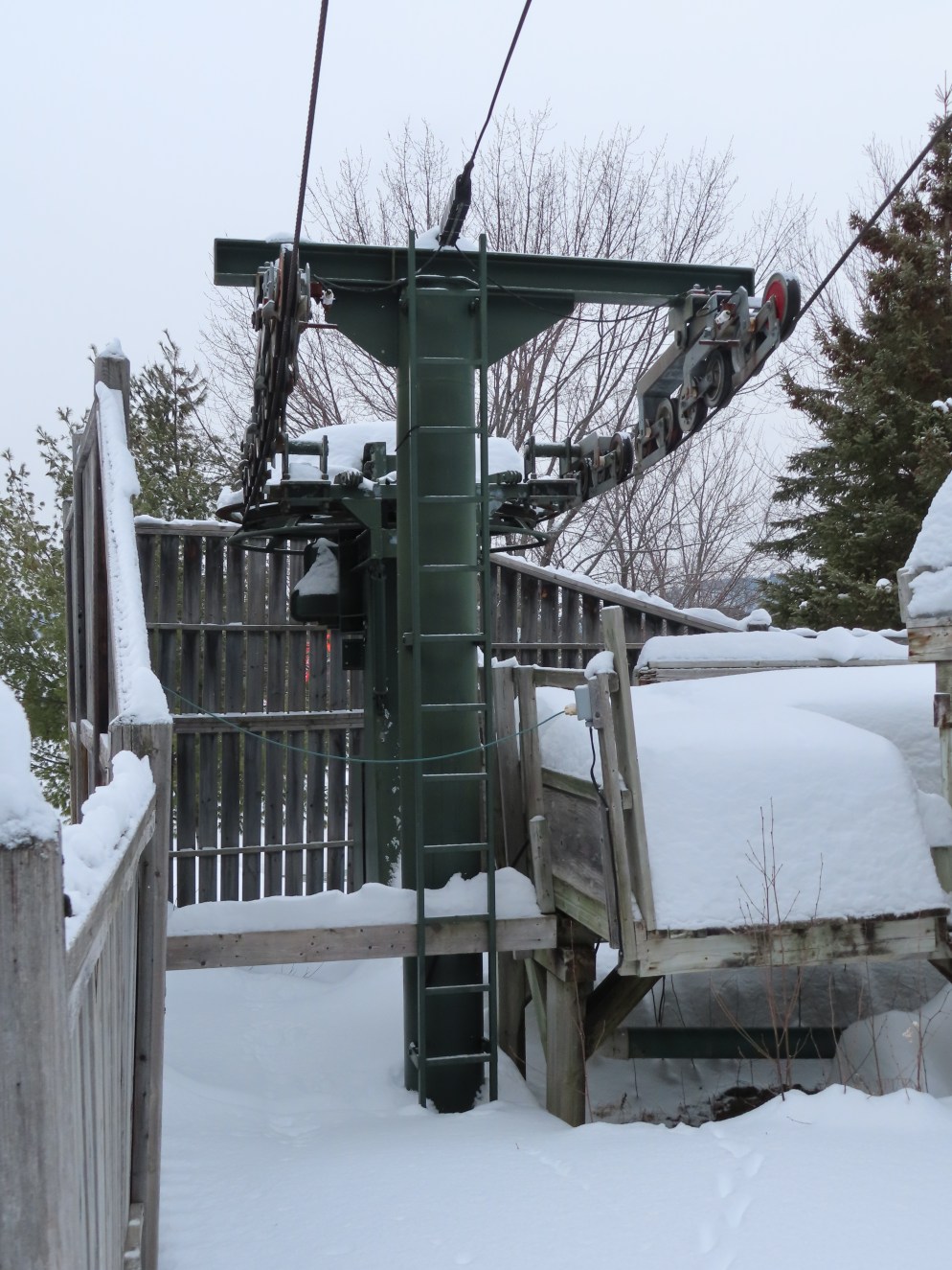 This unique lift operates in summer to bring tubes to the top of water rides.