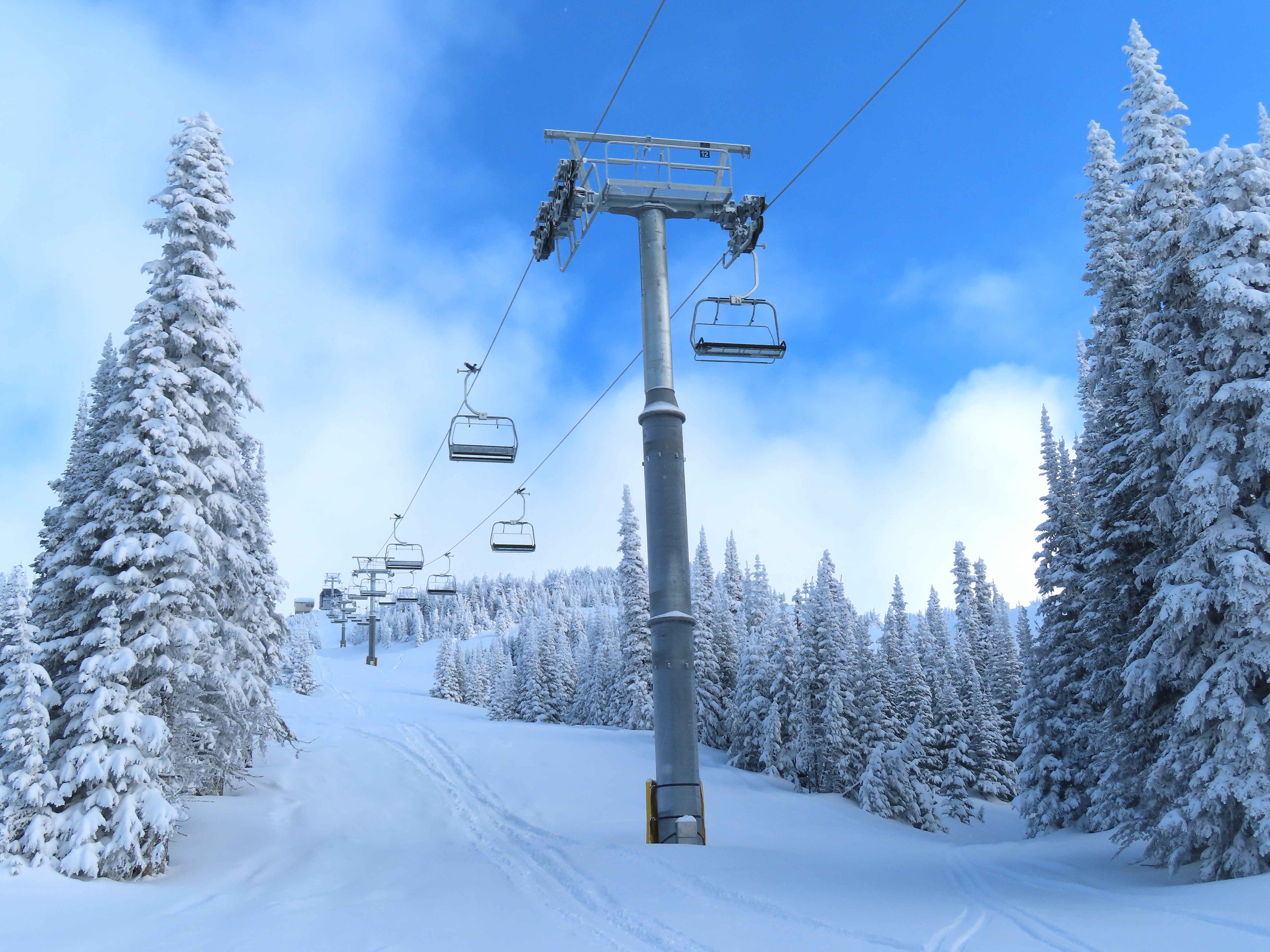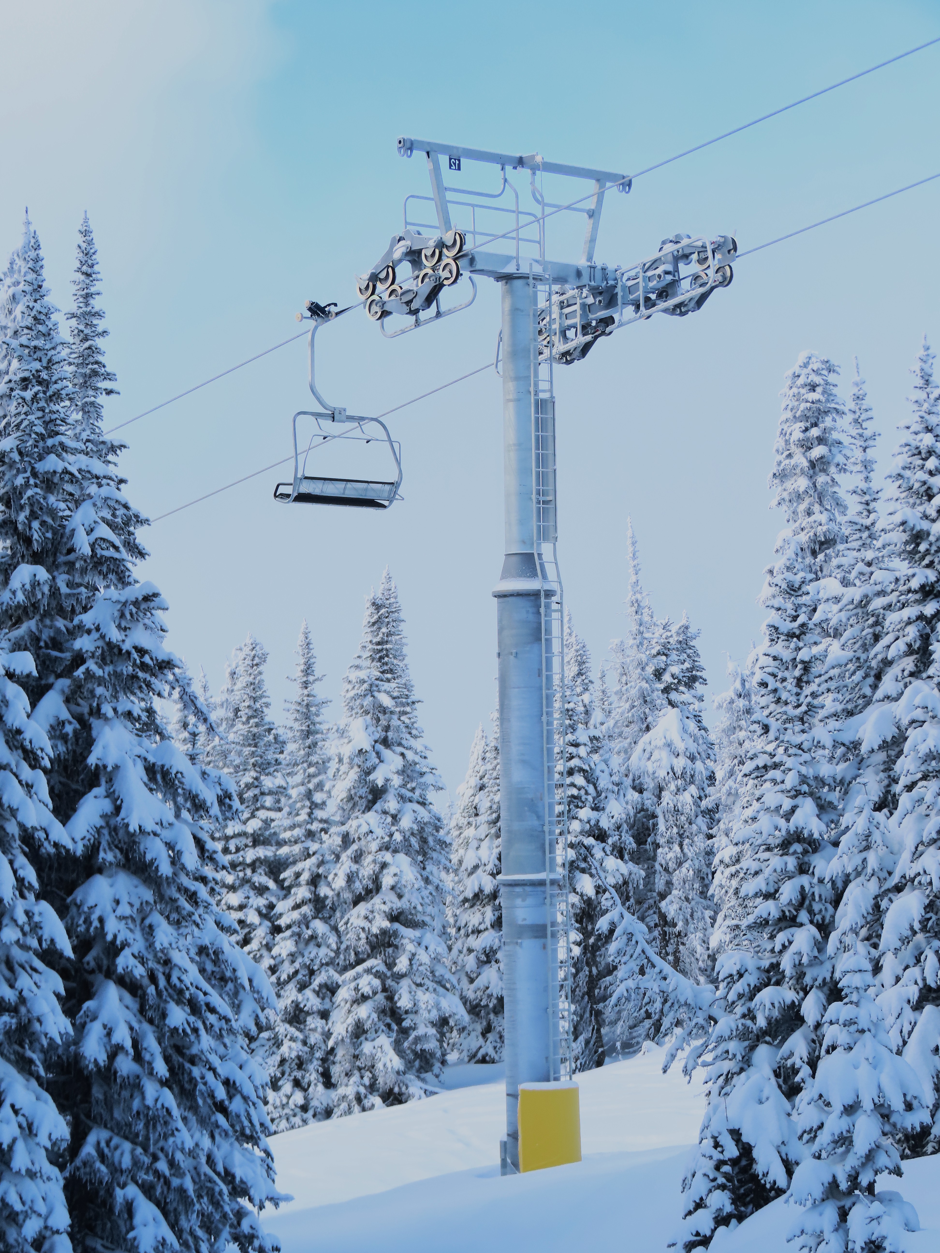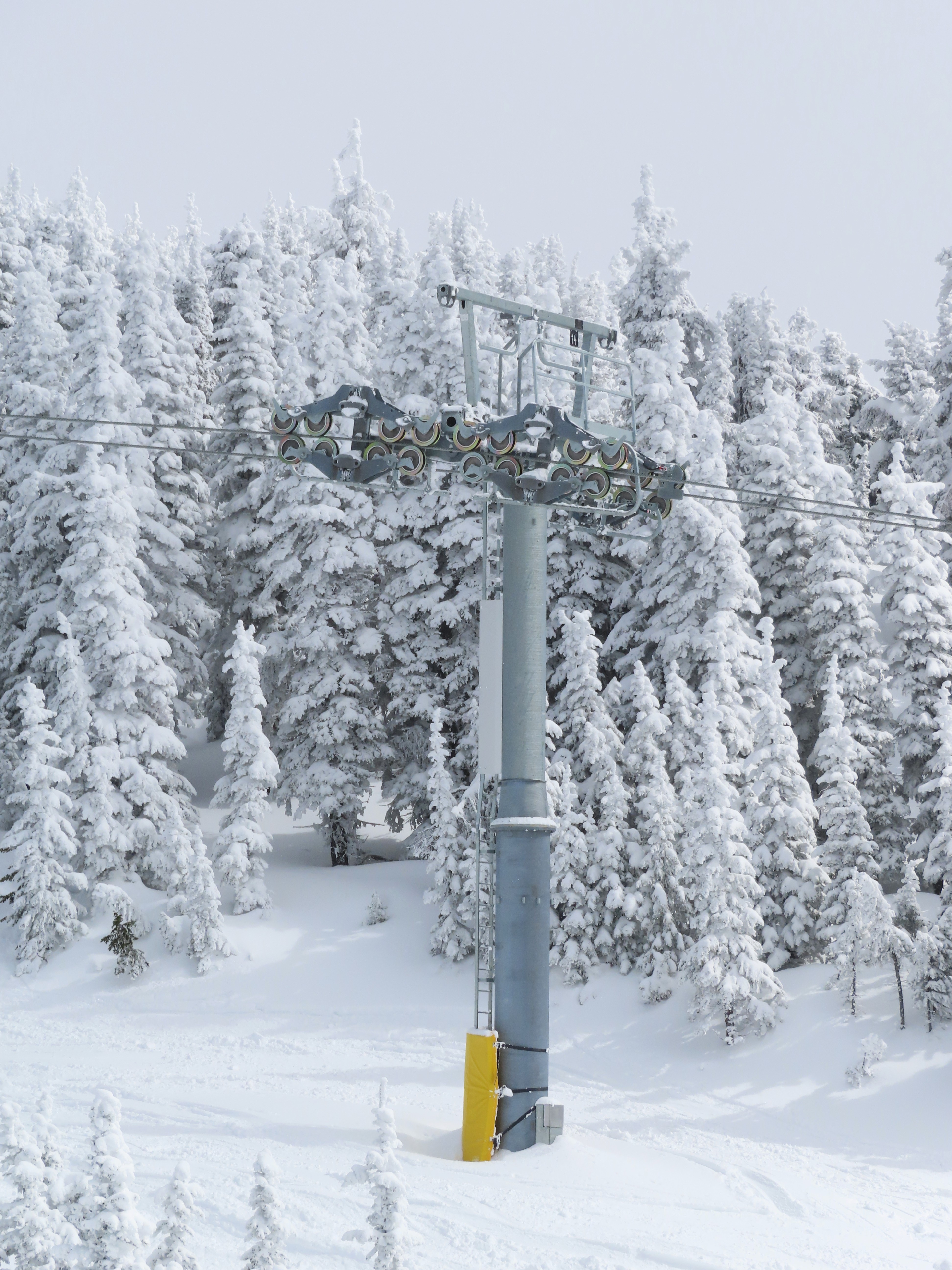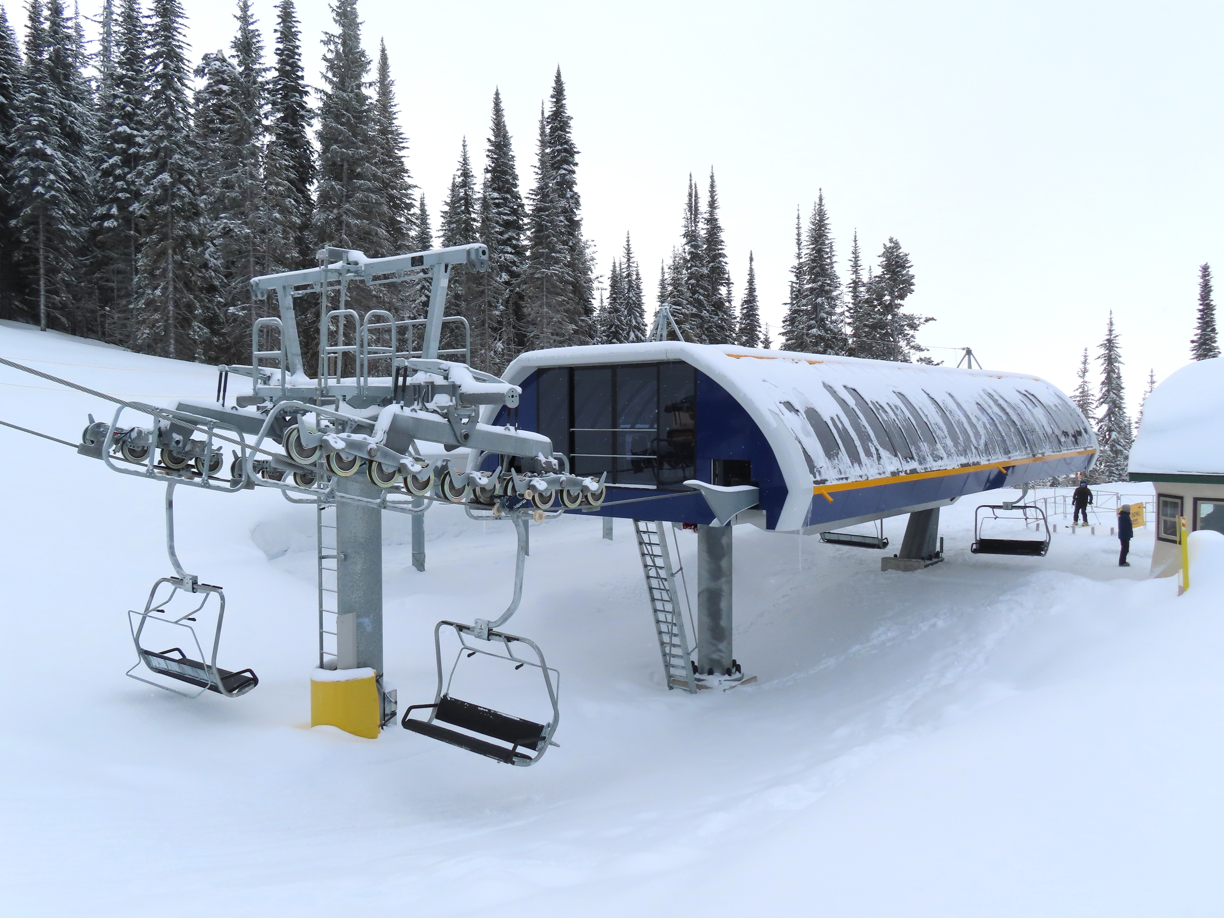Sun Peaks replaced a rarely-used T-Bar with this high speed quad in 2024. The new lift starts much lower and ends higher, running daily.Due to the profile, numerous towers feature combination assemblies on both sides.The upper part of the line.View down at tower 9.View down the line at tower 7, below where the old T-Bar ran.View up at tower 6.Tower 5.Tower 1, one of two with European style tower heads on this lift.Parking rail for all 81 chairs.This lift needs parking due to its exposure and high elevation near the tree line.UNI-G station with Sun Peaks logo colours.Riding toward tower 1.Middle section of the line.Tower 10.European and American style tower heads next to each other.View down at tower 14.Tower 13.The top station seen from below.This is the ninth Doppelmayr quad chair built at Sun Peaks, an all-Doppelmayr mountain.Upper lift line.Lift line near the old T-Bar line.Looking down the steepest part of a not very steep lift.Middle part of the line.Return station overview.Tower 1.Looking back down the lower line, new terrain below the old T-Bar.Riding toward the summit.View back down from the top.Large 16 sheave assembly.Upper few towers.Loading area.Doppelmayr Connect controls.Tower 14.Arriving at the summit.Unloading area.Side view of the drive station.The old T-Bar ran on diesel but this lift’s drive station has grid power.View from the top breakover.Another view of the high alpine summit.