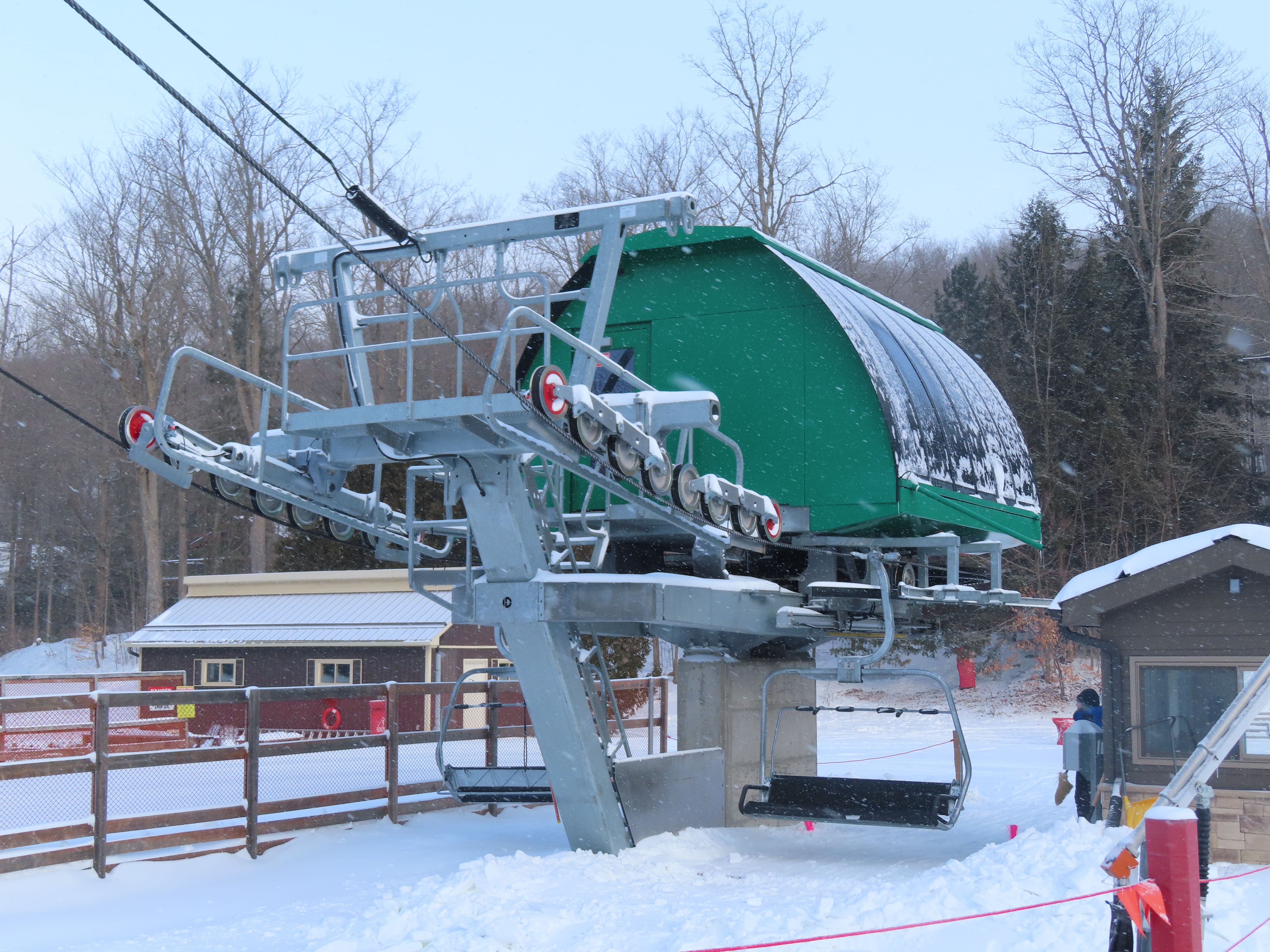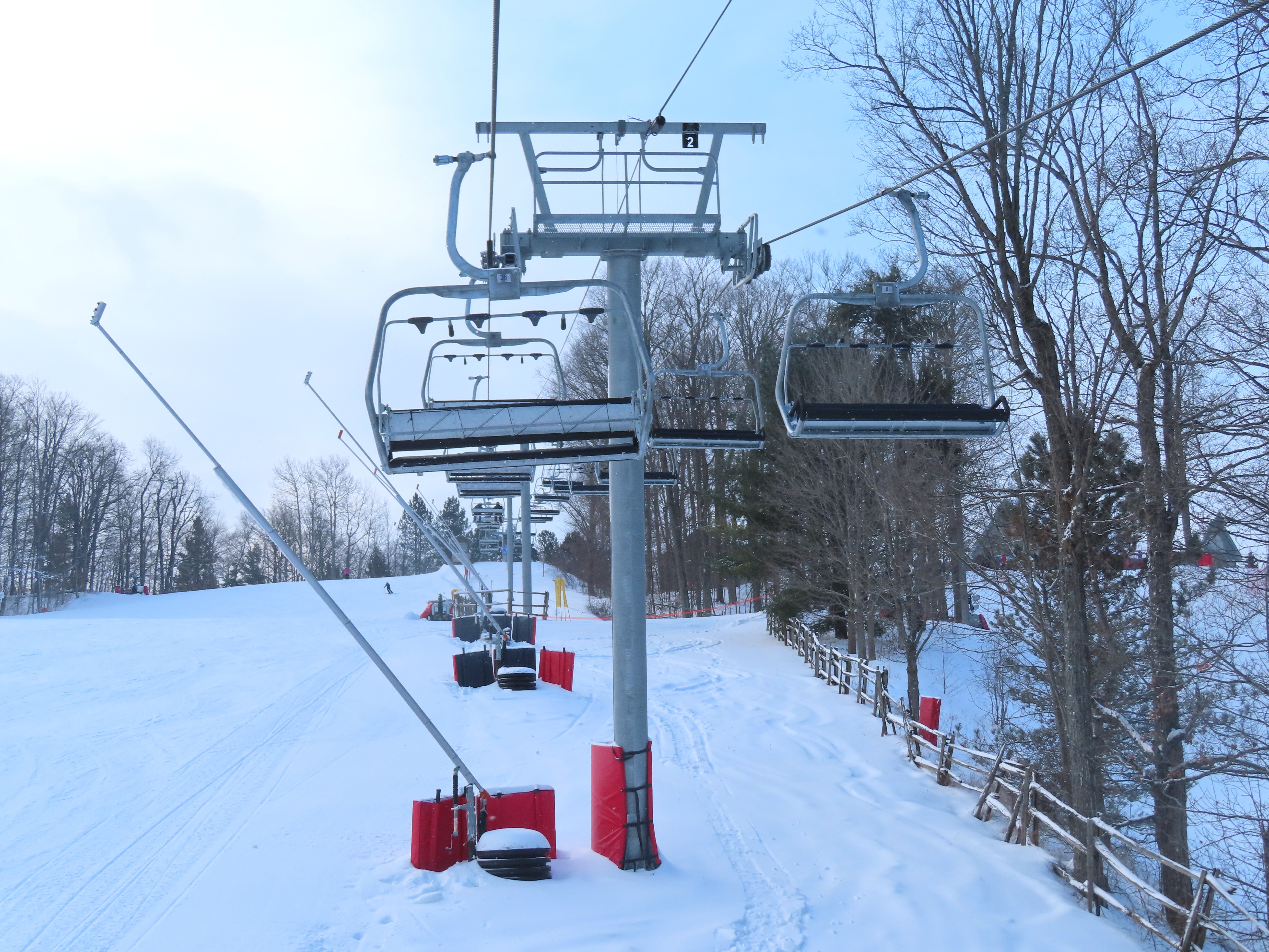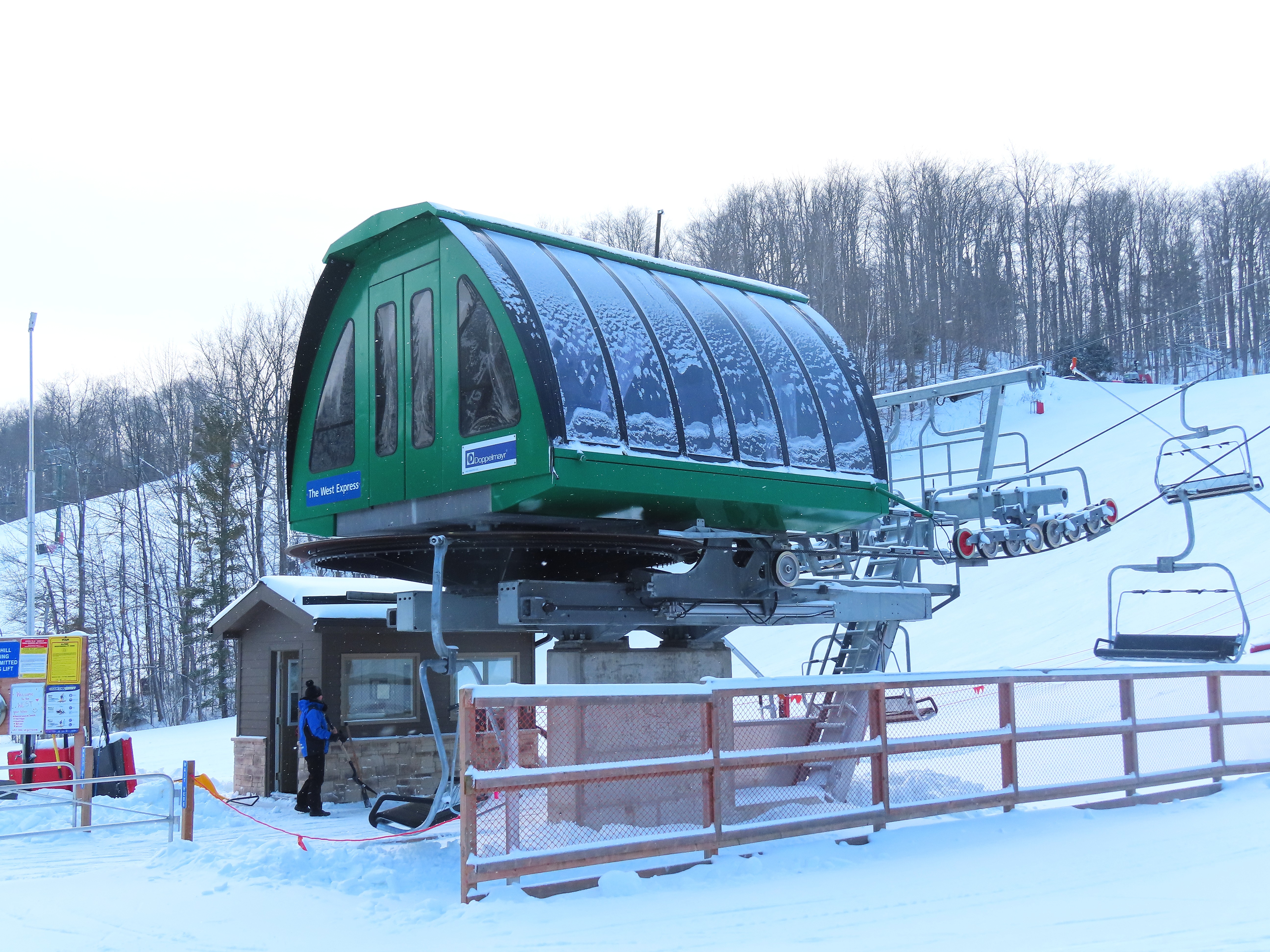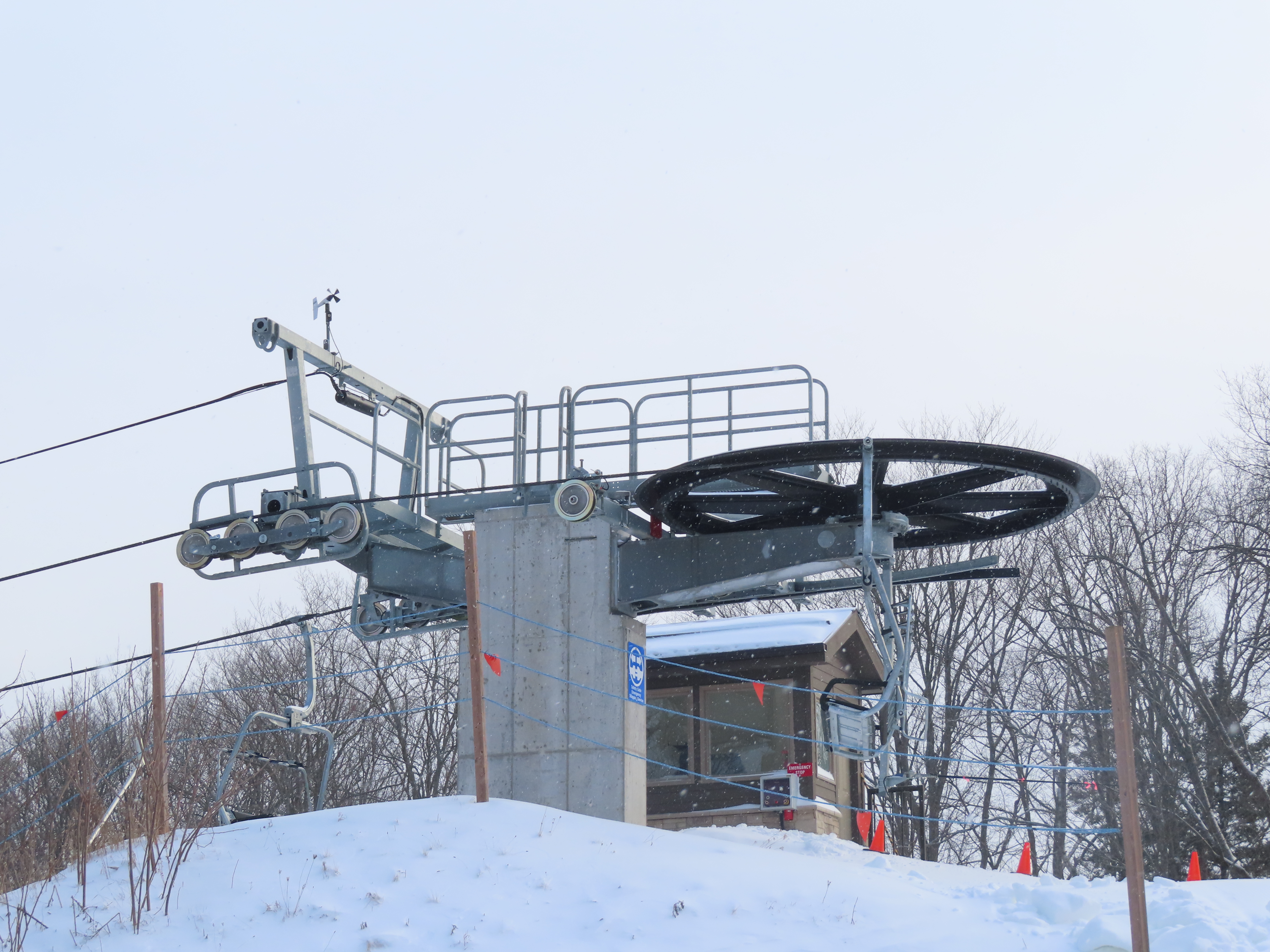 This short quad chair services slopes near the West Lodge.Alpenstar base terminal.View down the line.Lift overview.Drive station with hydraulic tensioning.View riding up the line at tower 2.Arriving at the summit.Unloading area.View down from the summit.Fixed return up top.