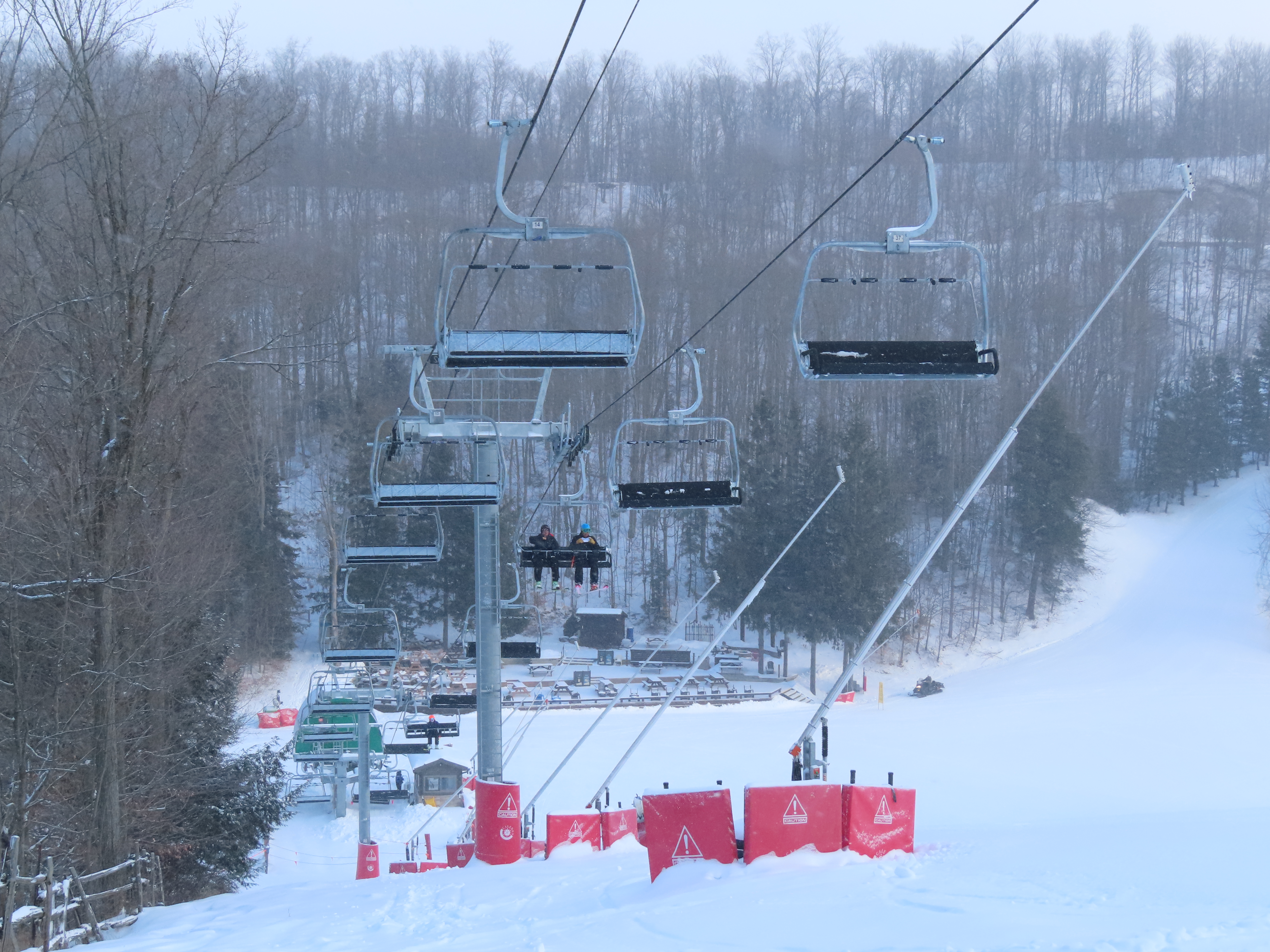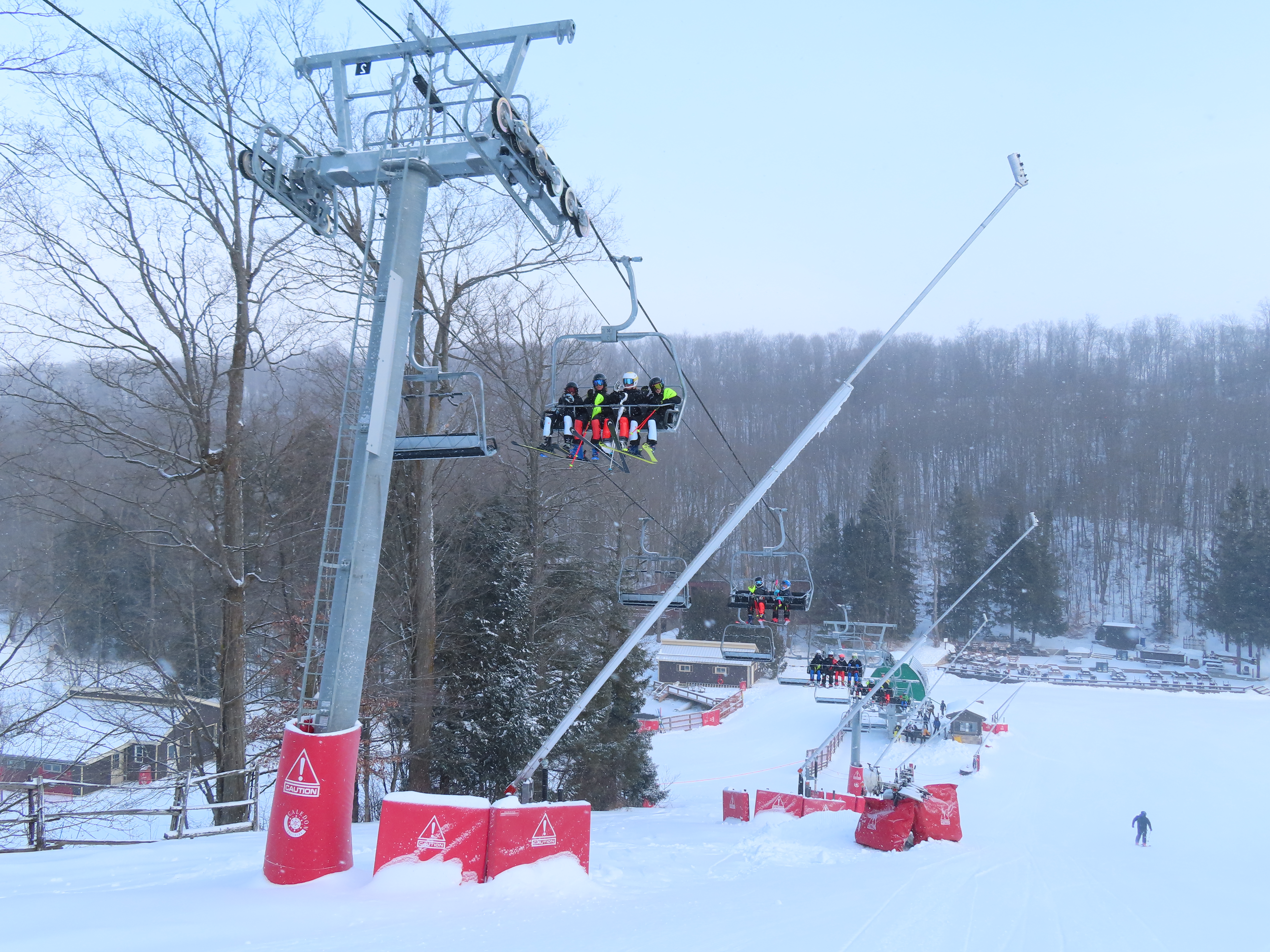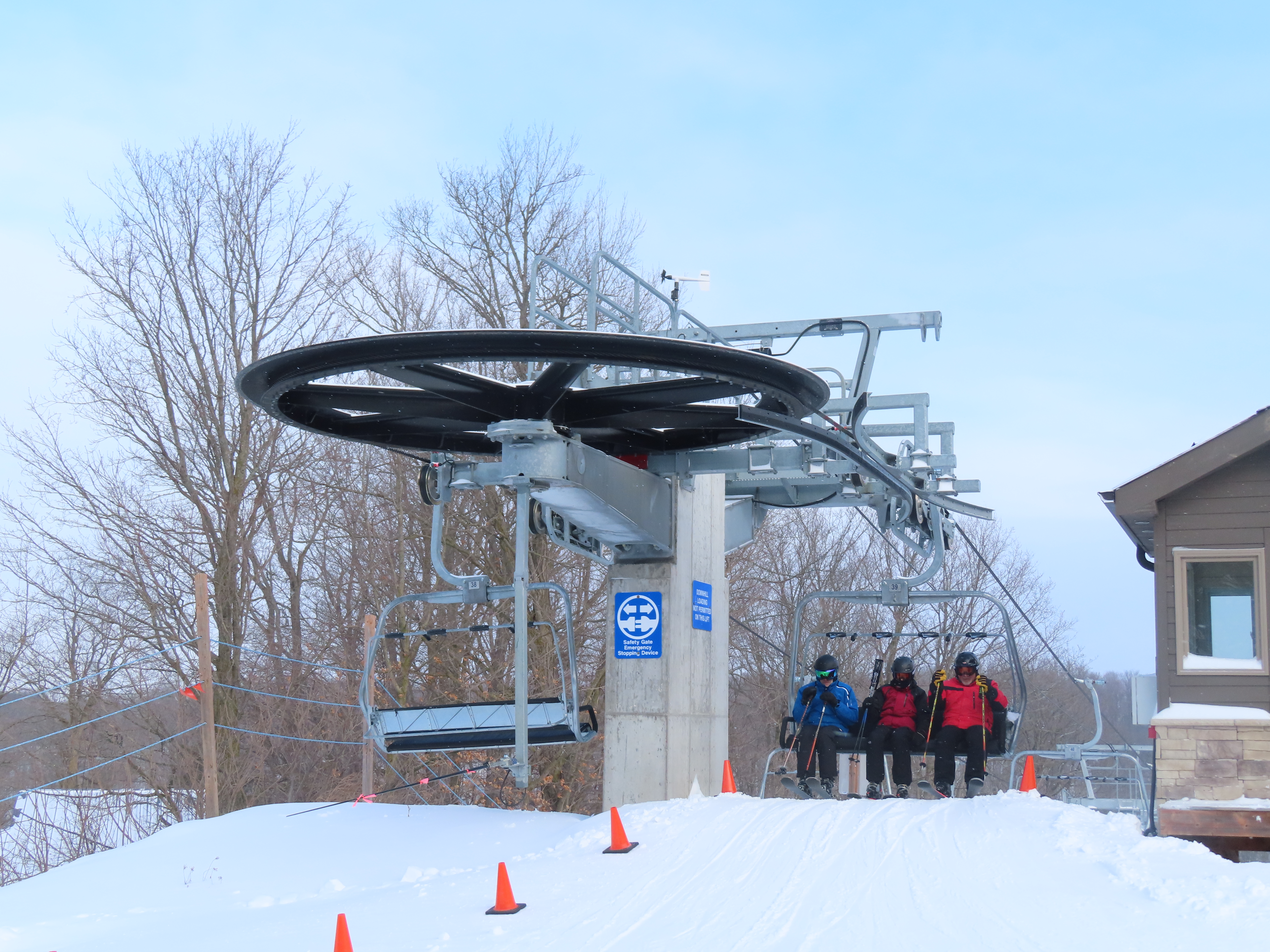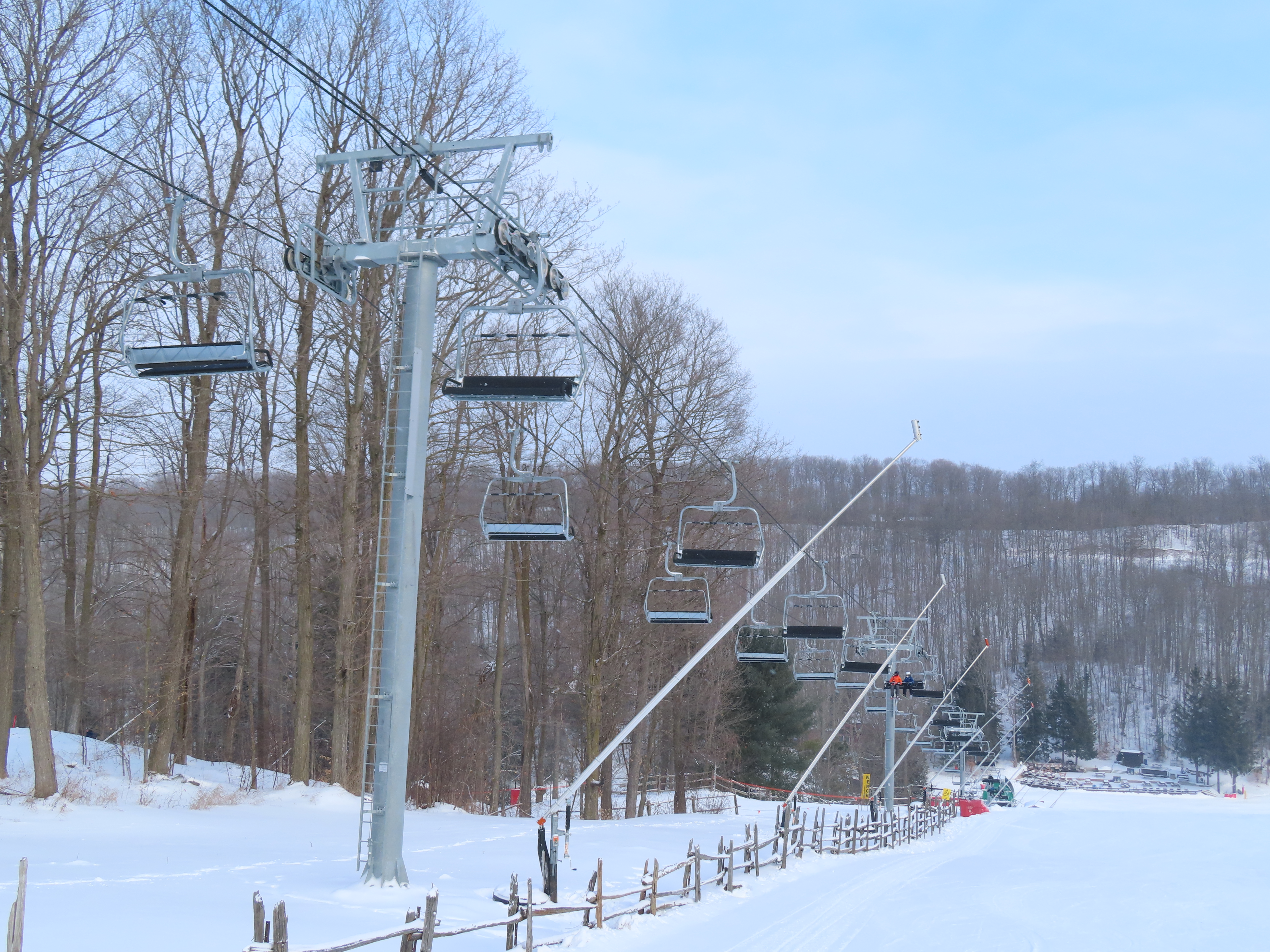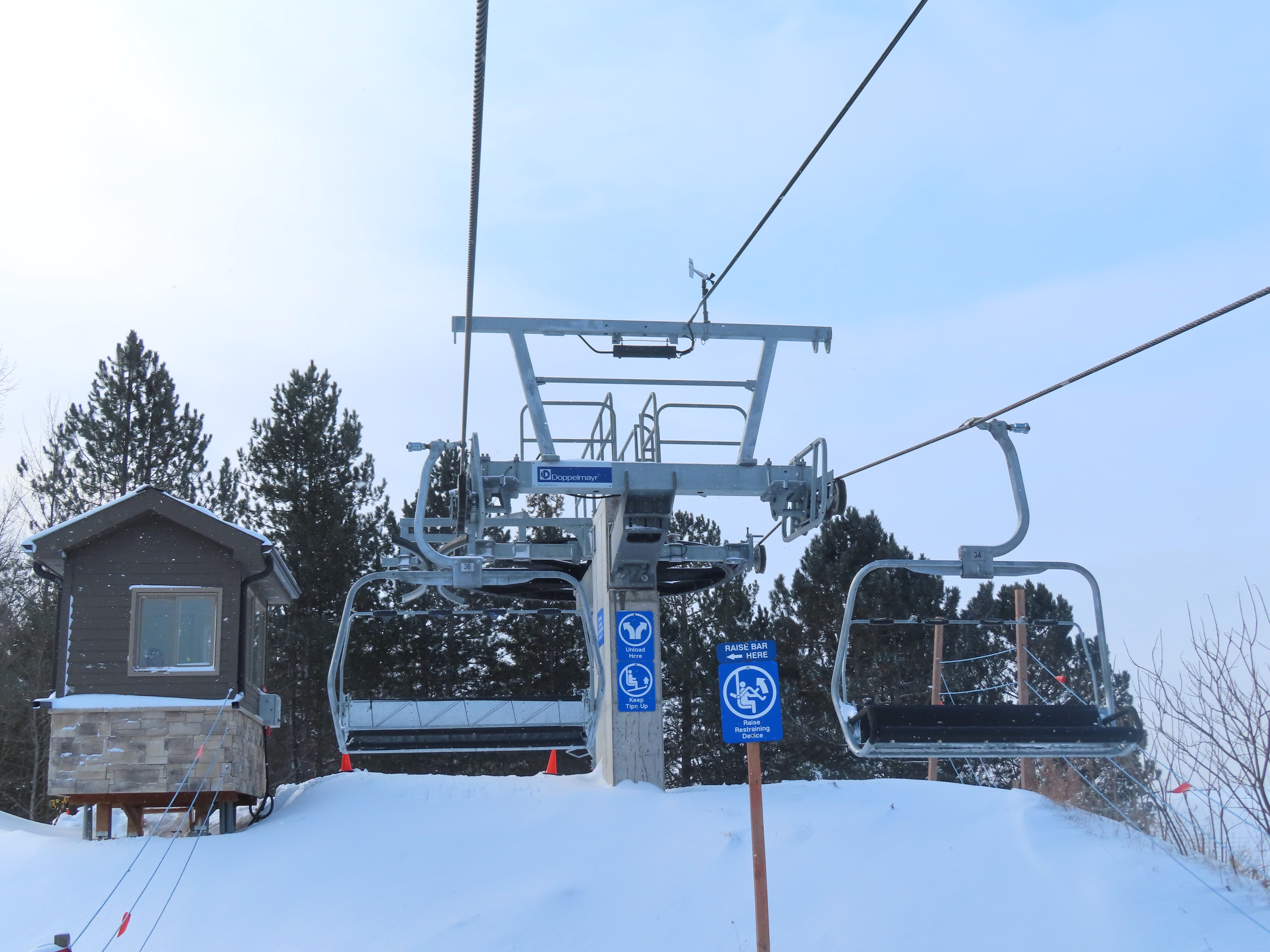 This short quad chair services slopes near the West Lodge.Alpenstar base terminal.View down the line.Lift overview.Drive station with hydraulic tensioning.View riding up the line at tower 2.Arriving at the summit.Unloading area.View down from the summit.Fixed return up top.