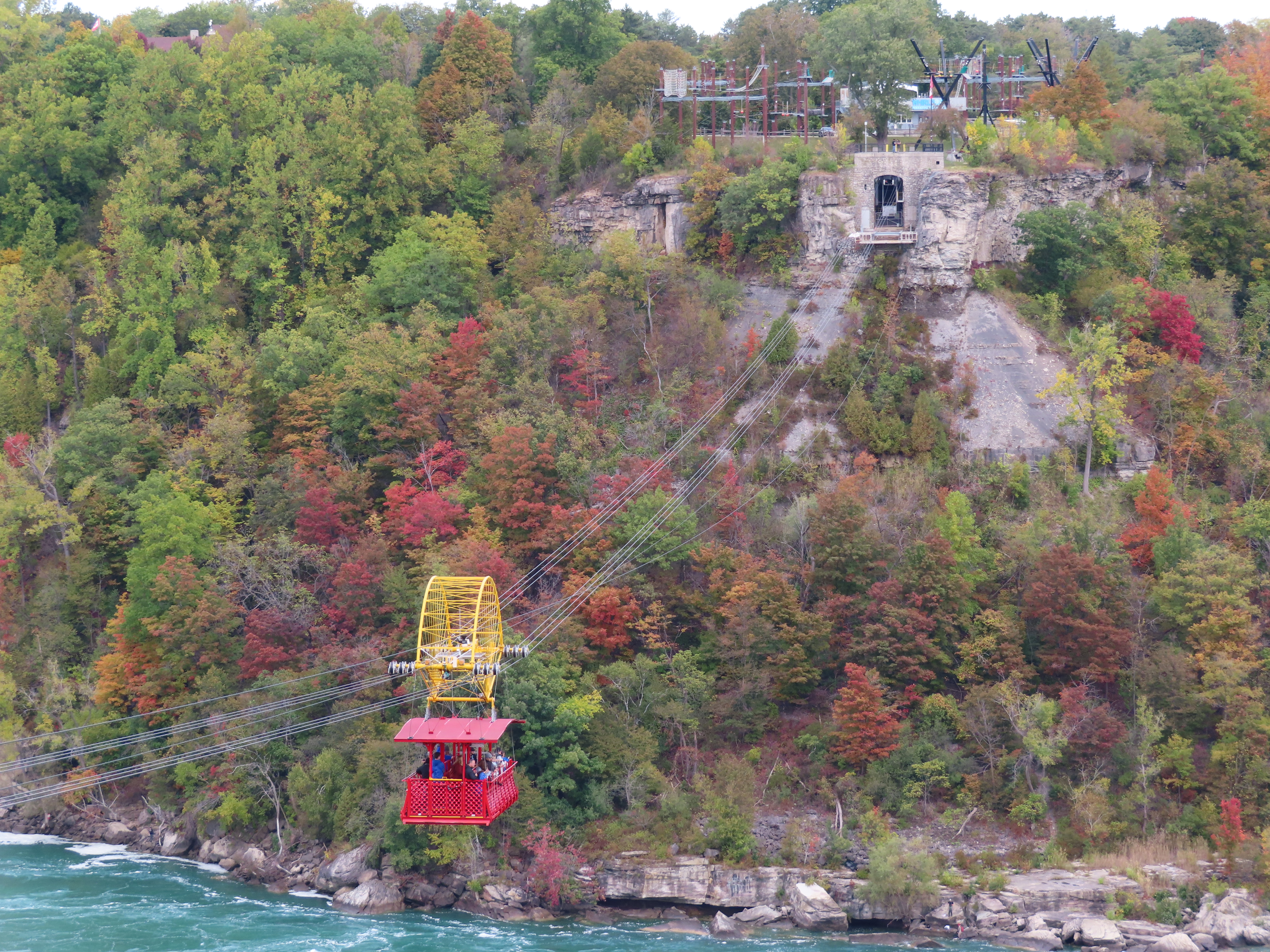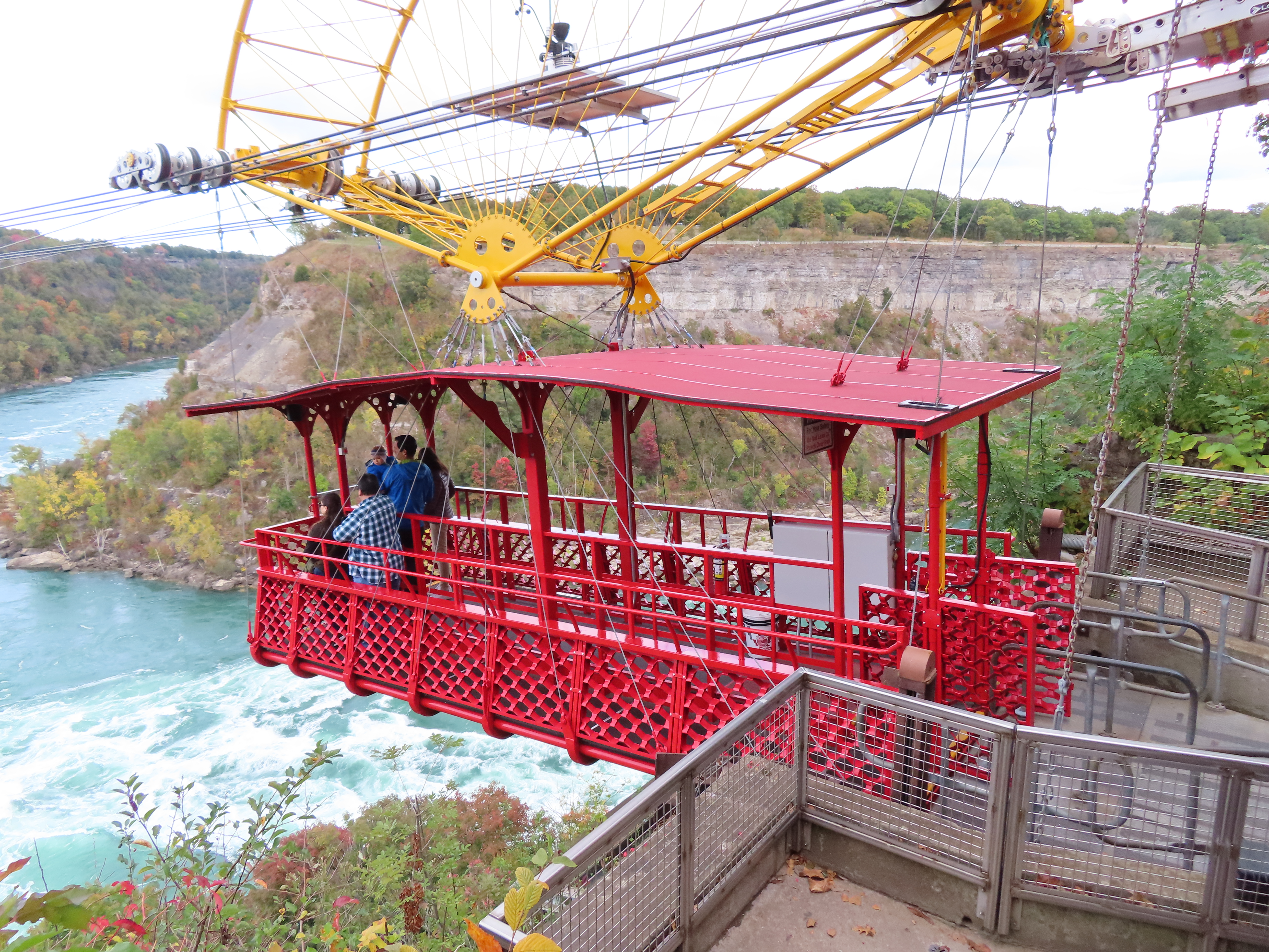 This tram opened in 1916 and carries 35 riders across a whirlpool of the Niagara River.