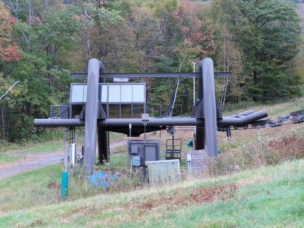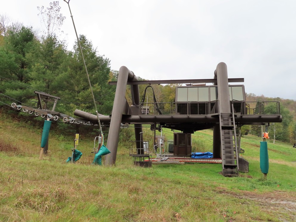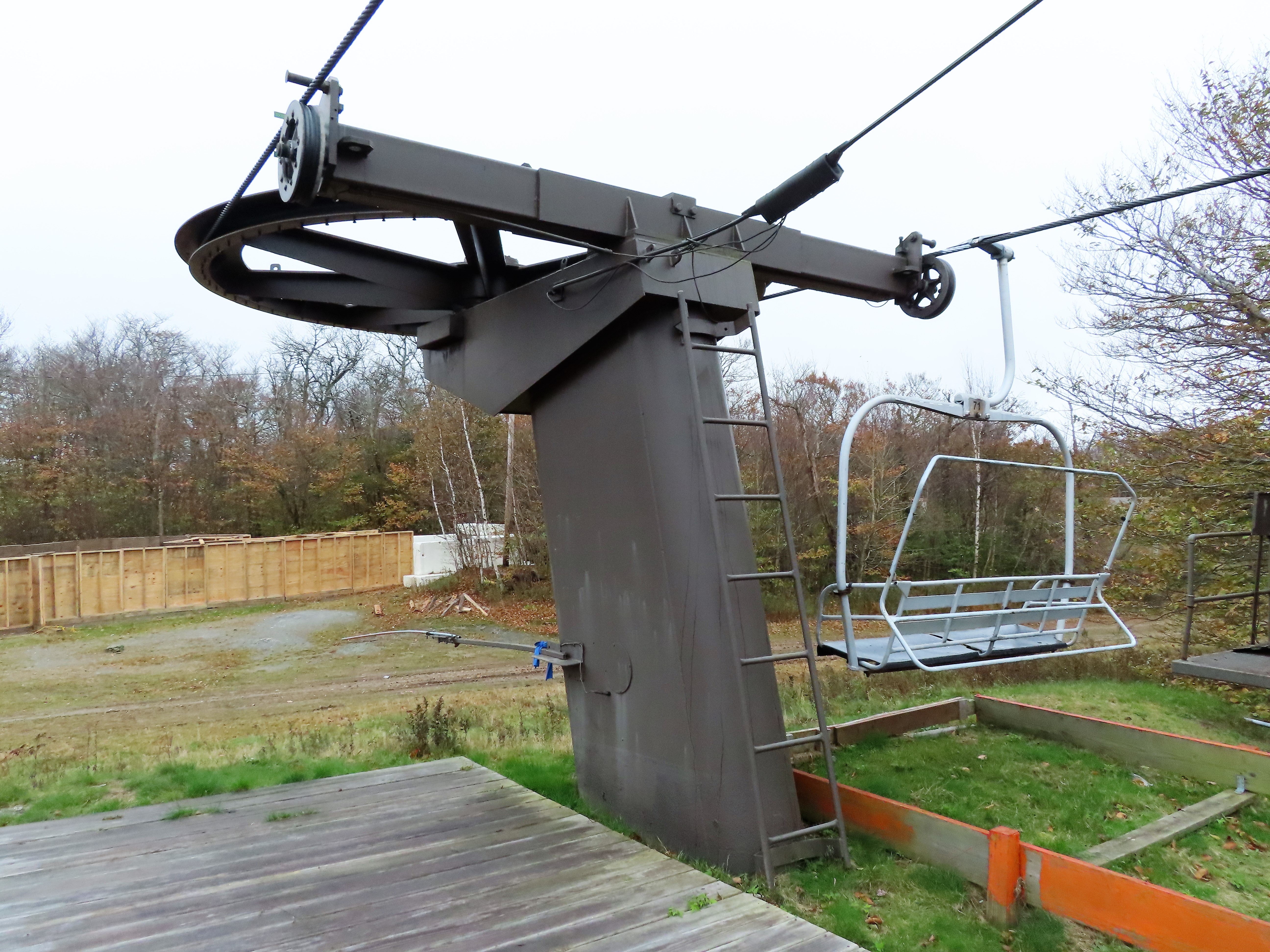 This lift came from Crotched. It was the original Summit Quad, built in 1987. When the mountain closed in 1992, it was sold to Jiminy Peak and installed as this lift. It was intended to provide better access to expert terrain and a shorter ride compared to the Exhibition double chair. Since the Berkshire Express was built, it has only been used during peak times and when the Berkshire Express is on hold for maintenance or weather.