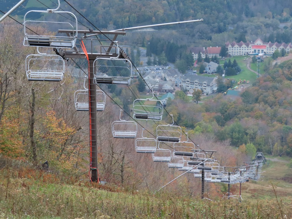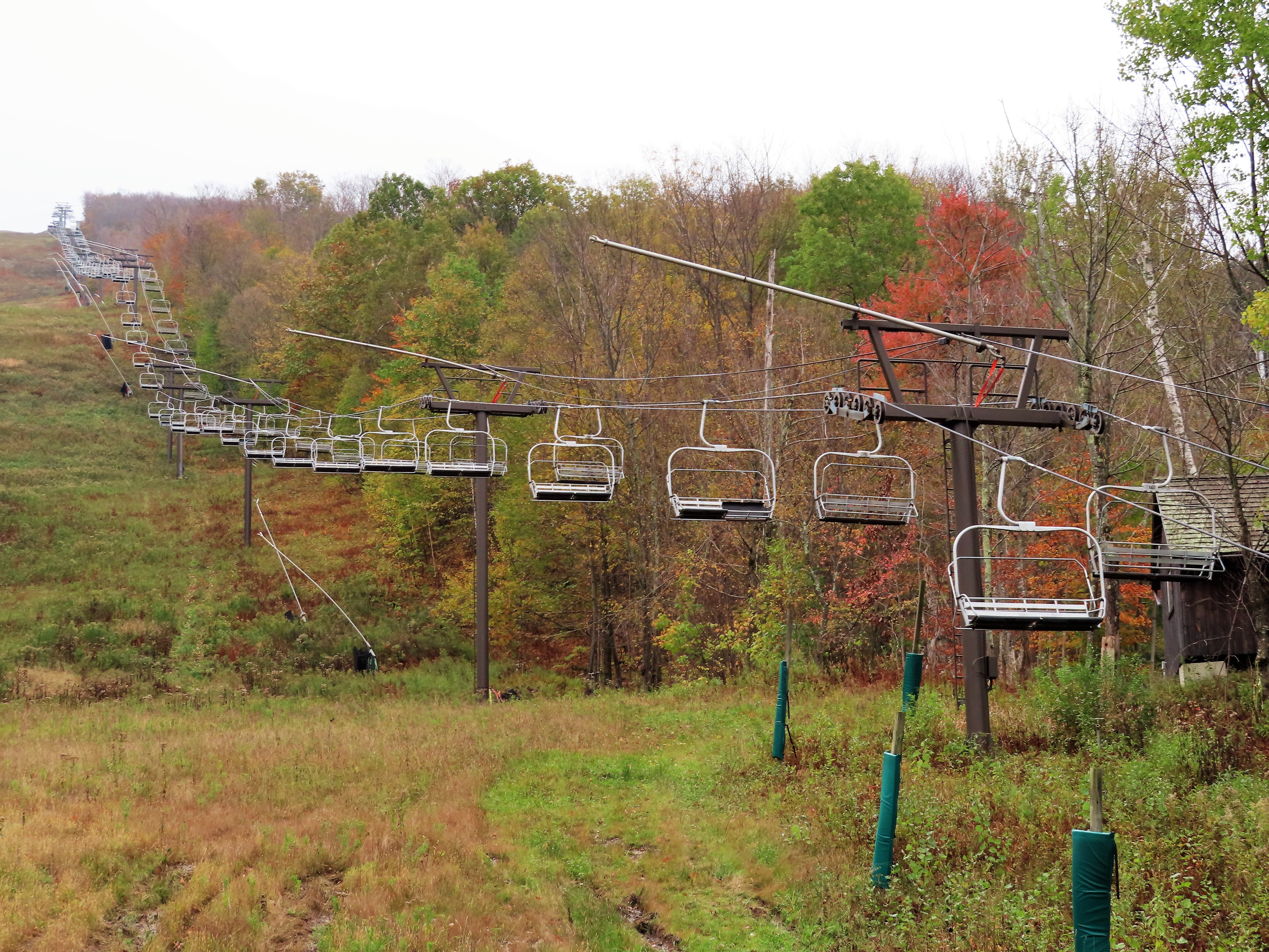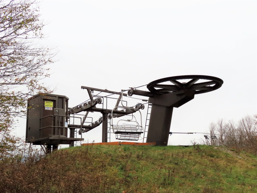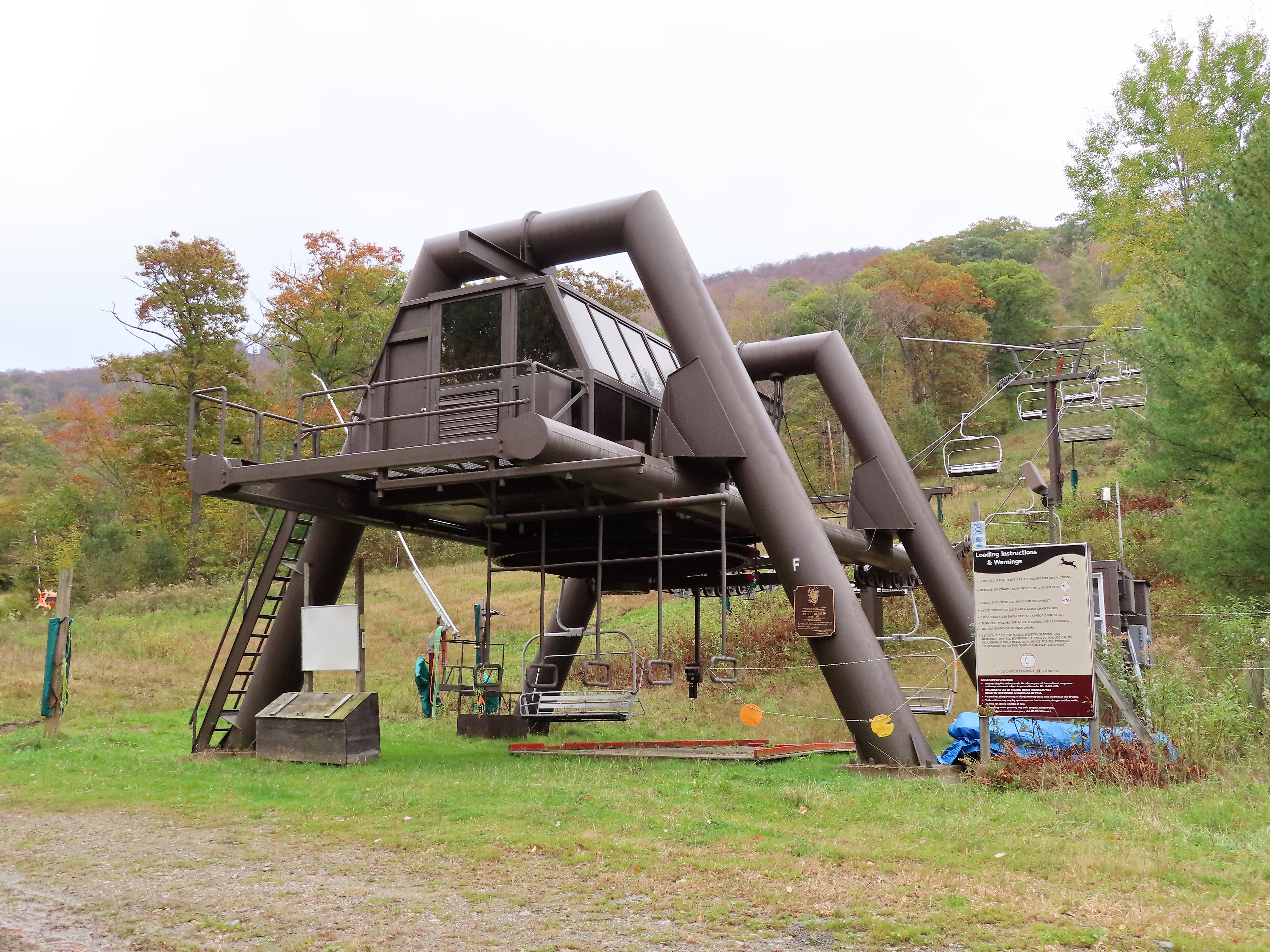 This lift came from Crotched. It was the original Summit Quad, built in 1987. When the mountain closed in 1992, it was sold to Jiminy Peak and installed as this lift. It was intended to provide better access to expert terrain and a shorter ride compared to the Exhibition double chair. Since the Berkshire Express was built, it has only been used during peak times and when the Berkshire Express is on hold for maintenance or weather.