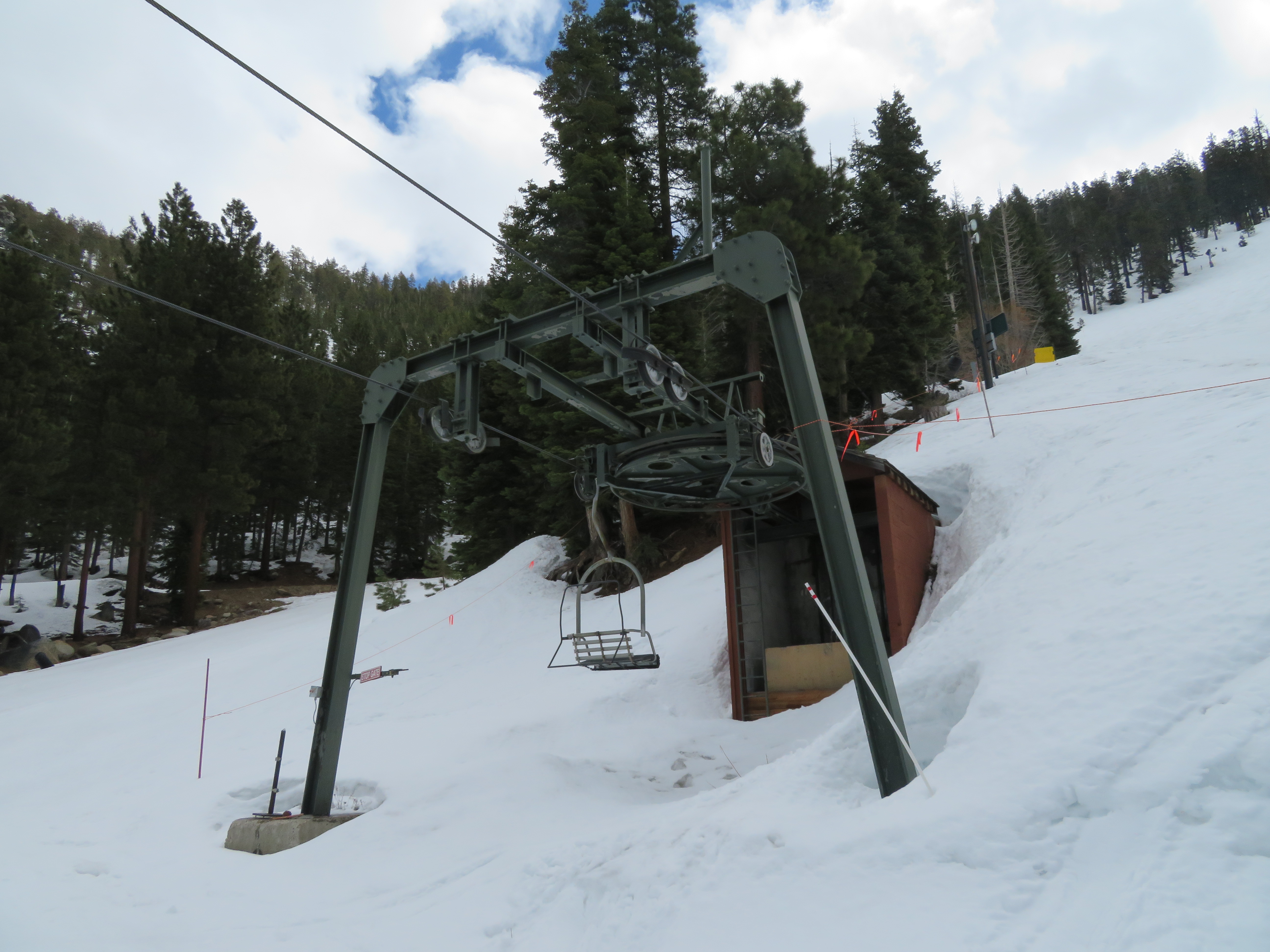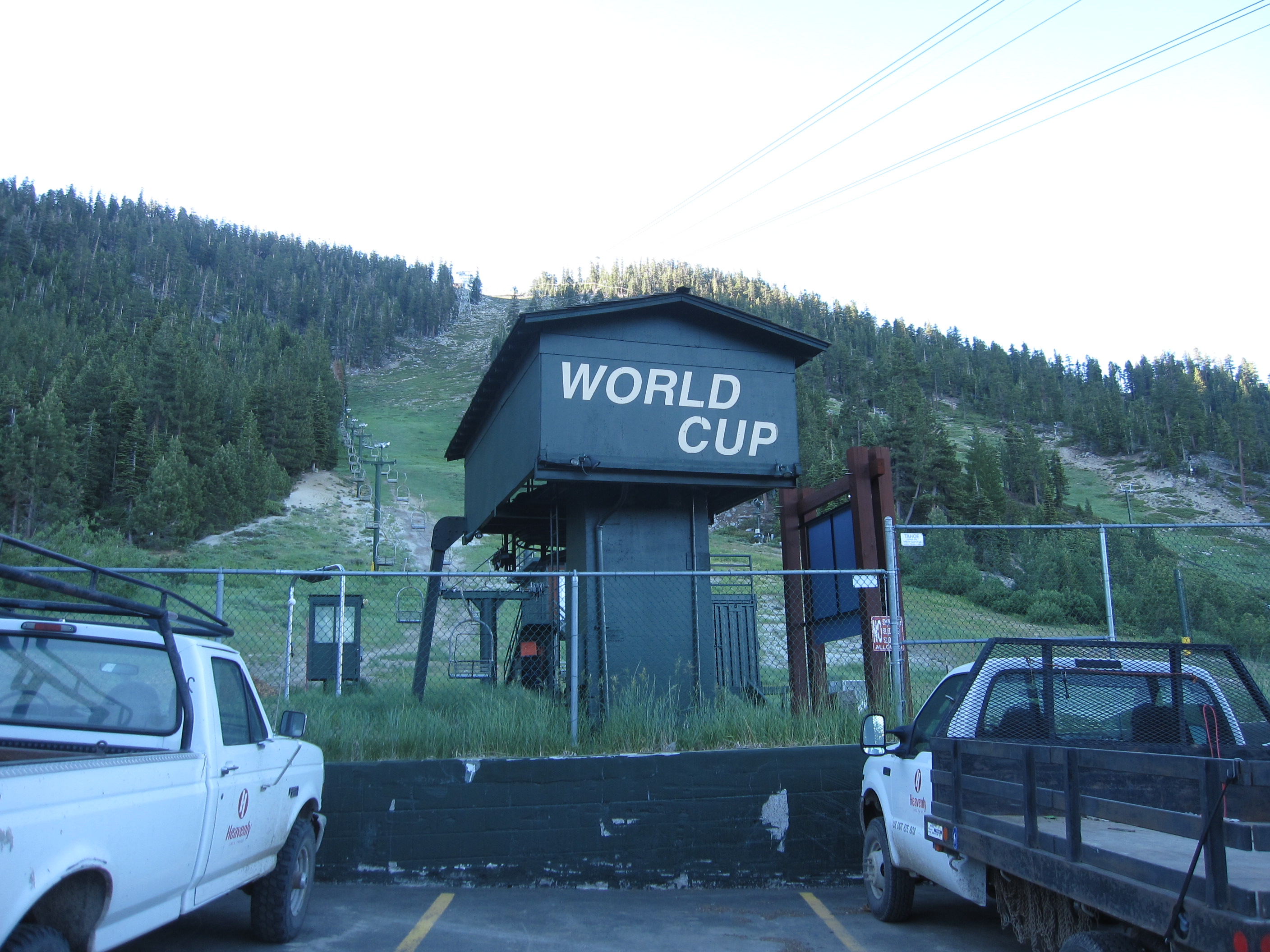 Lift line on the California side of Heavenly.SLI bottom drive terminal with Yan operator shack.View up the line.Another view up the line.Lift overview from above.SLI tension unit.Lift line.