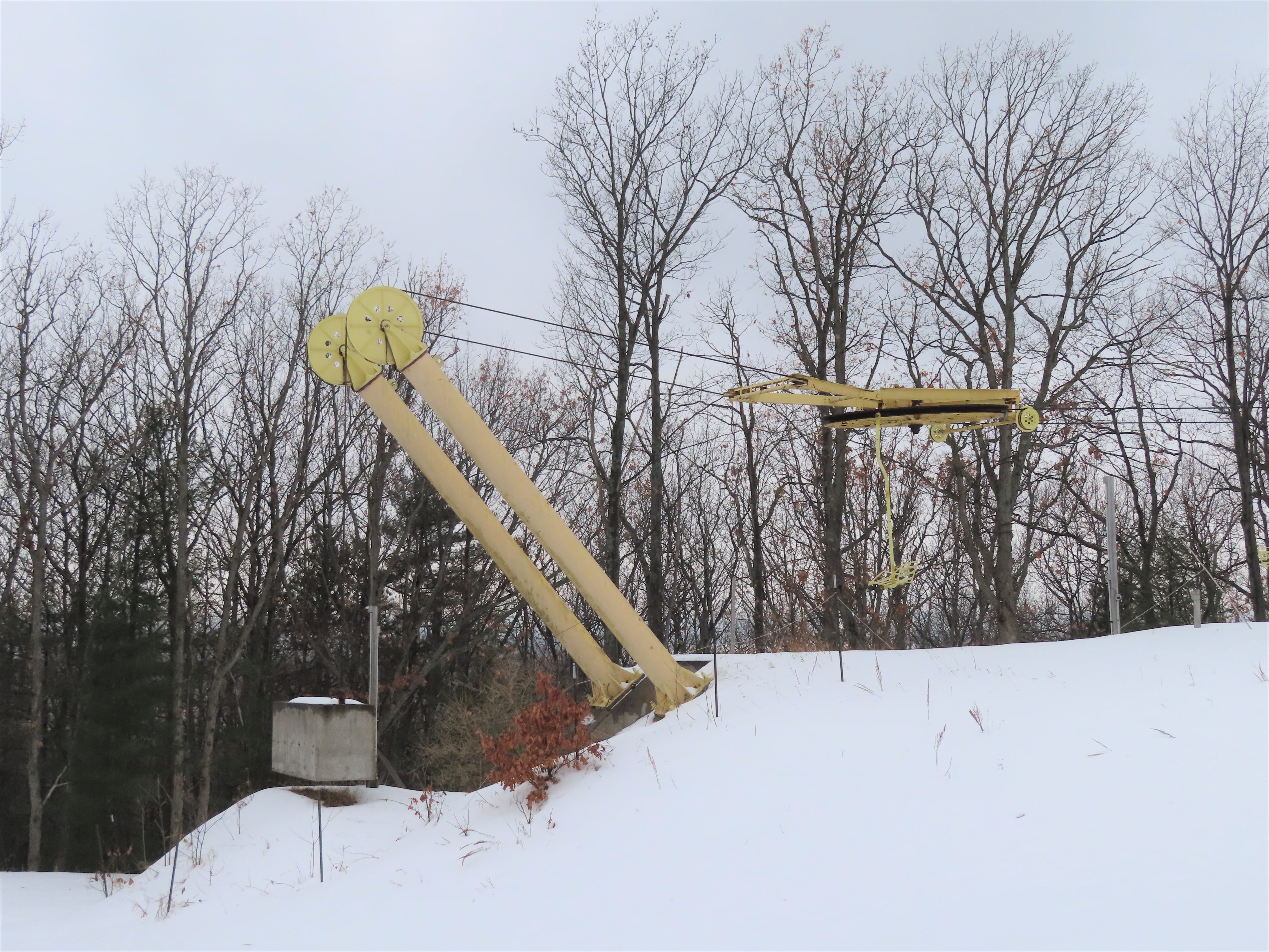 This lift was installed at Mount Holiday in 1990 based on its MI license number. That would make sense, since the new Yellow (Riblet triple) was installed in 1989 at Nubs Nob.